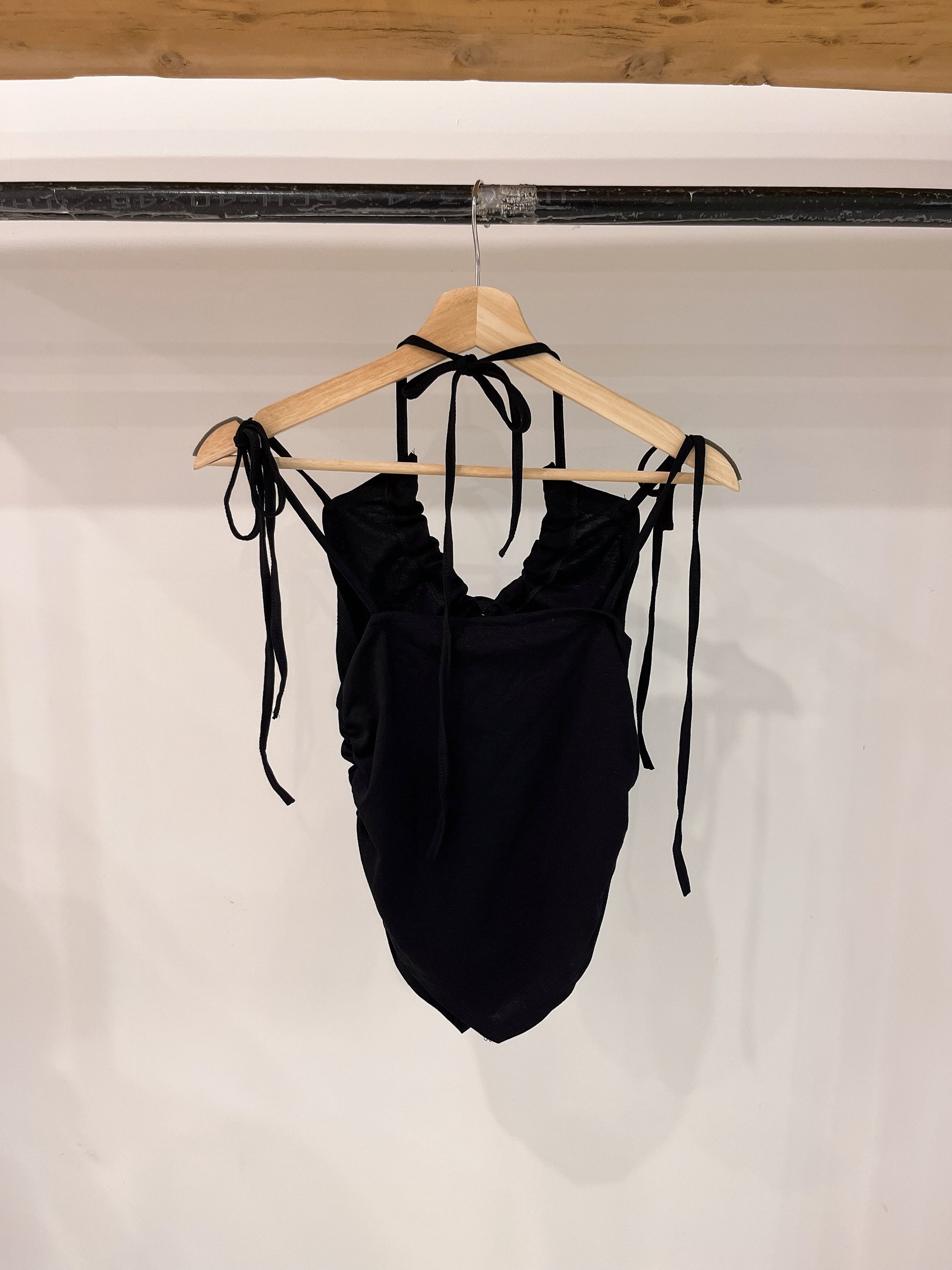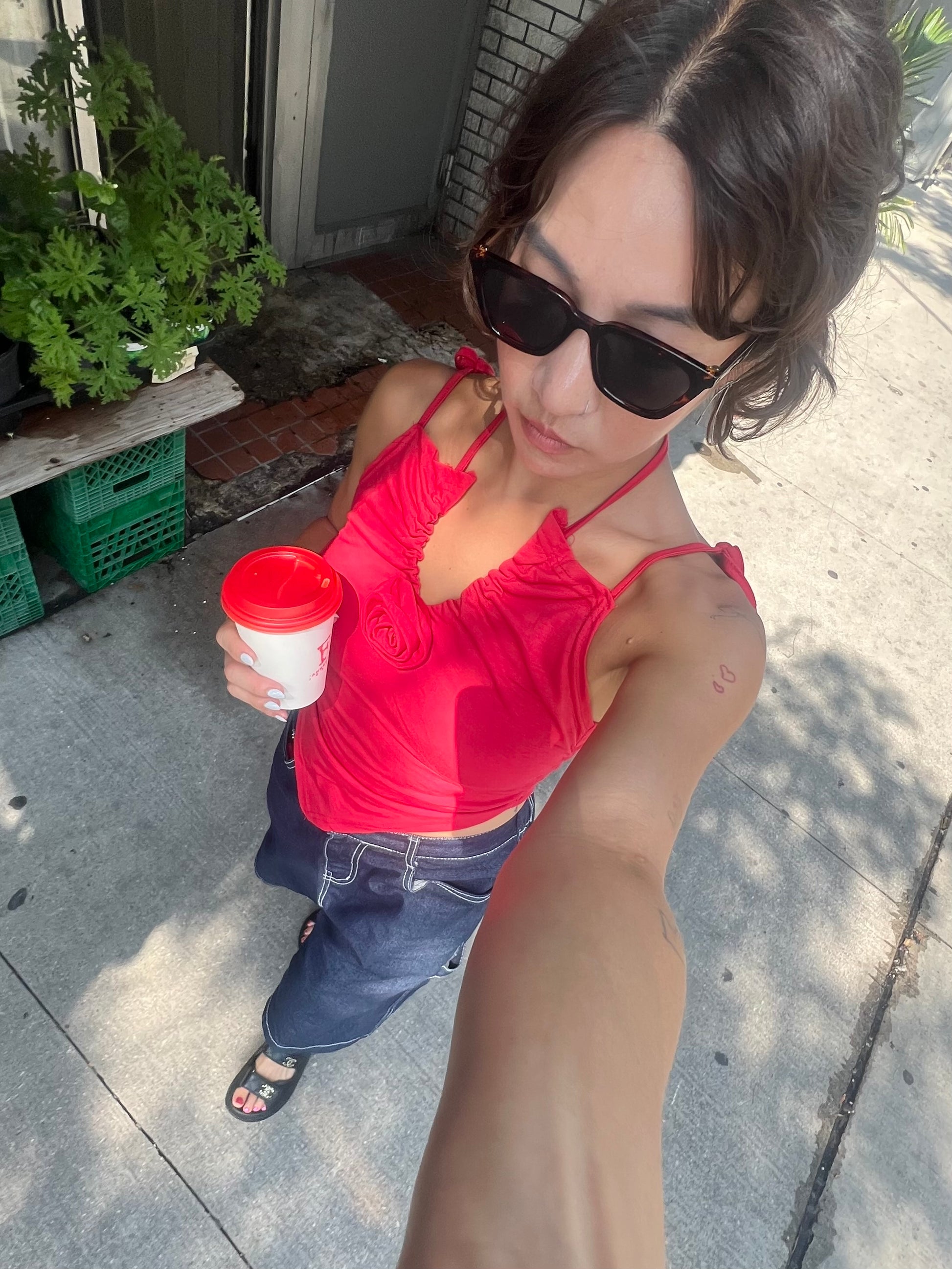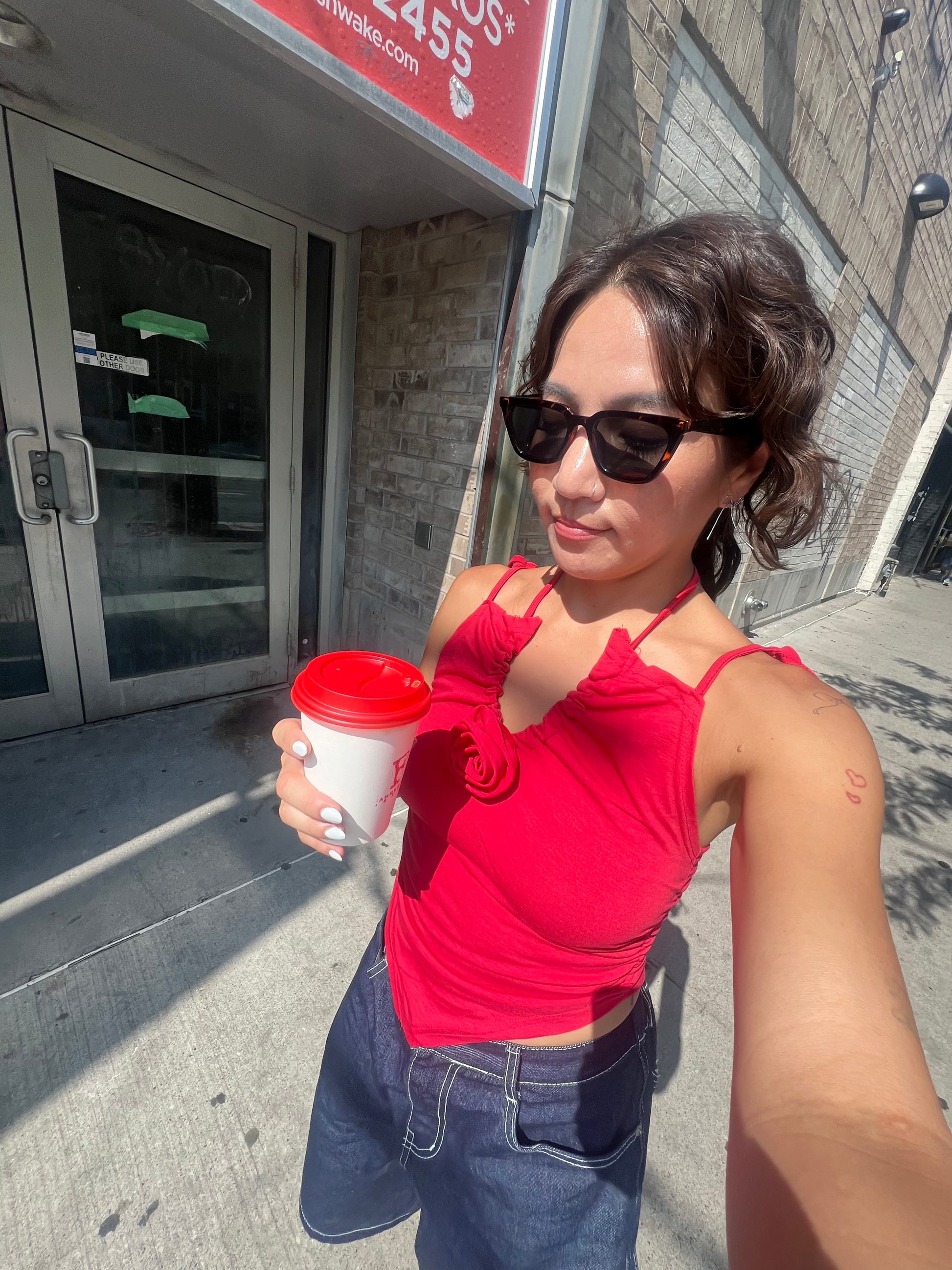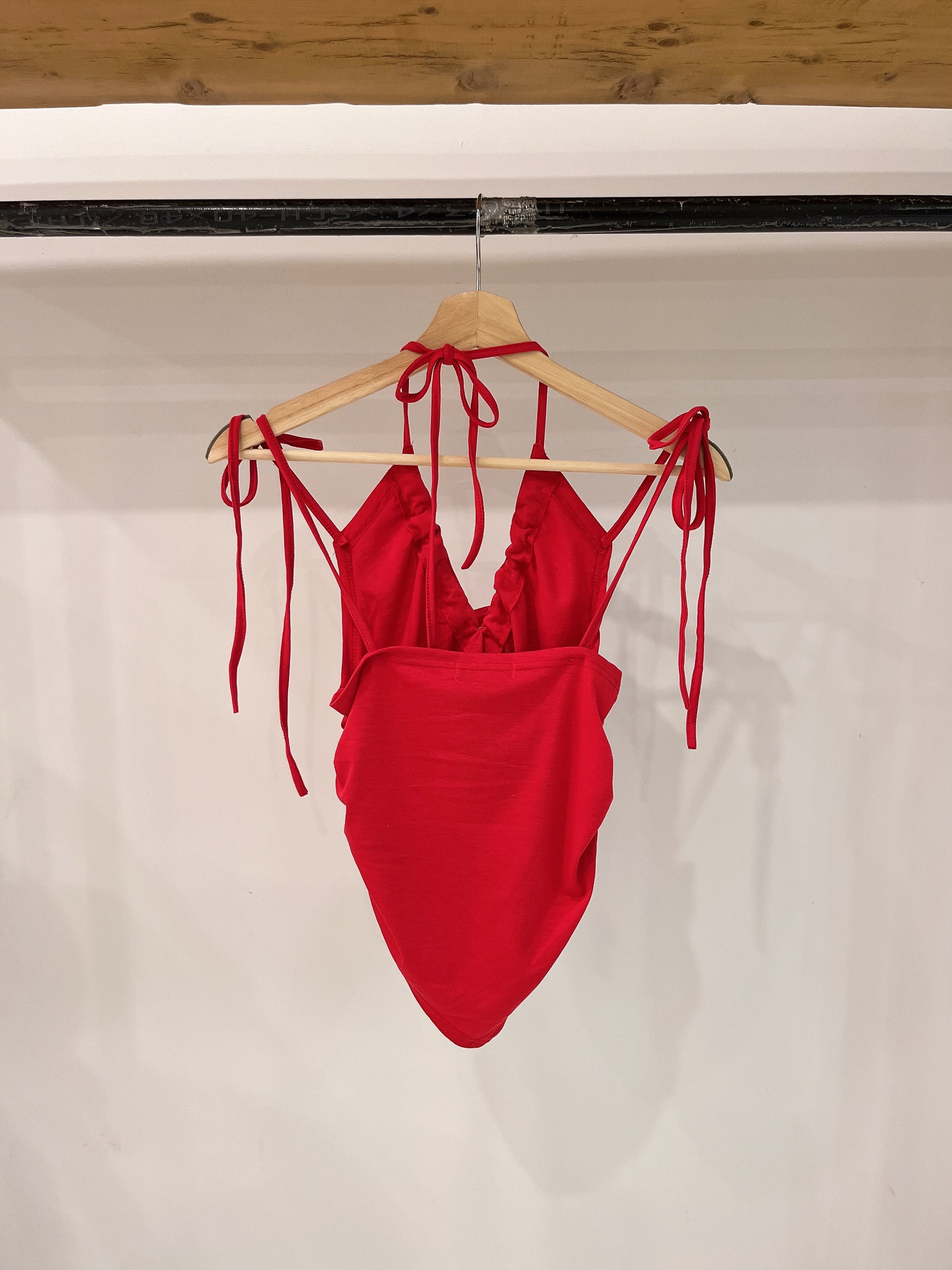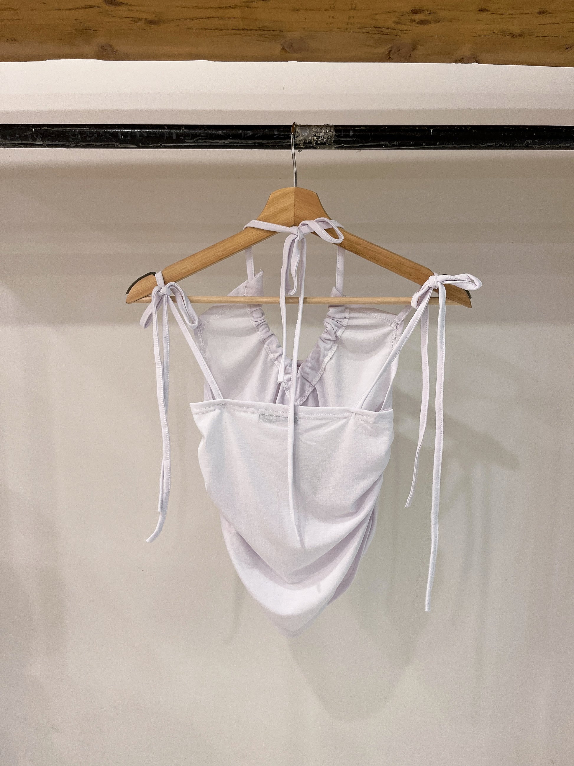 Quirky and super fun, our gorgeous "BEVEL" top features a pointy handkerchief hem, ruched sides for a fitted look, double tie up strings and a dainty detachable 3D rose pin! This stylish number is now available in Red, Black and White!