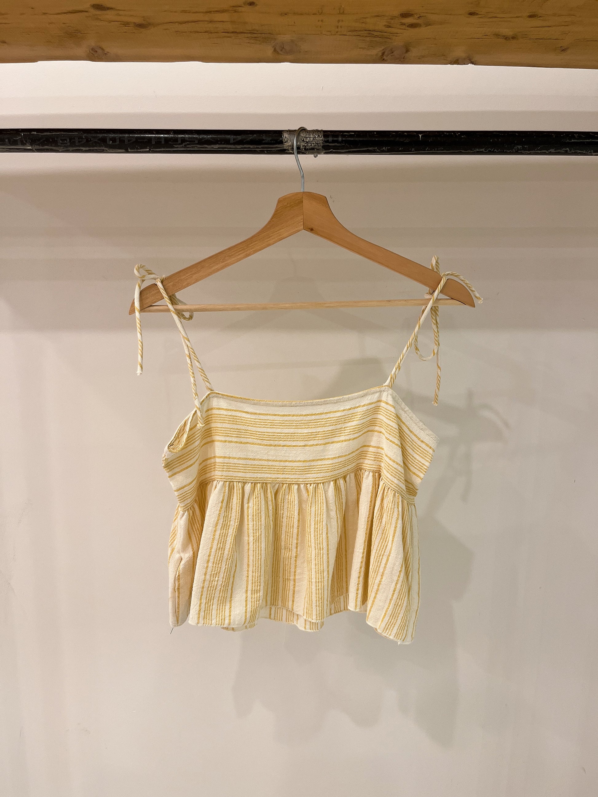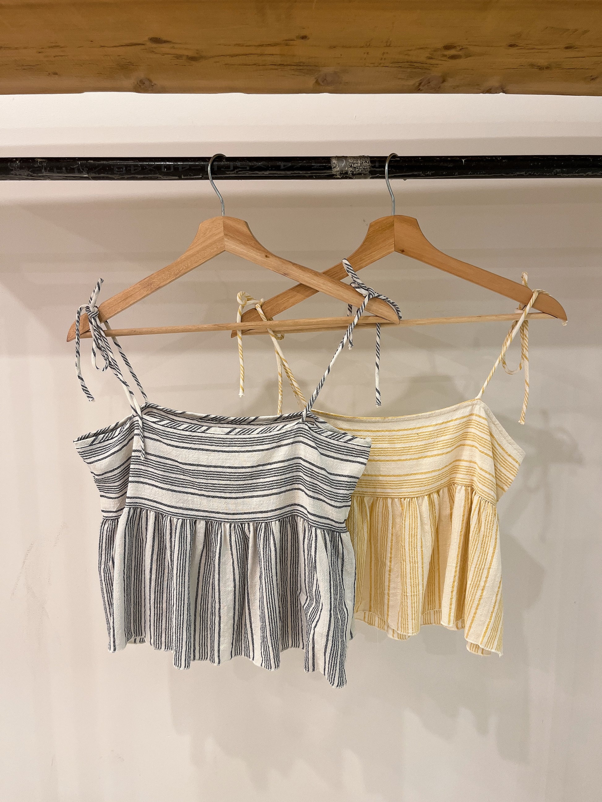 The perfect breezy top for your sunny day adventures, our striped babydoll top features tie-up noodle straps, vertical striped pattern and a regular fit. Now available in blue and yellow!