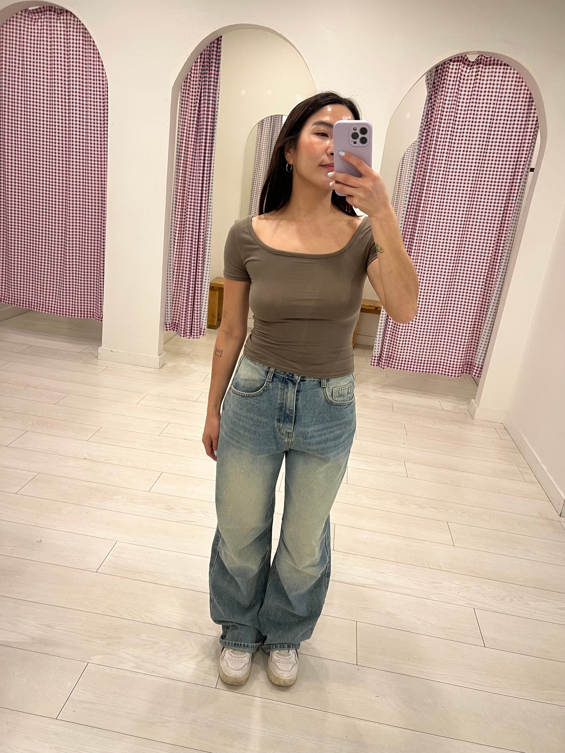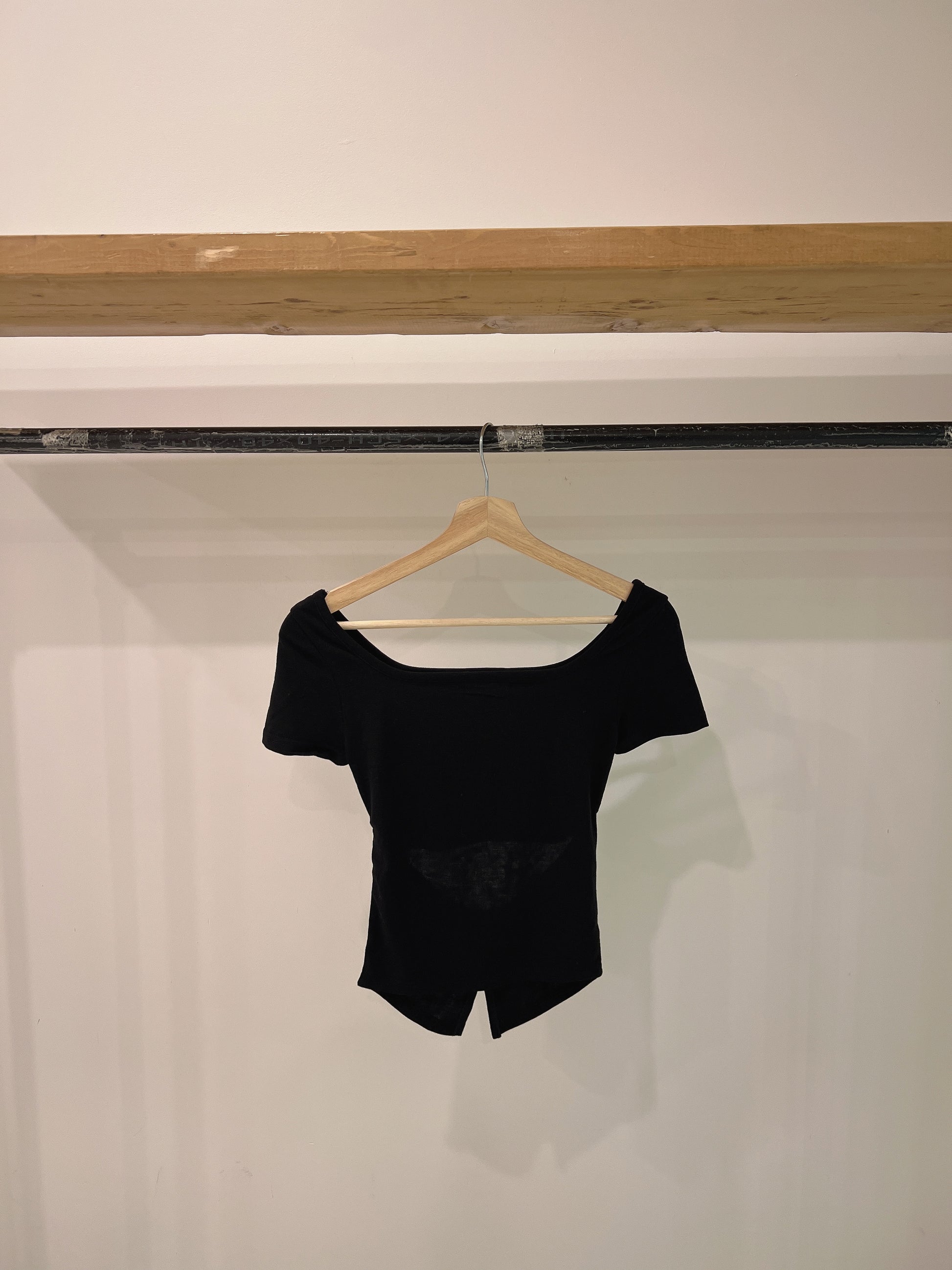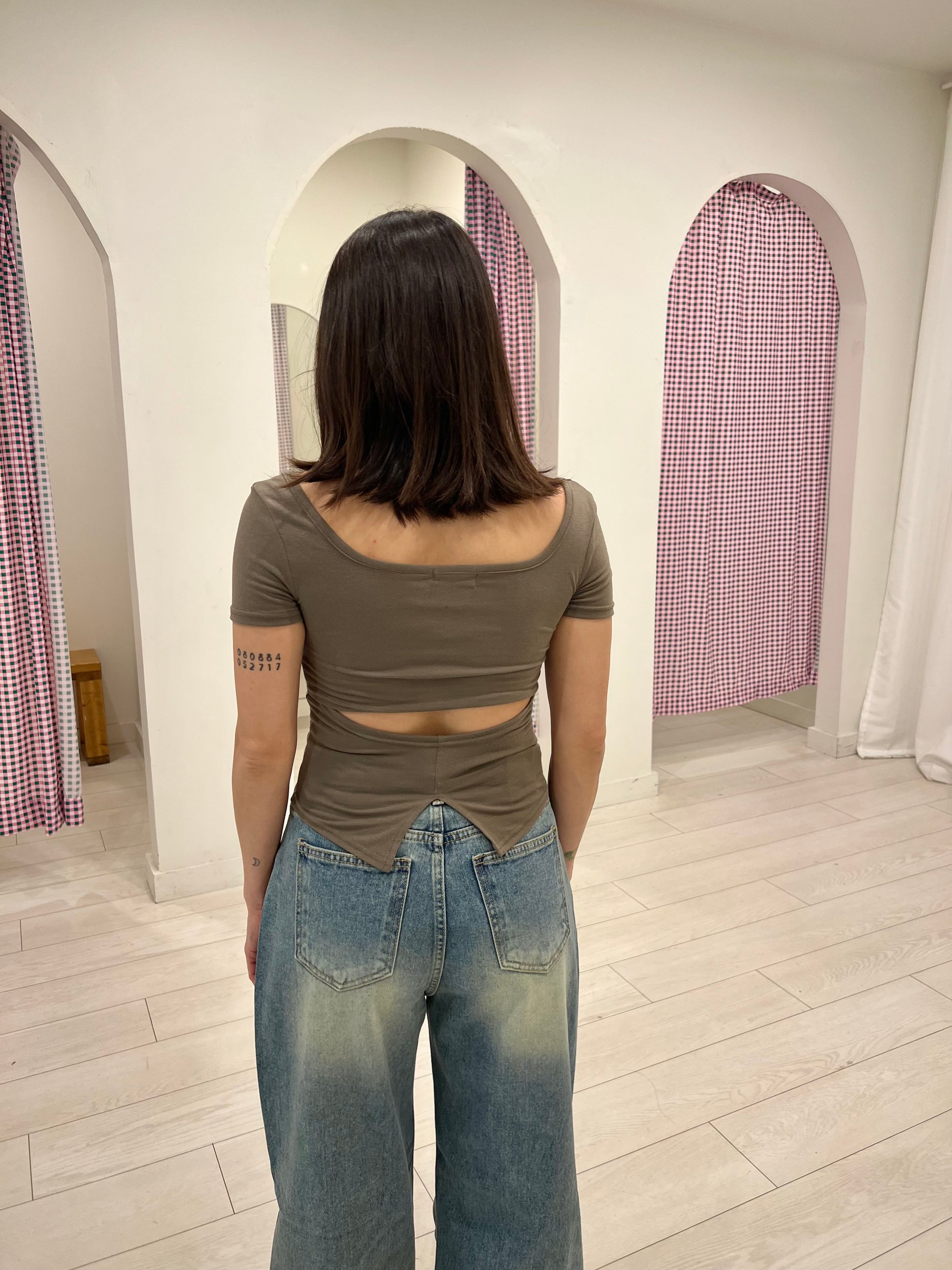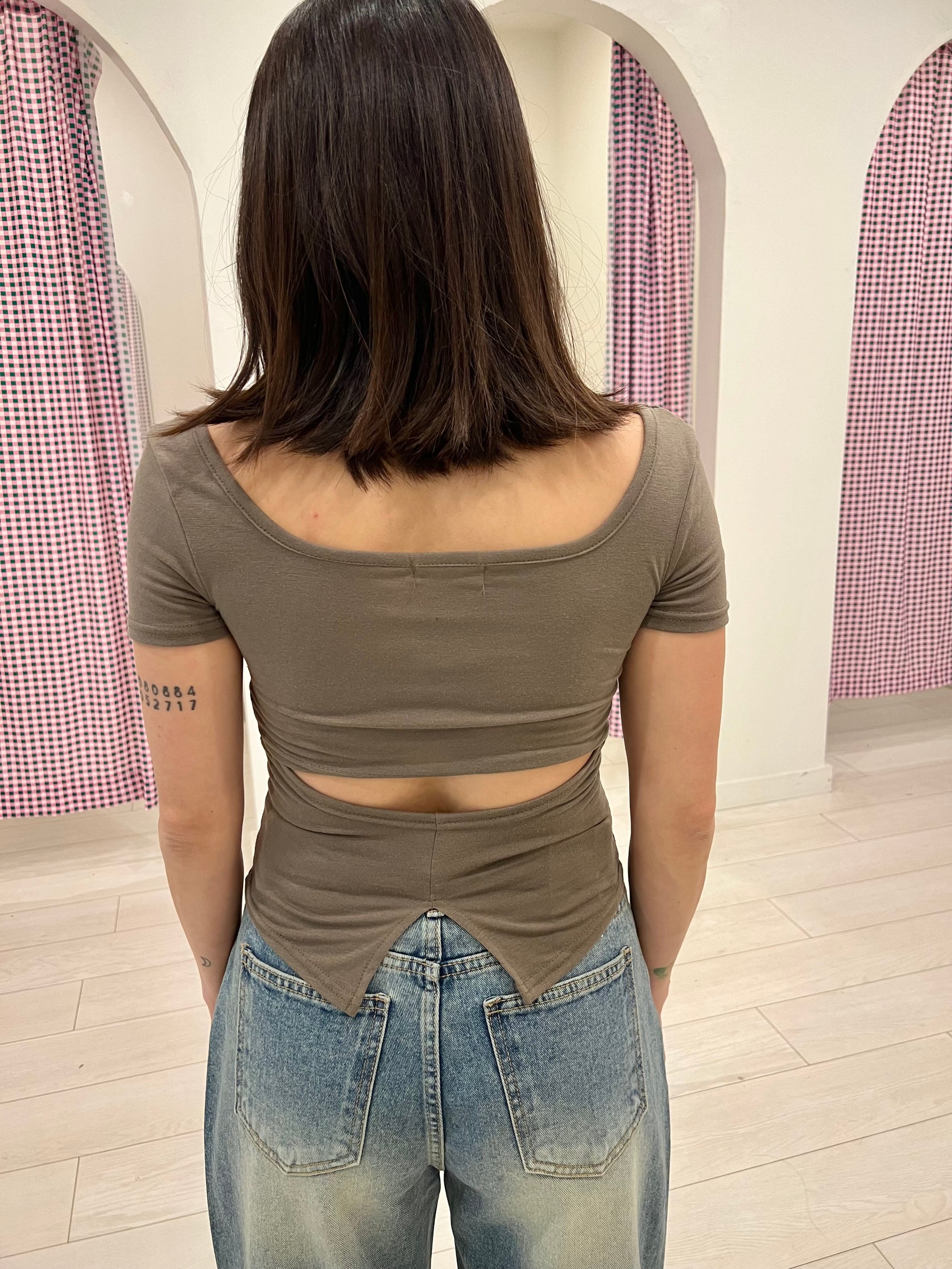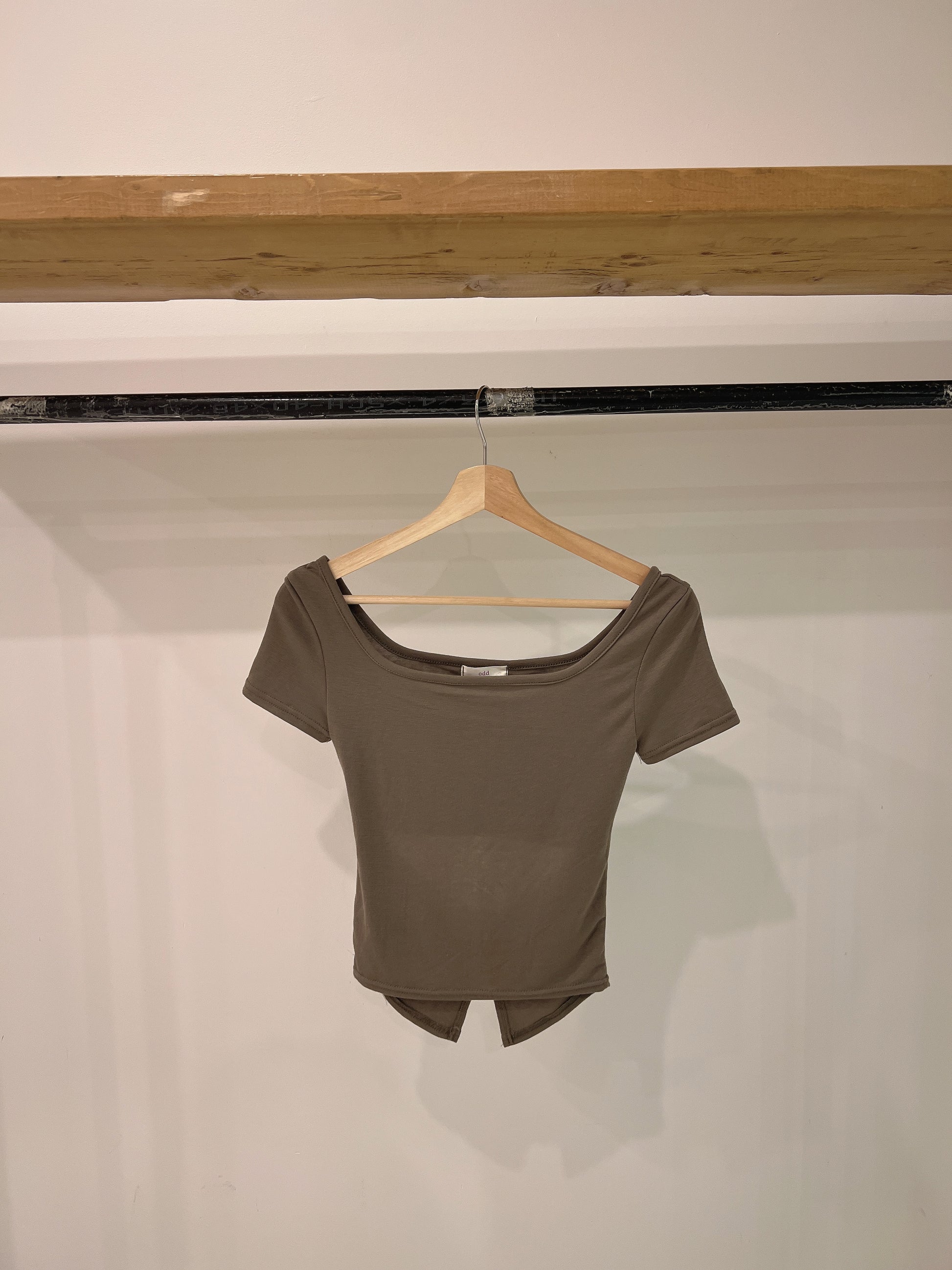 Our super soft scoop neck short sleeve tee with split back and back cut out detail comes in black, white and green and is an effortlessly stylish pick for a fitted look this summer!