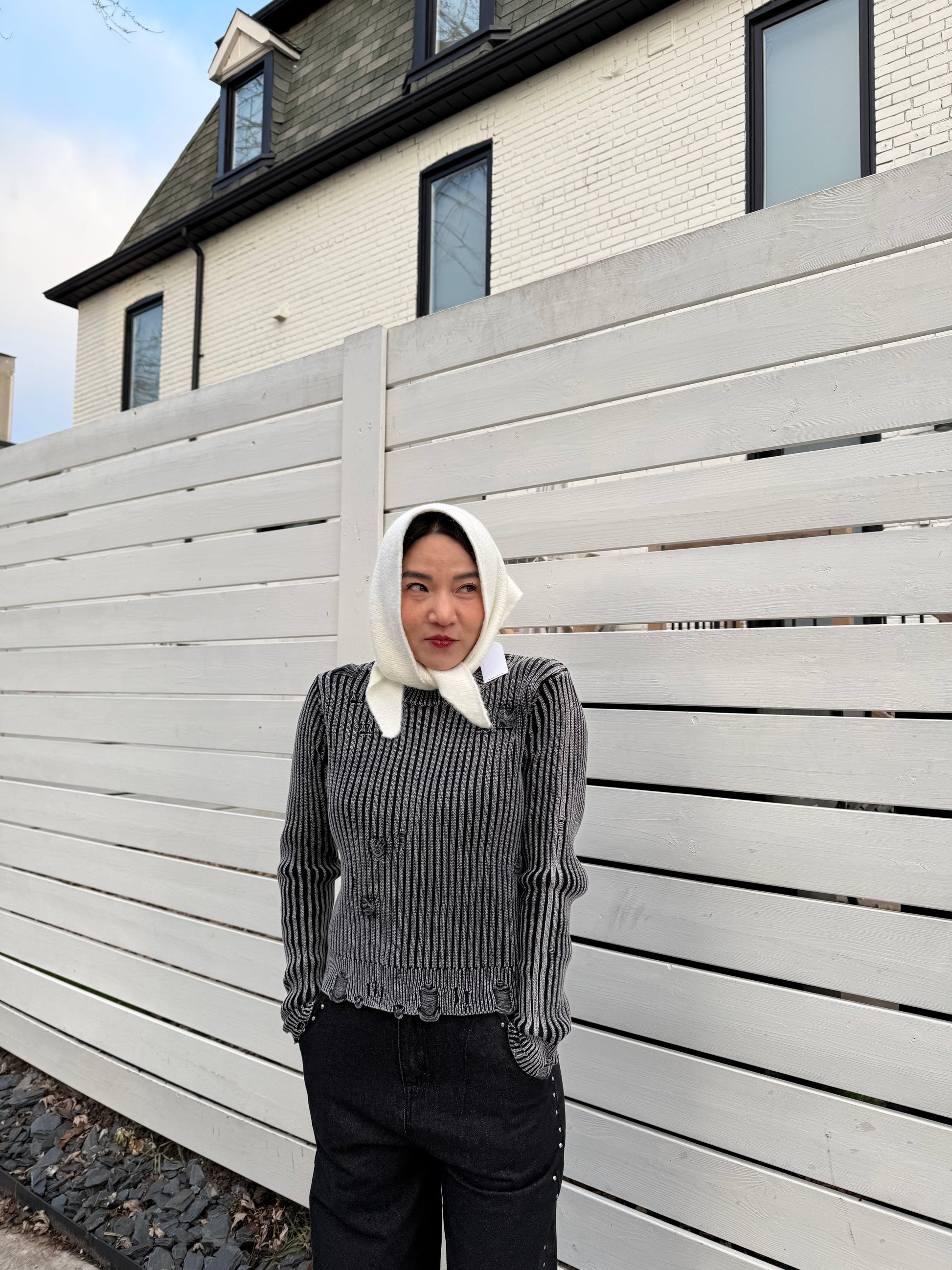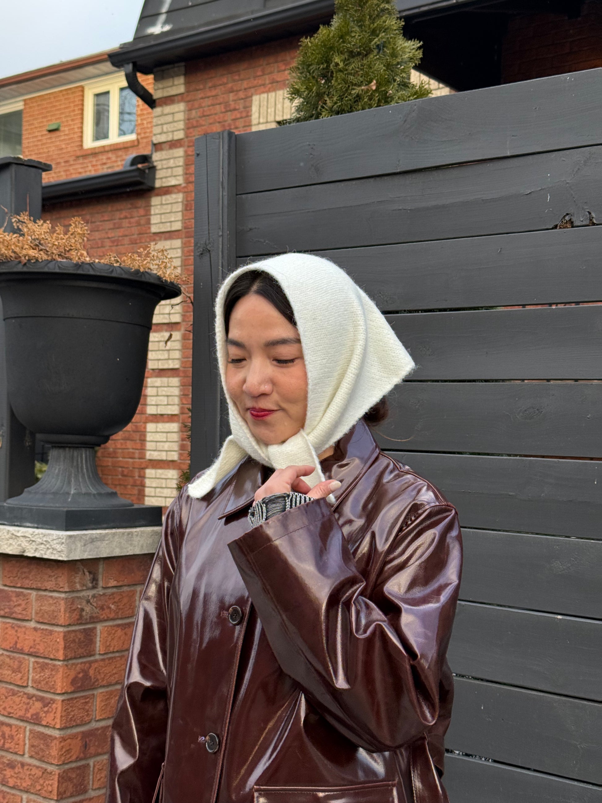 Our Doe Knit Triangle Headscarf is the ultimate accessory for adding a dainty, romantic layer to any look. Crafted from a whisper-light, brushed knit yarn, it offers a tactile softness that feels like a warm embrace.