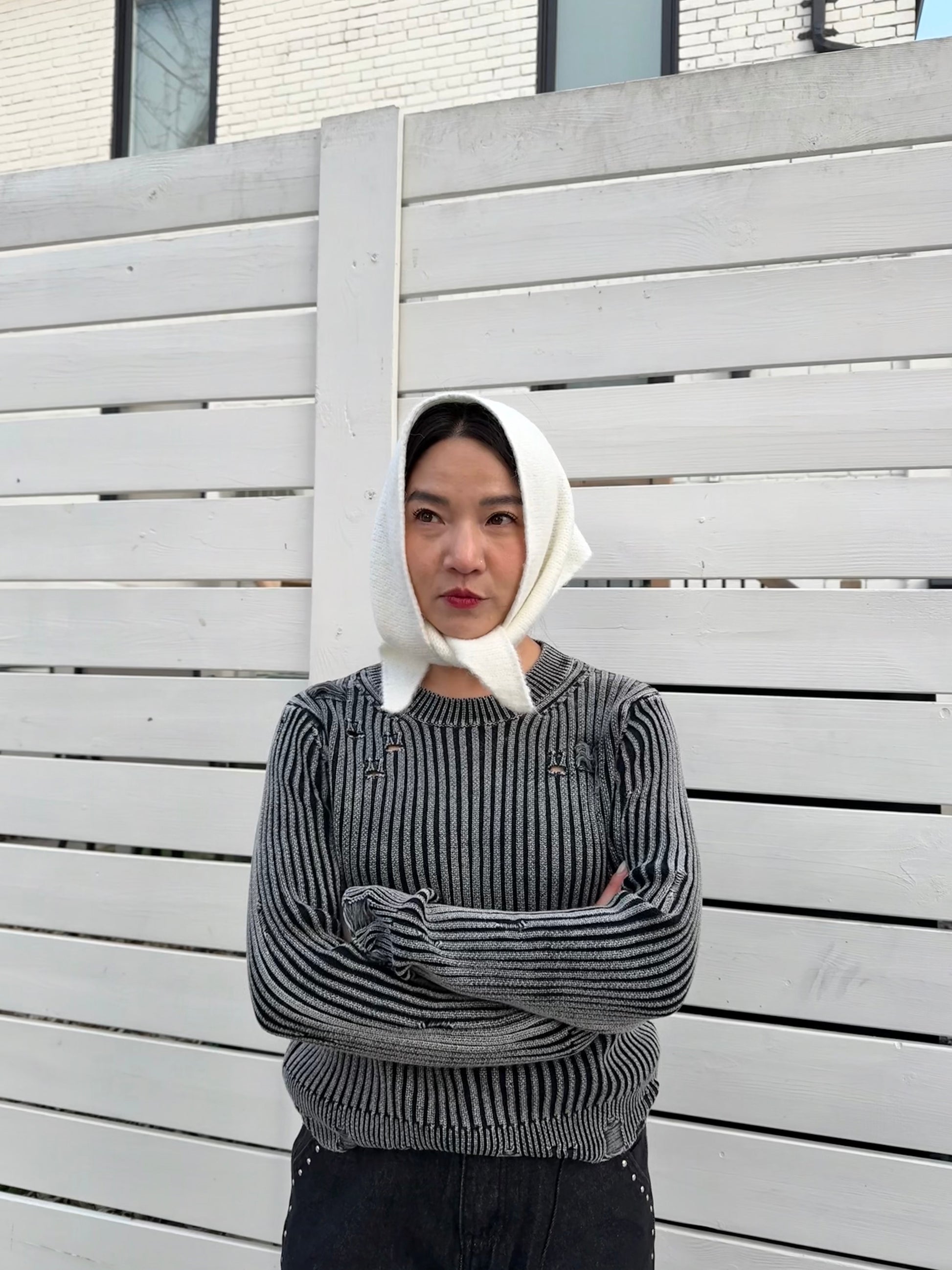 The classic triangular silhouette provides effortless versatility—tie it under the chin for a coquettish, "babushka-chic" vibe, or wrap it loosely as a textural neck tie. Its delicate, open-stitch construction ensures an airy drape that beautifully frames the face without feeling heavy.