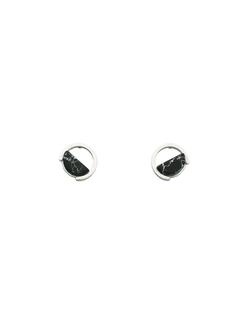 Black marble half-moon earrings in silver