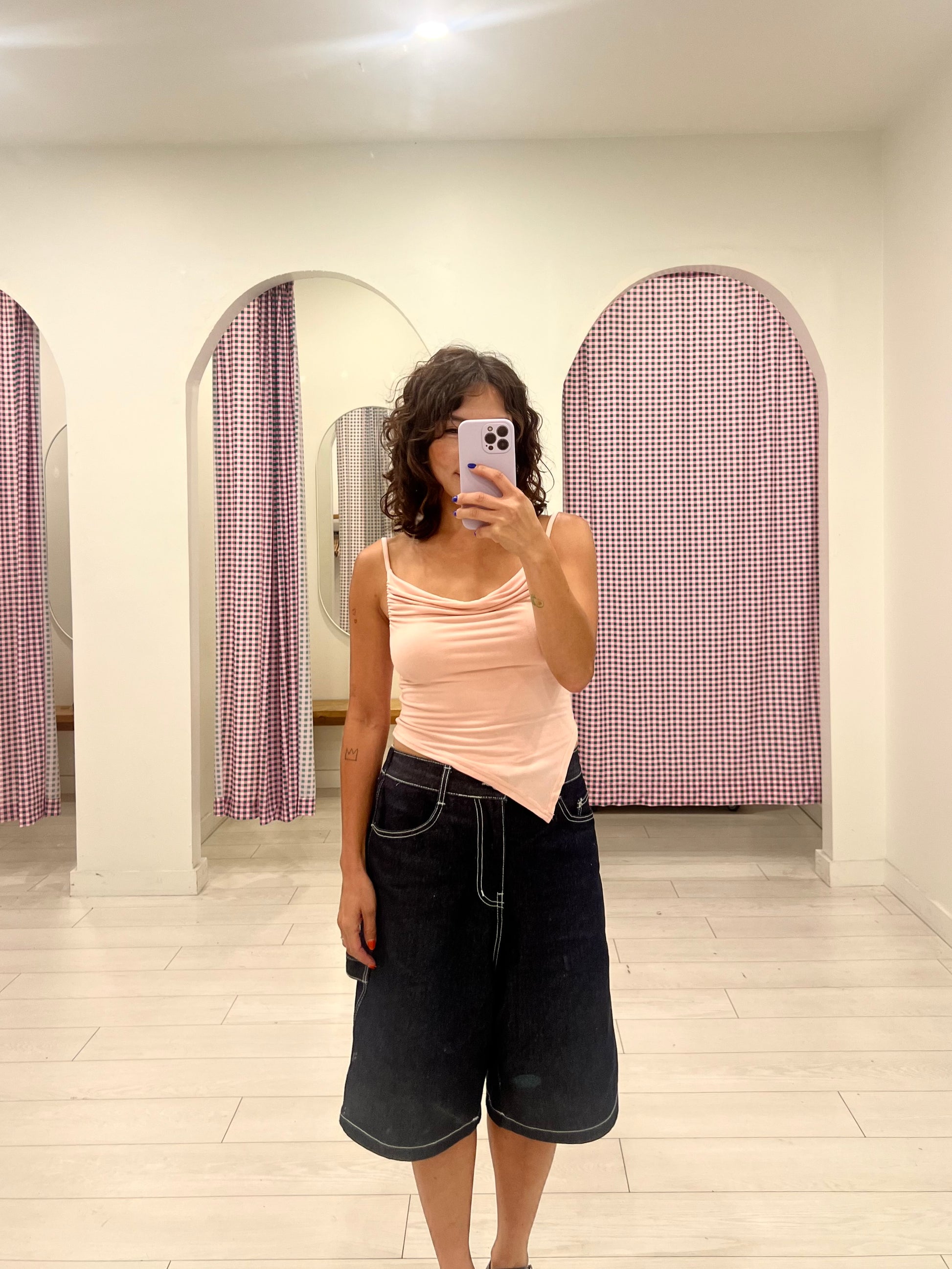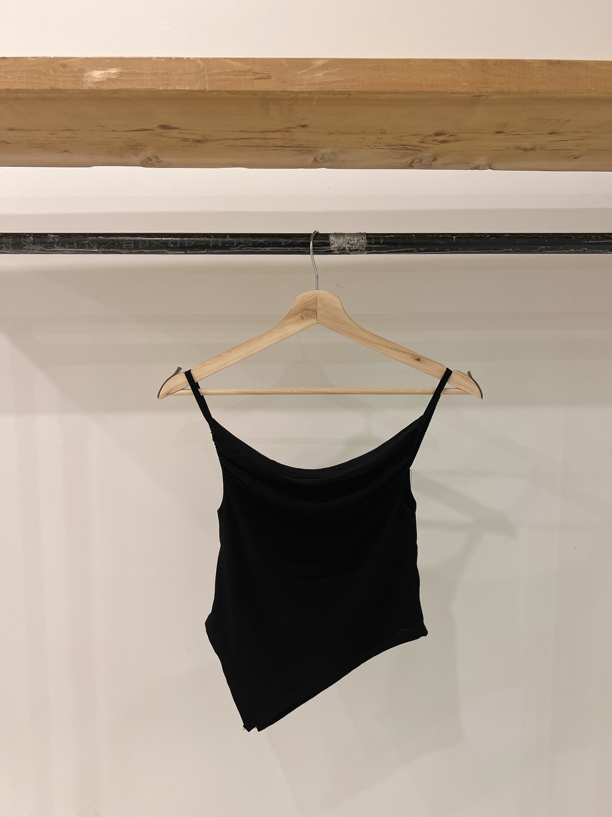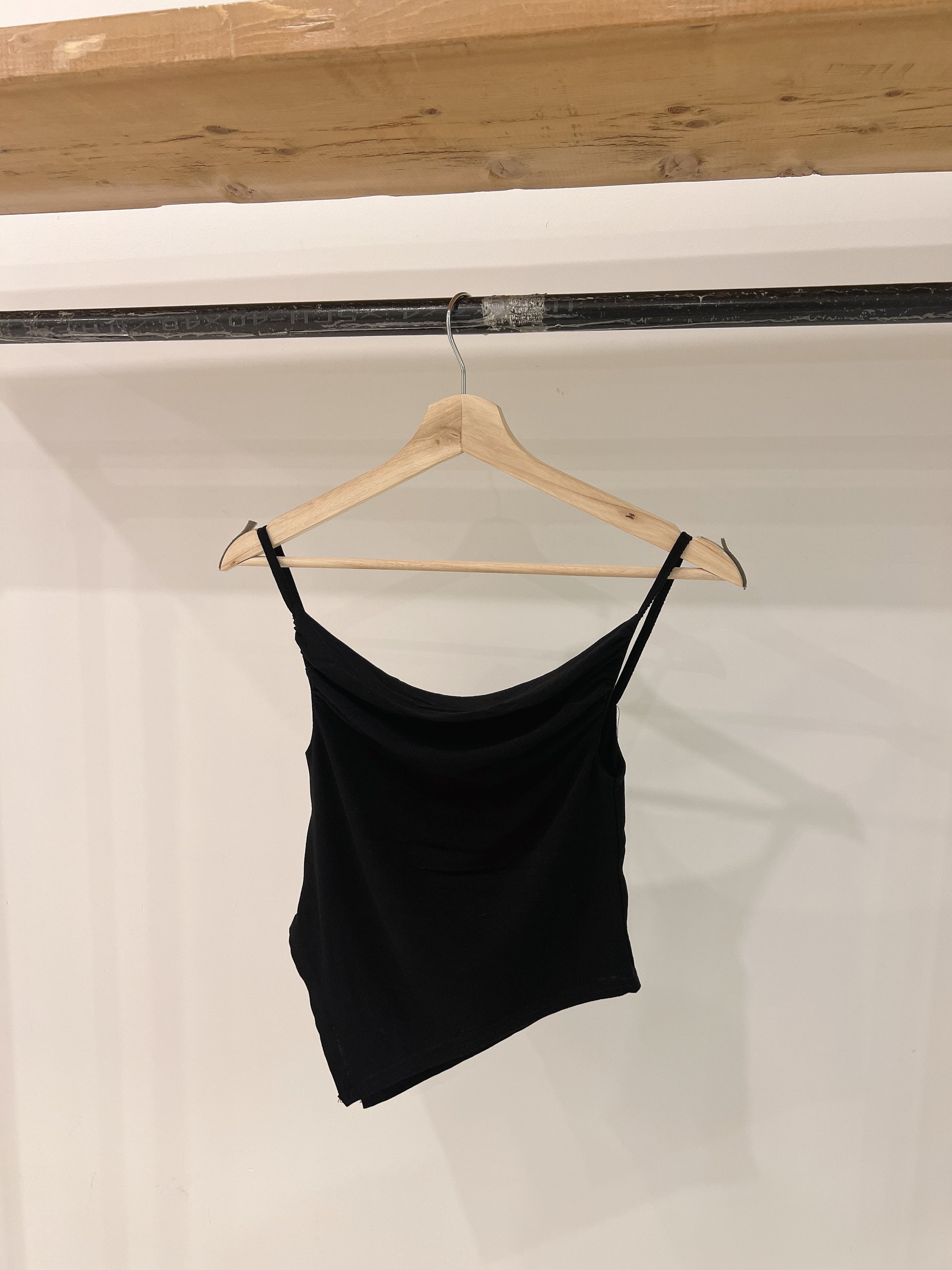 Introducing our ruched tank top with a cowl neckline, asymmetrical hanker-chief hemline and noodle straps, a playful top for your summer fits checks! Now available in Beige and Black.