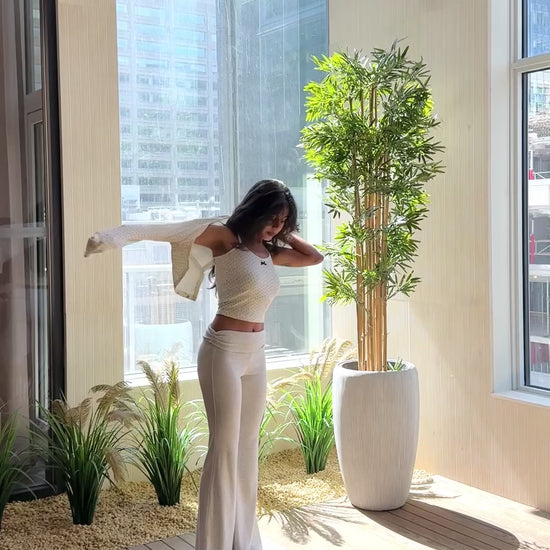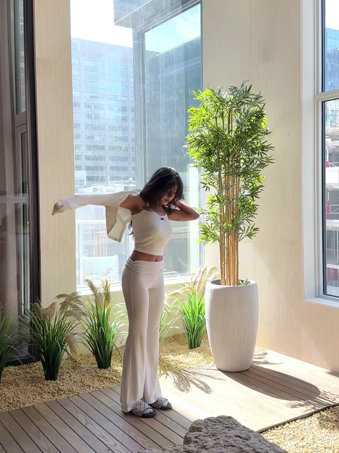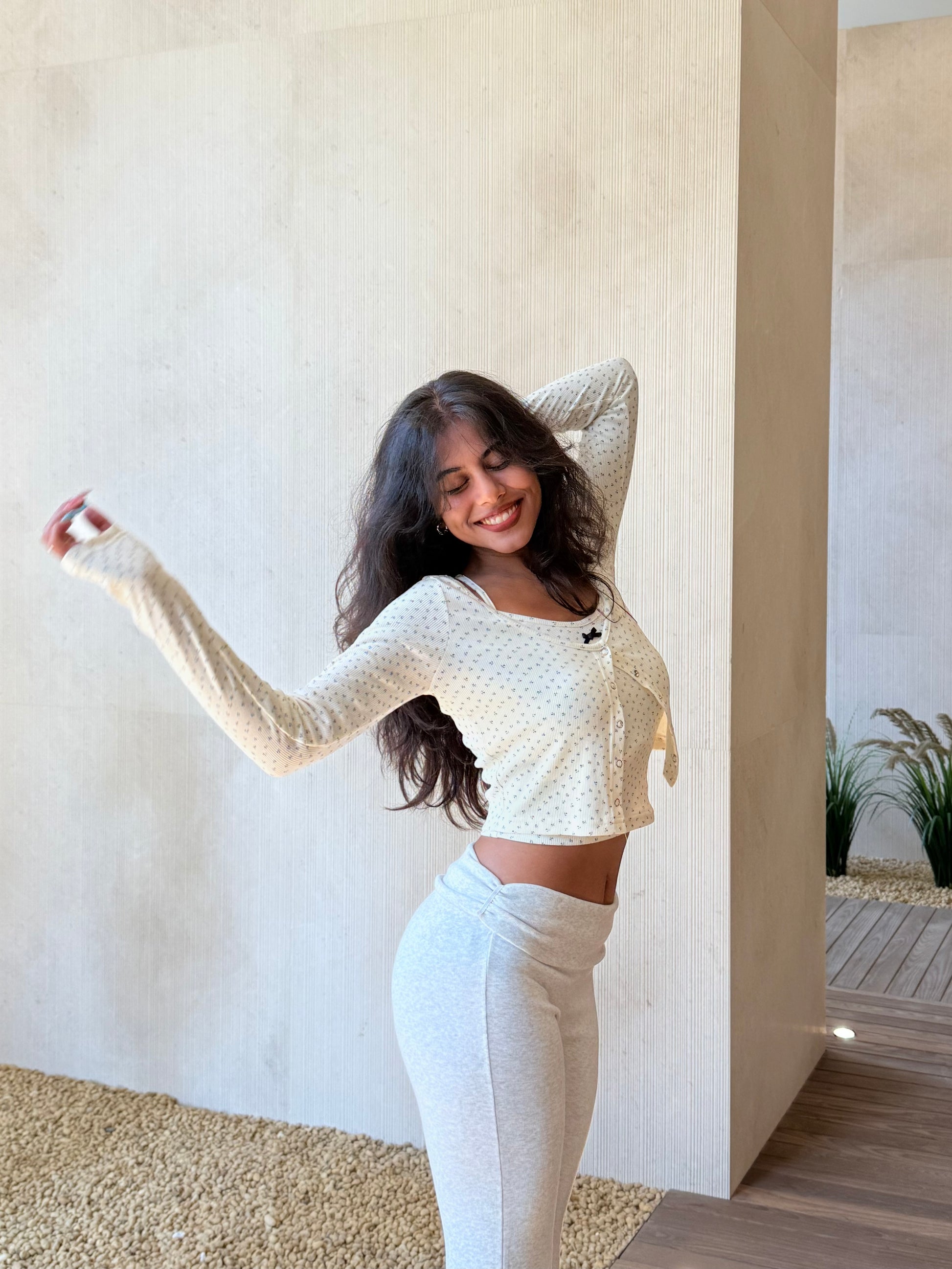 For post-pilates lounging or for the soft girlies who can’t get enough of florals, this set is your new favorite. The racerback tank with noodle straps features a delicate floral print, ribbed texture, and a dainty bow at the neckline.