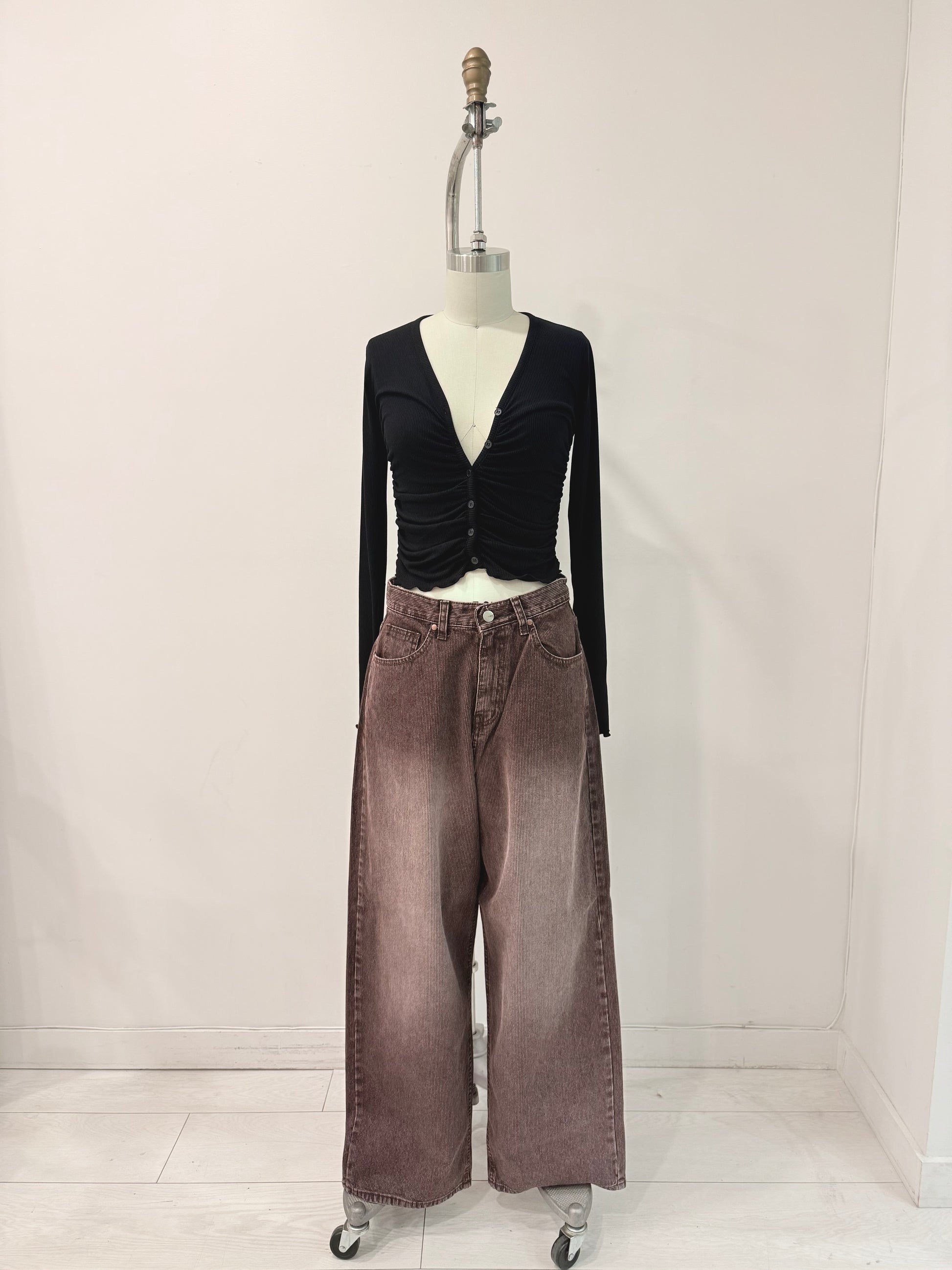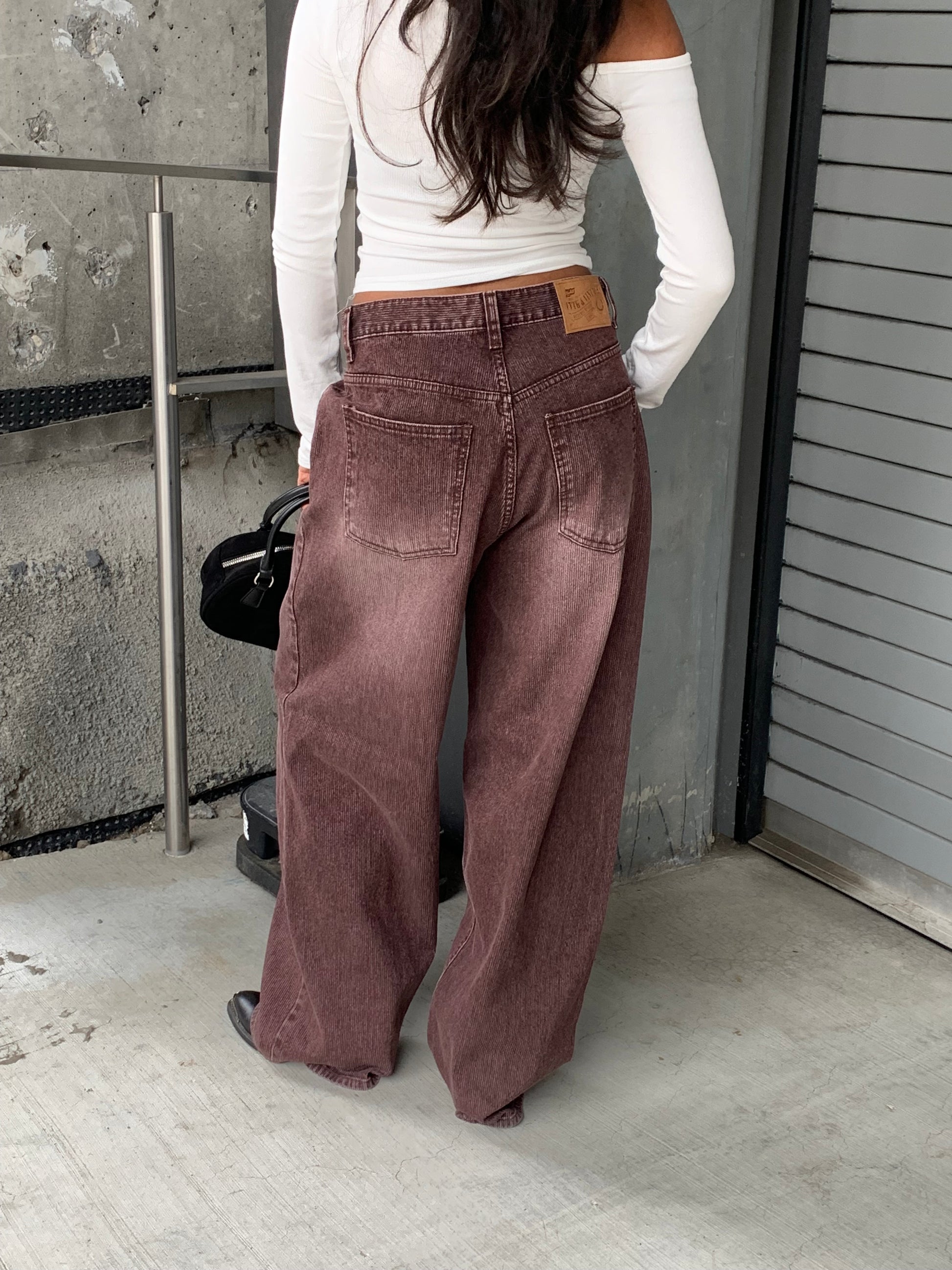 A bold twist on everyday denim — these wide-legged corduroy jeans bring texture and depth to your fall lineup. Crafted in a h a subtle striped texture with a gentle burgundy-toned wash, they balance structure with ease. Designed with belt loops, a front zip-and-button closure, side slash pockets, and back patch pockets for effortless wear. Spacious yet refined : the perfect mix of comfort and clean tailoring.