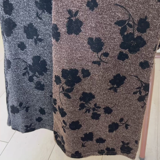 Add some floral fun to your fall fits with these ultra warm, soft-touch bootcut pants featuring a subtle floral print detail. The scrunchy waist provides a flexible fit, while the bootcut silhouette adds a stylish flare. Available in brown and black, these pants combine comfort with a touch of elegance, perfect for casual or relaxed occasions.