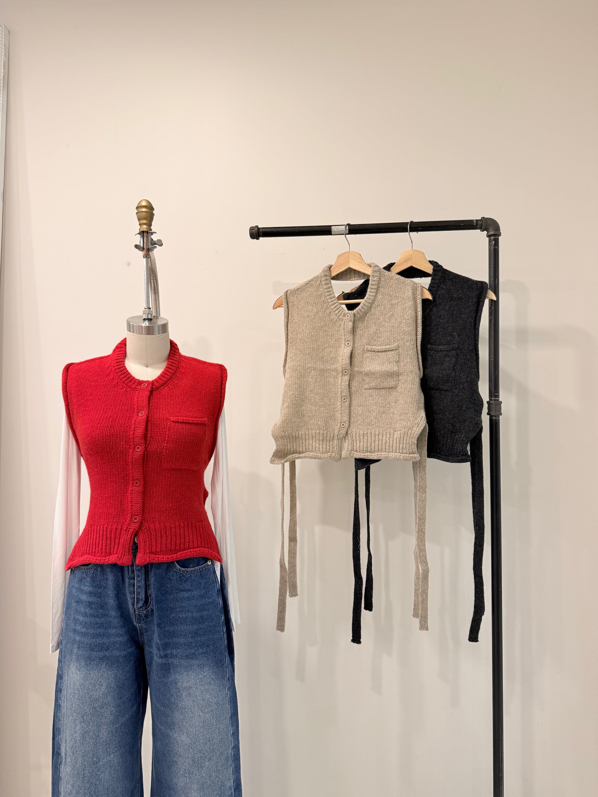 Business in the front, a total party in the back? We’re doing it the knitwear way. Meet our Backless Knit Vest: the ultimate "cool-girl" hybrid that understands the assignment of transitional dressing while keeping things a little cheeky.