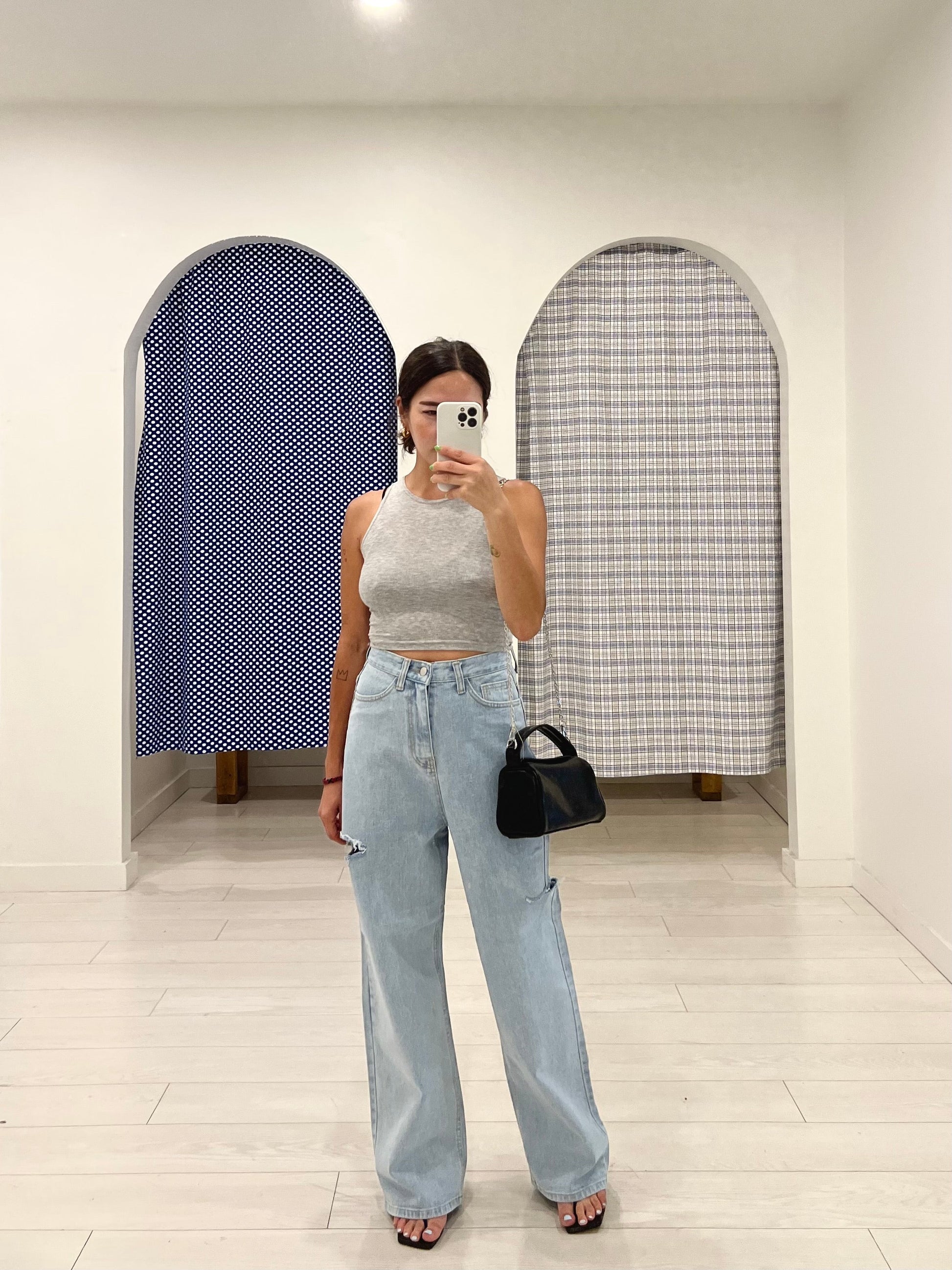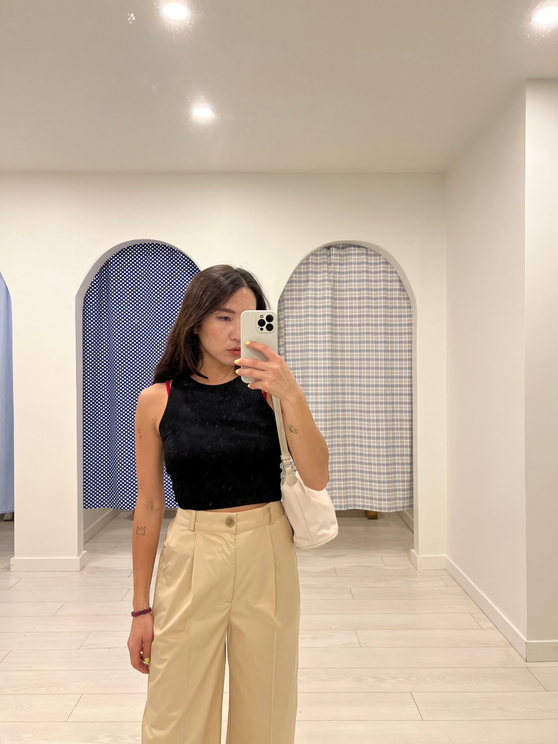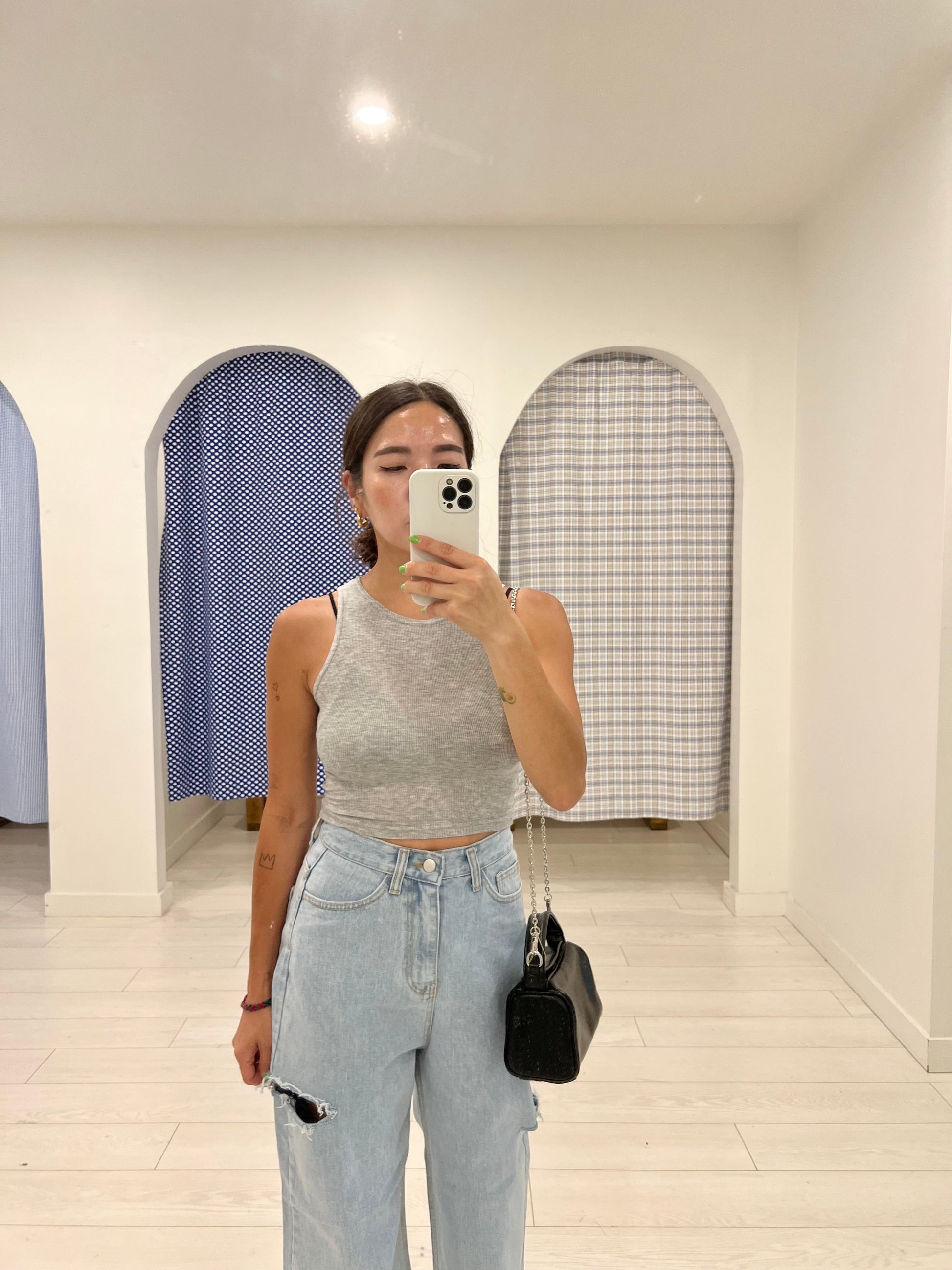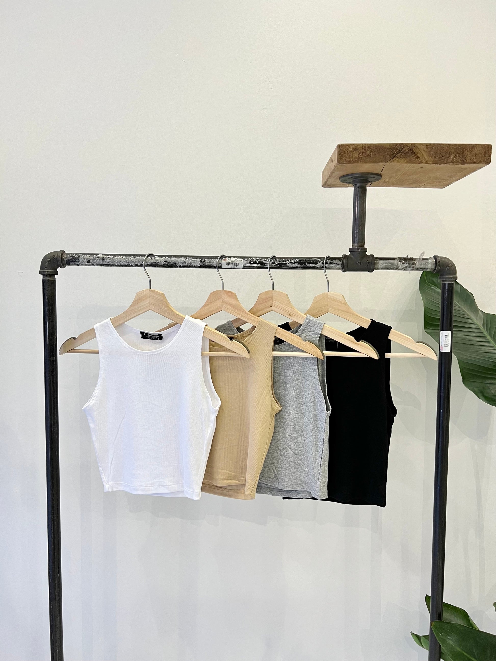 Simple, halter neck ribbed crop tank top, a soft and breezy Durumi summer wardrobe essential. Now available in black, white, grey, beige.