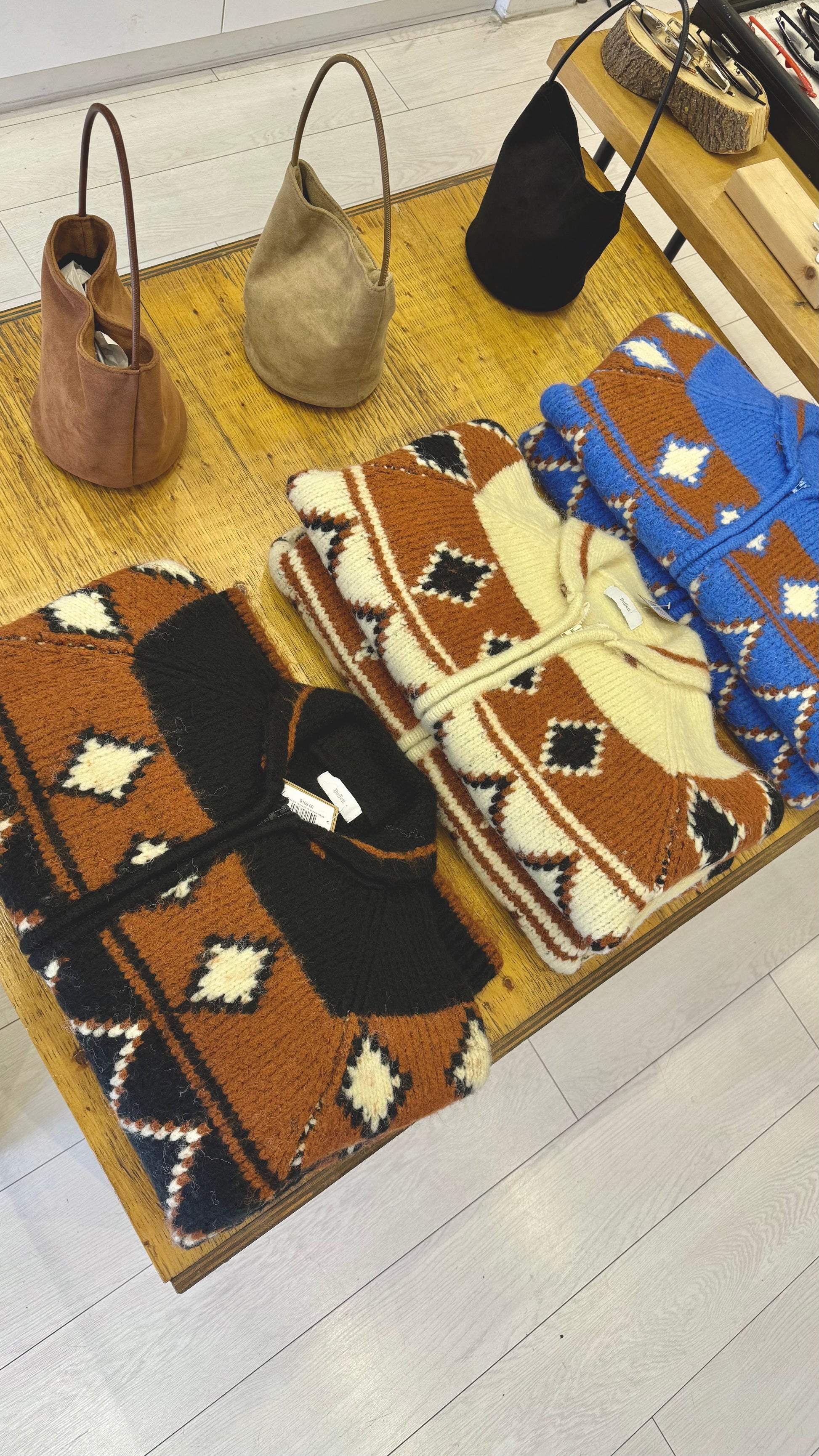 When cozy meets color, it’s pure fall magic. If you’re not afraid of pattern, this statement knit is for you. Enter: our zip-up sweater, crafted in rich fall tones with a bold geometric design that instantly stands out. With its plush texture, front zip closure, and relaxed fit, it’s the perfect throw-on for chilly days.