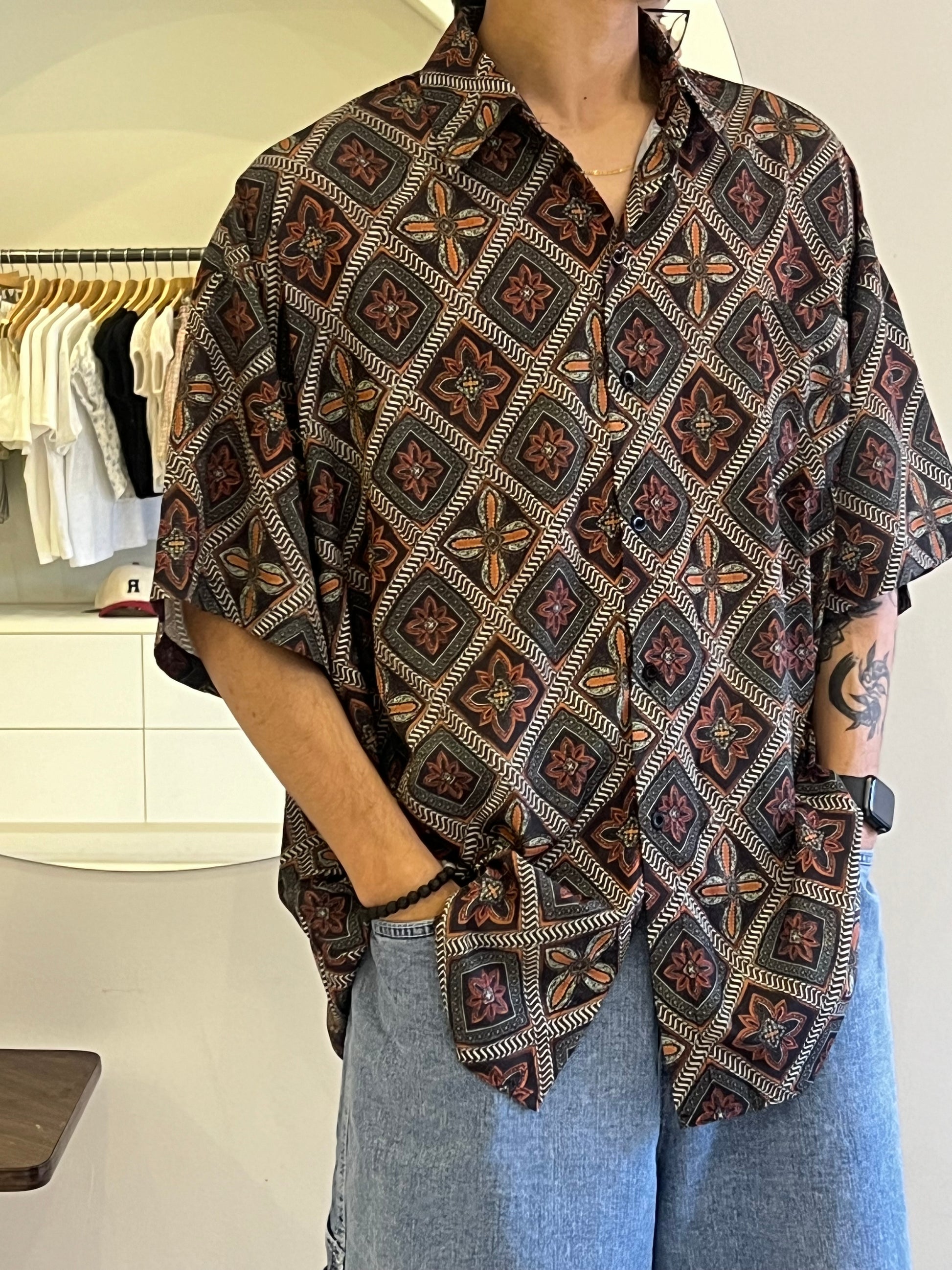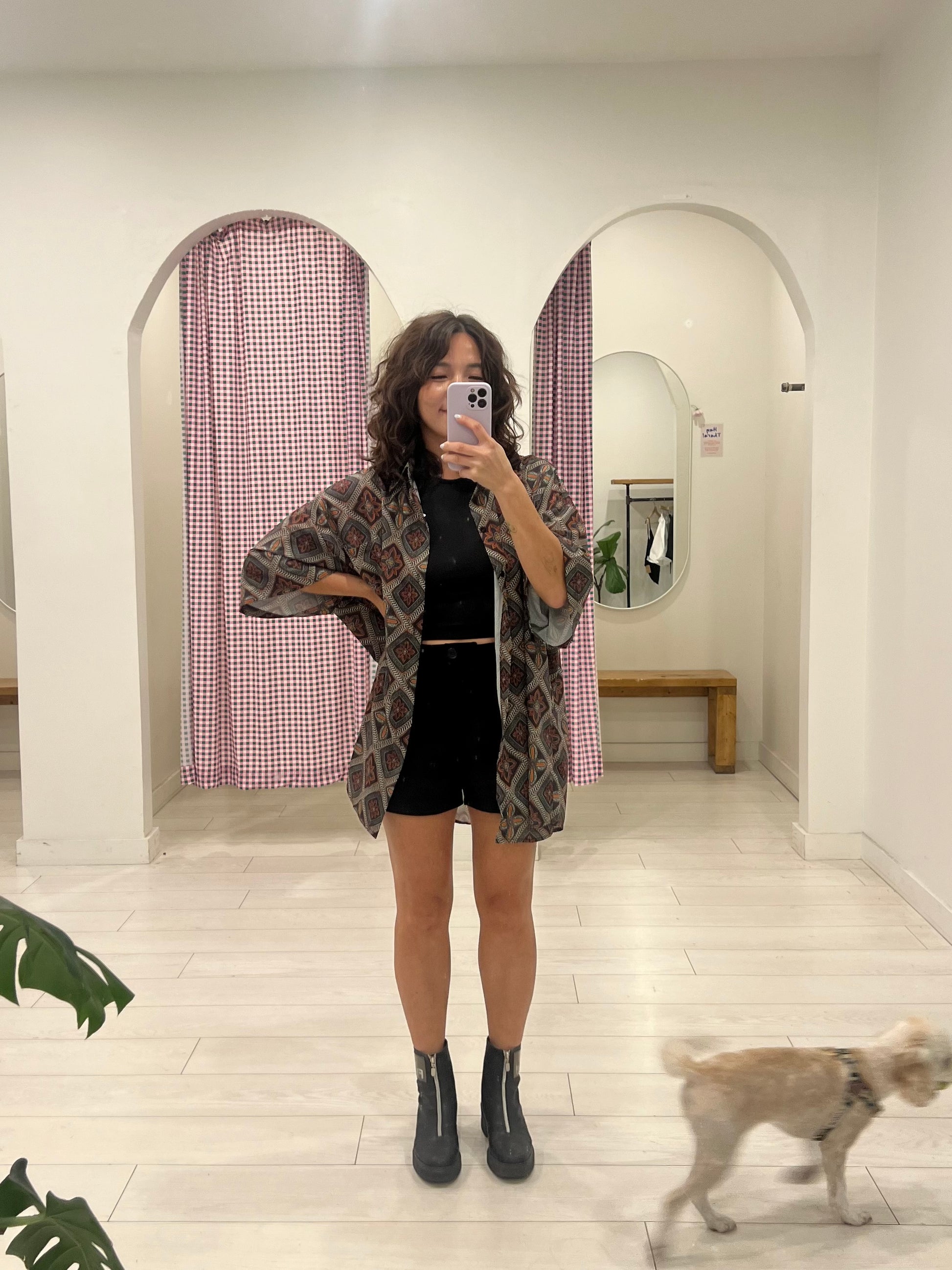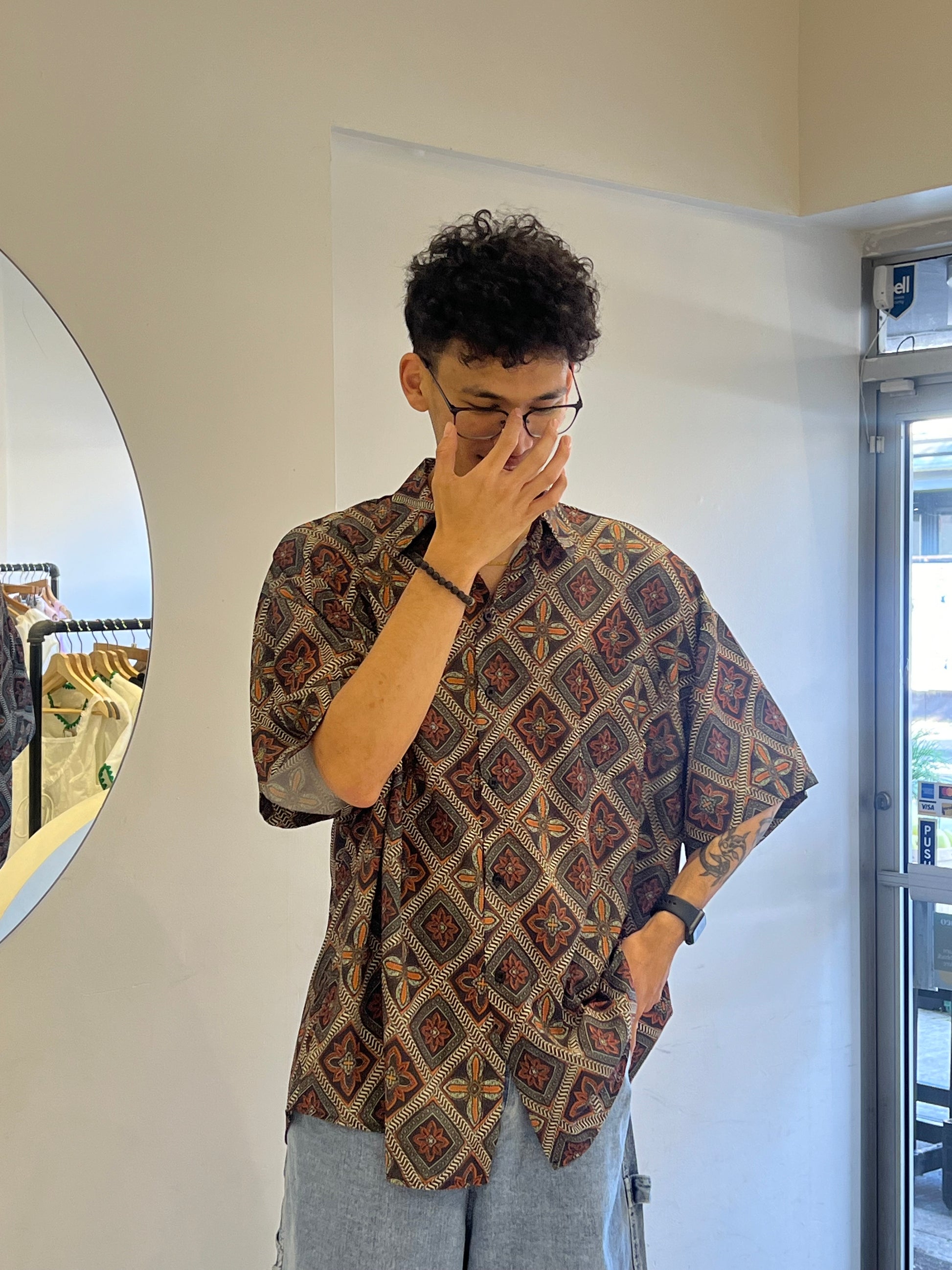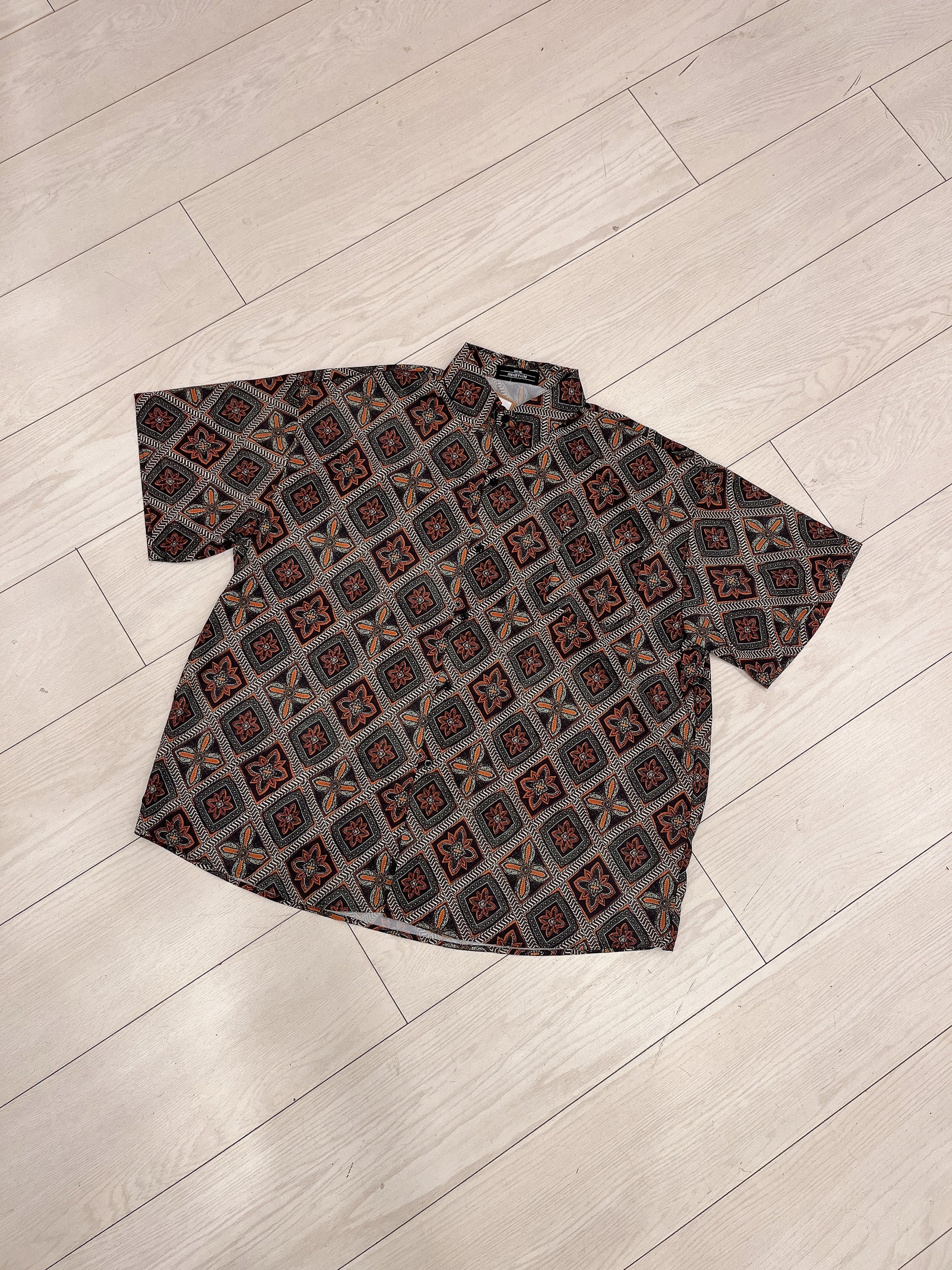 Perfectly oversized and unisex, our button-down shirt features a crisp collar, a gorgeous vibrant tropical print, black buttons and a front pocket on the left chest area.