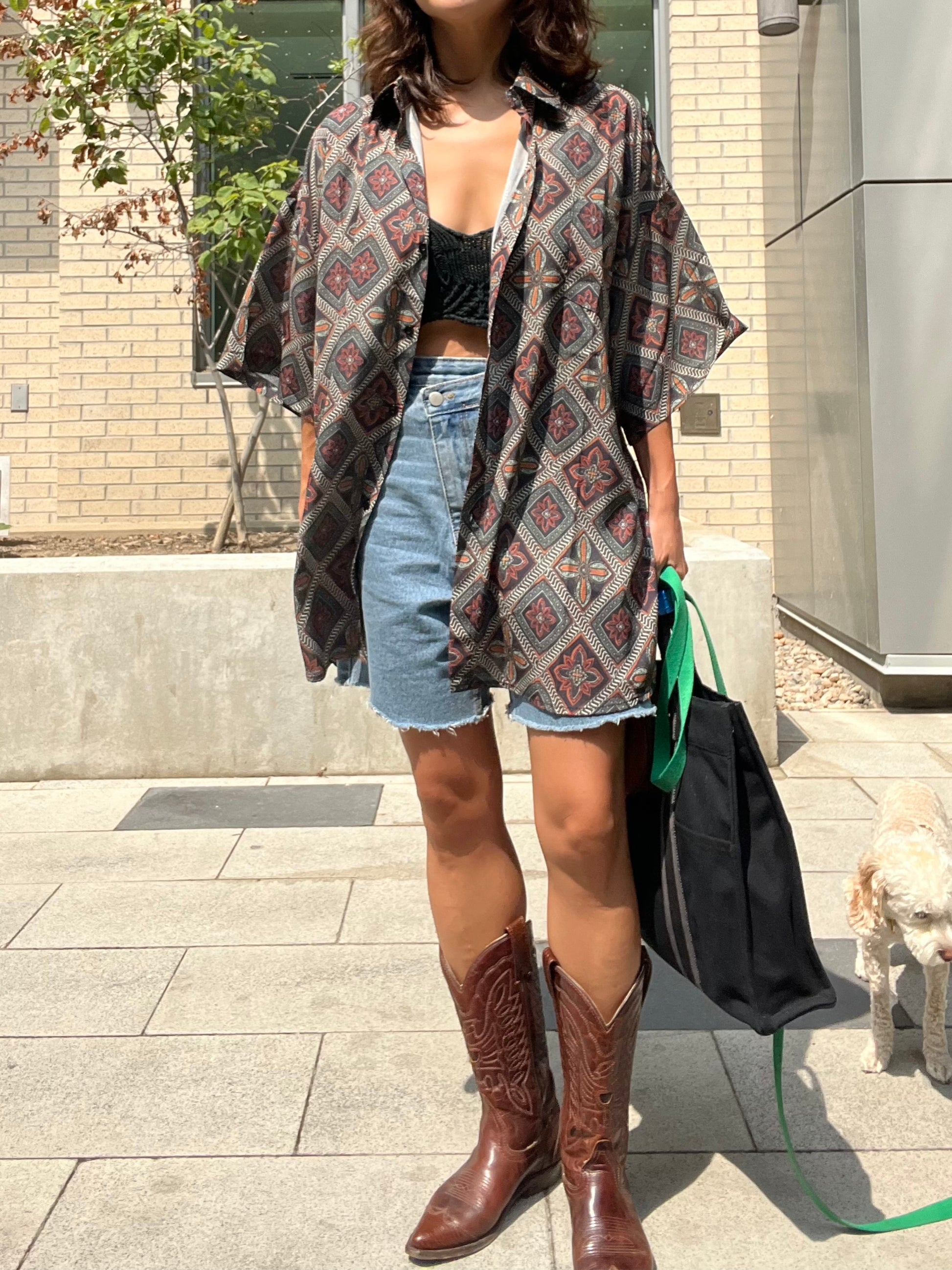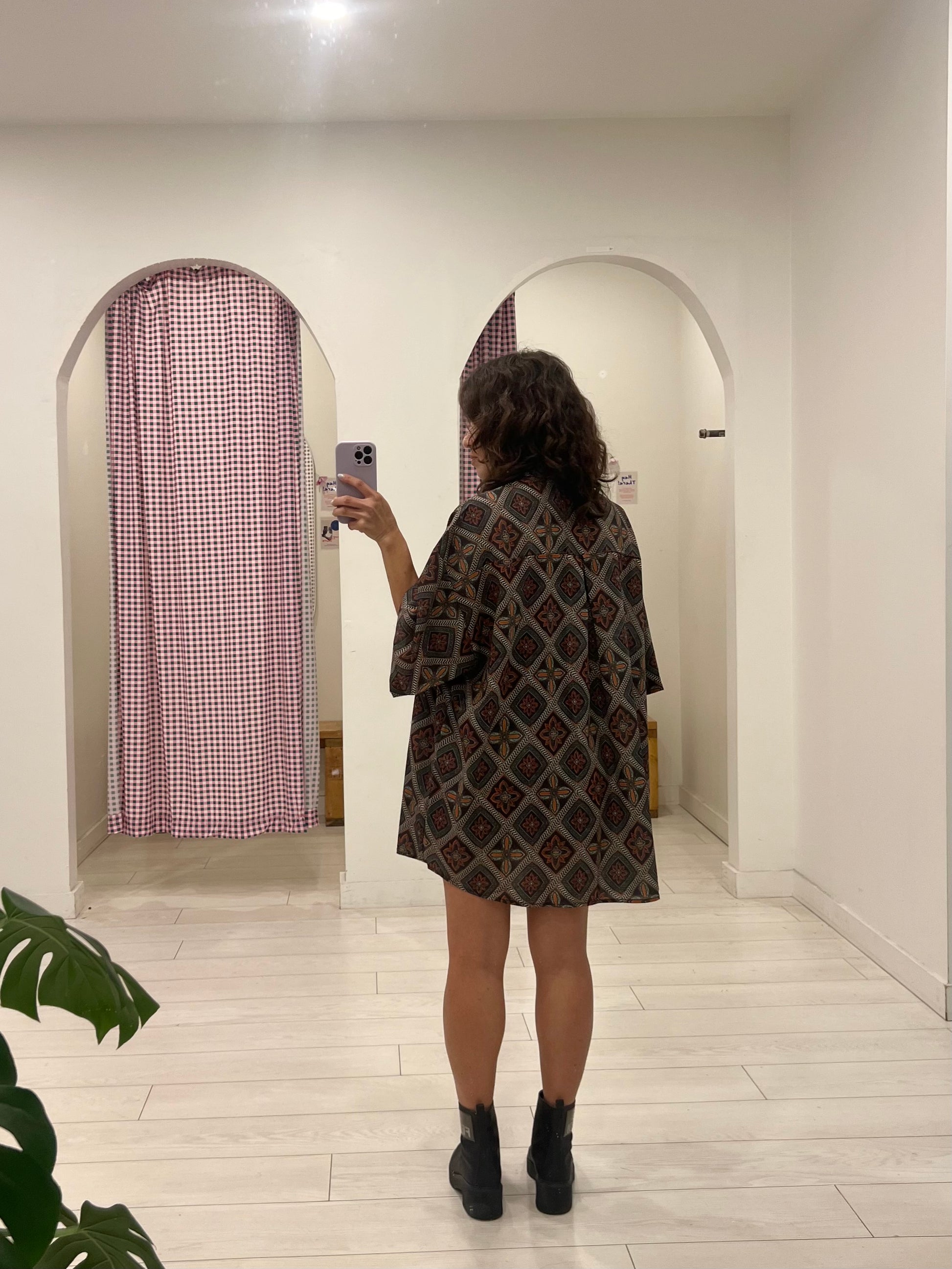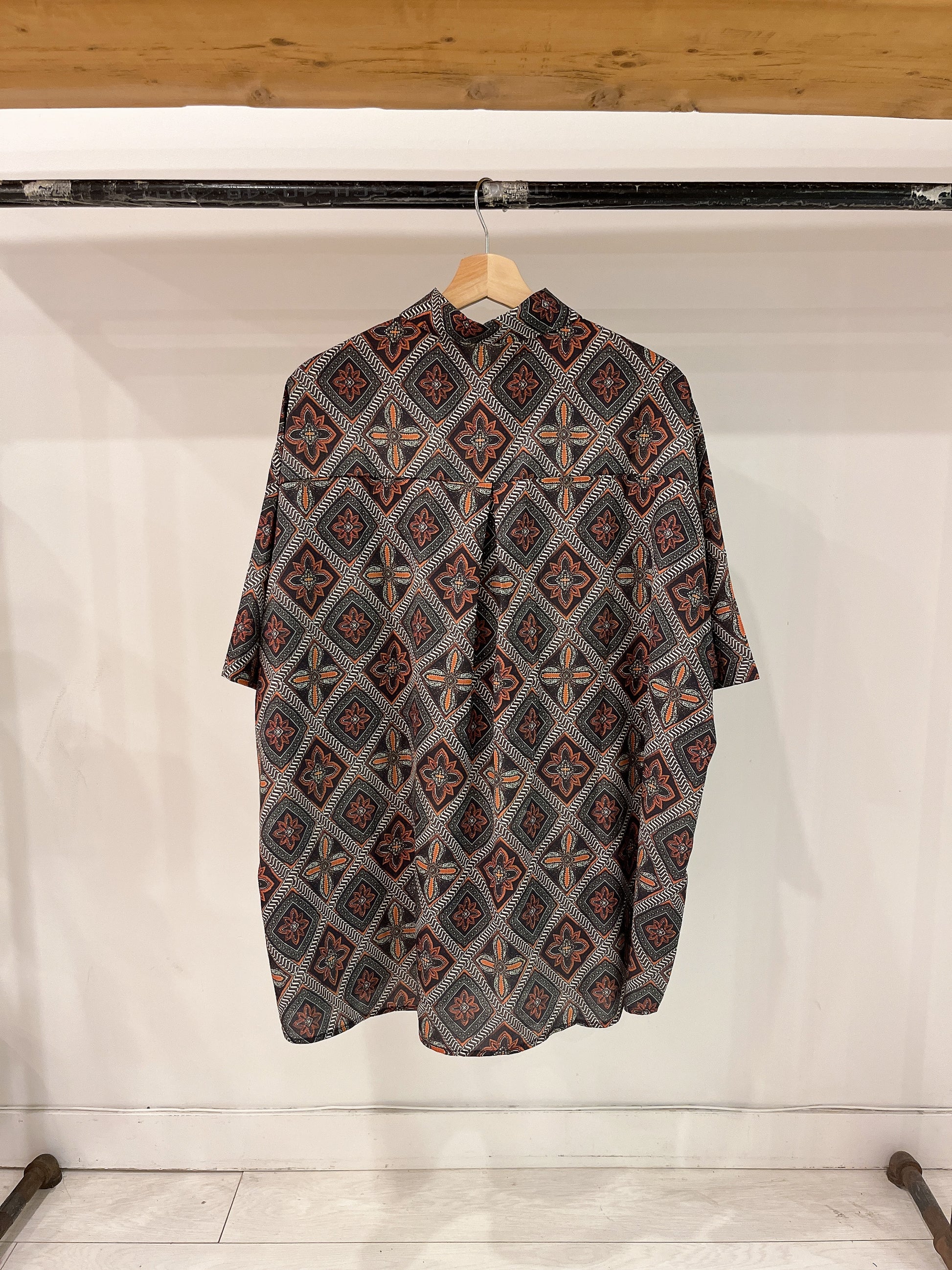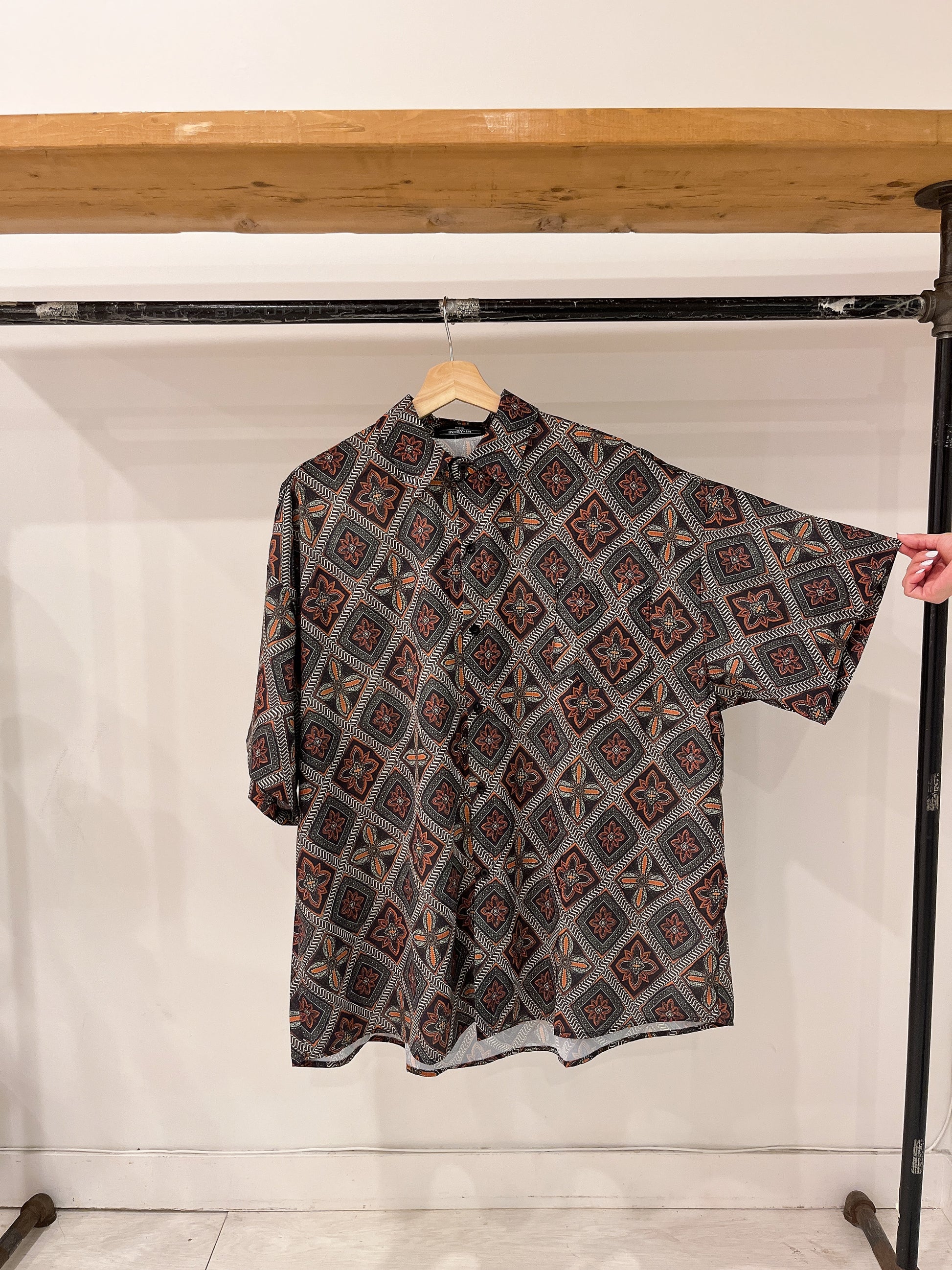 Perfectly oversized and unisex, our button-down shirt features a crisp collar, a gorgeous vibrant tropical print, black buttons and a front pocket on the left chest area.
