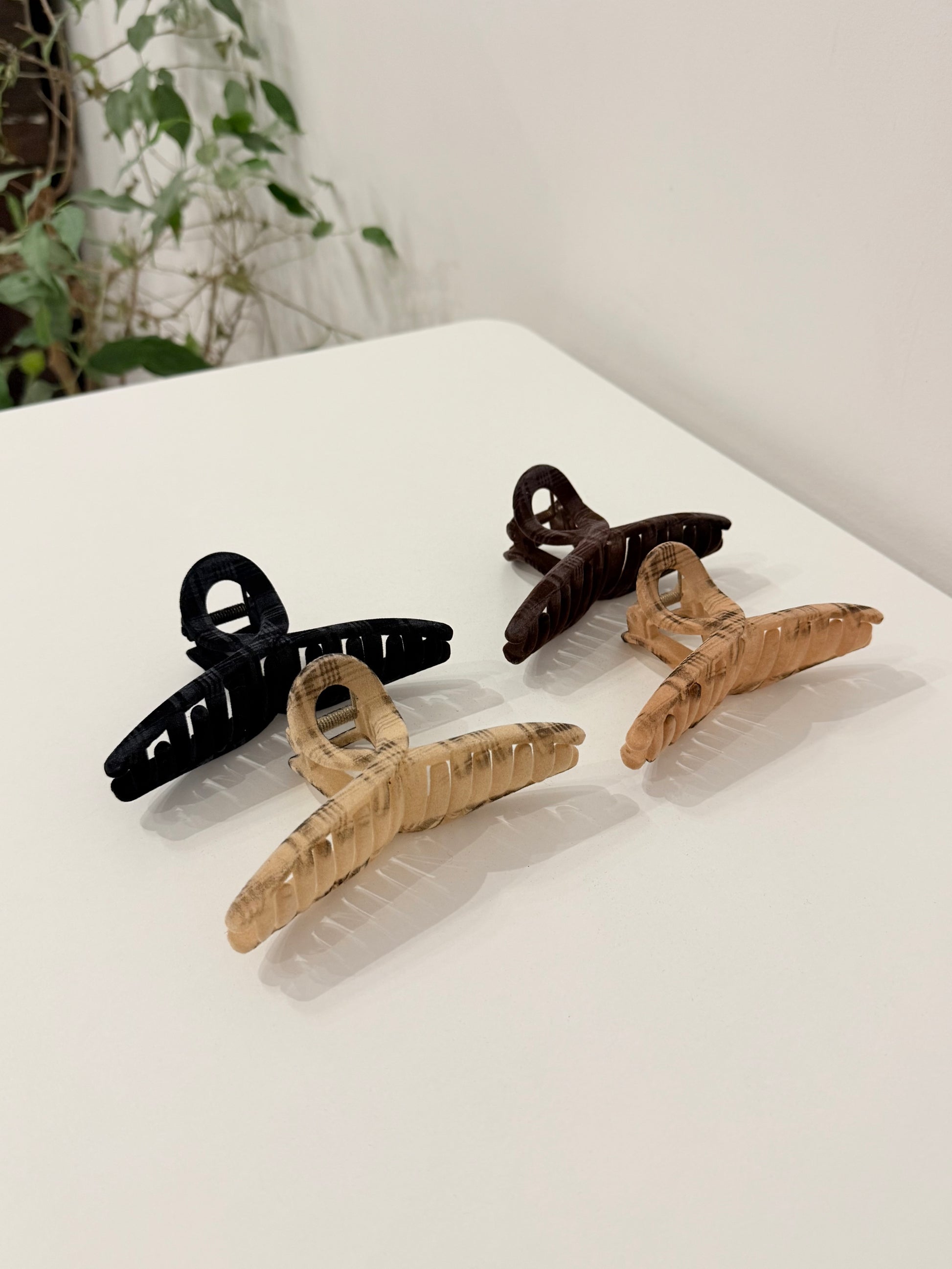 Elevate your cozy season style with the Matte Plaid Twist Claw. Featuring an elegant twisted silhouette and a premium soft-touch matte finish, this clip is the perfect blend of effortless style and comfort.