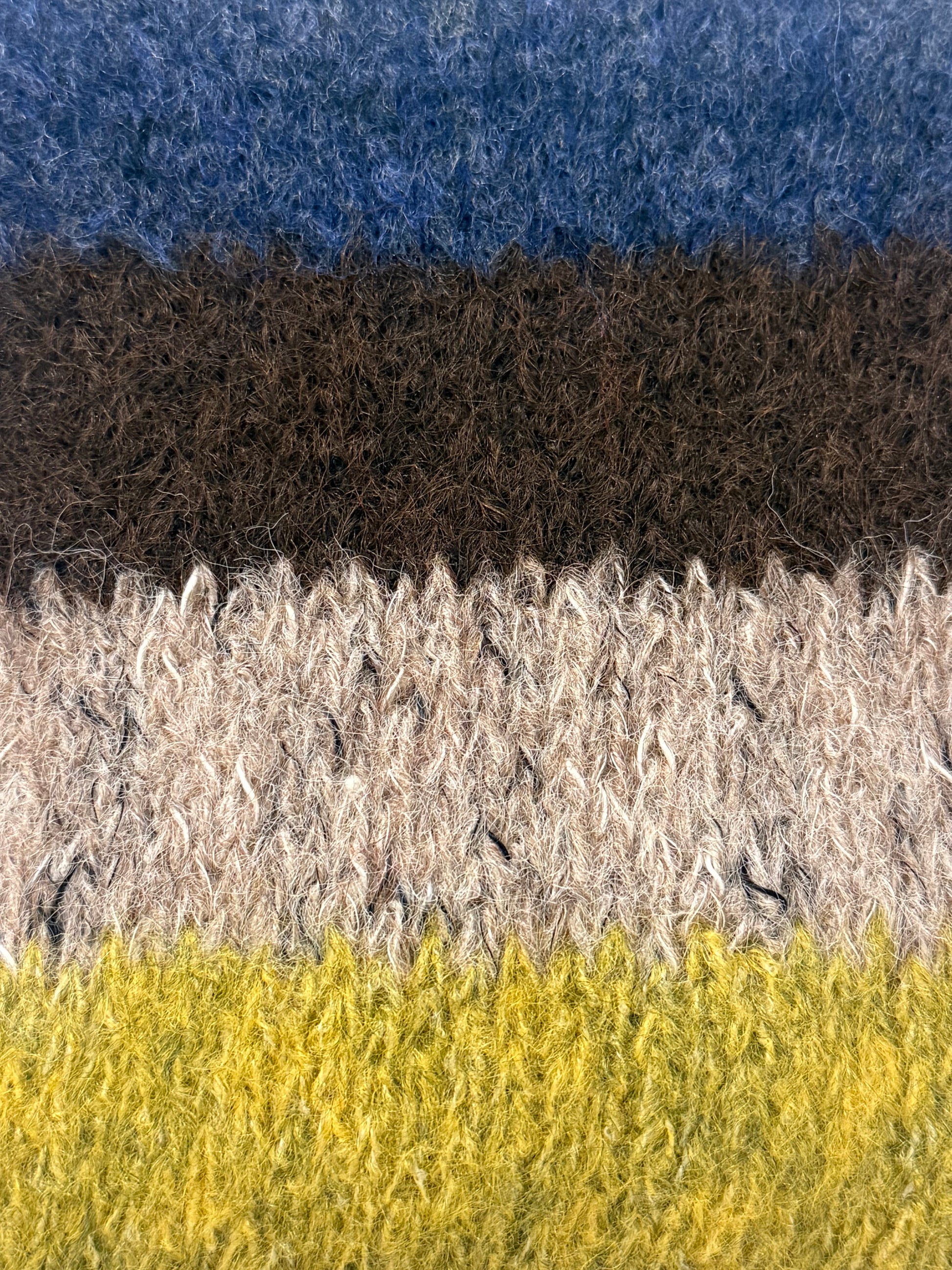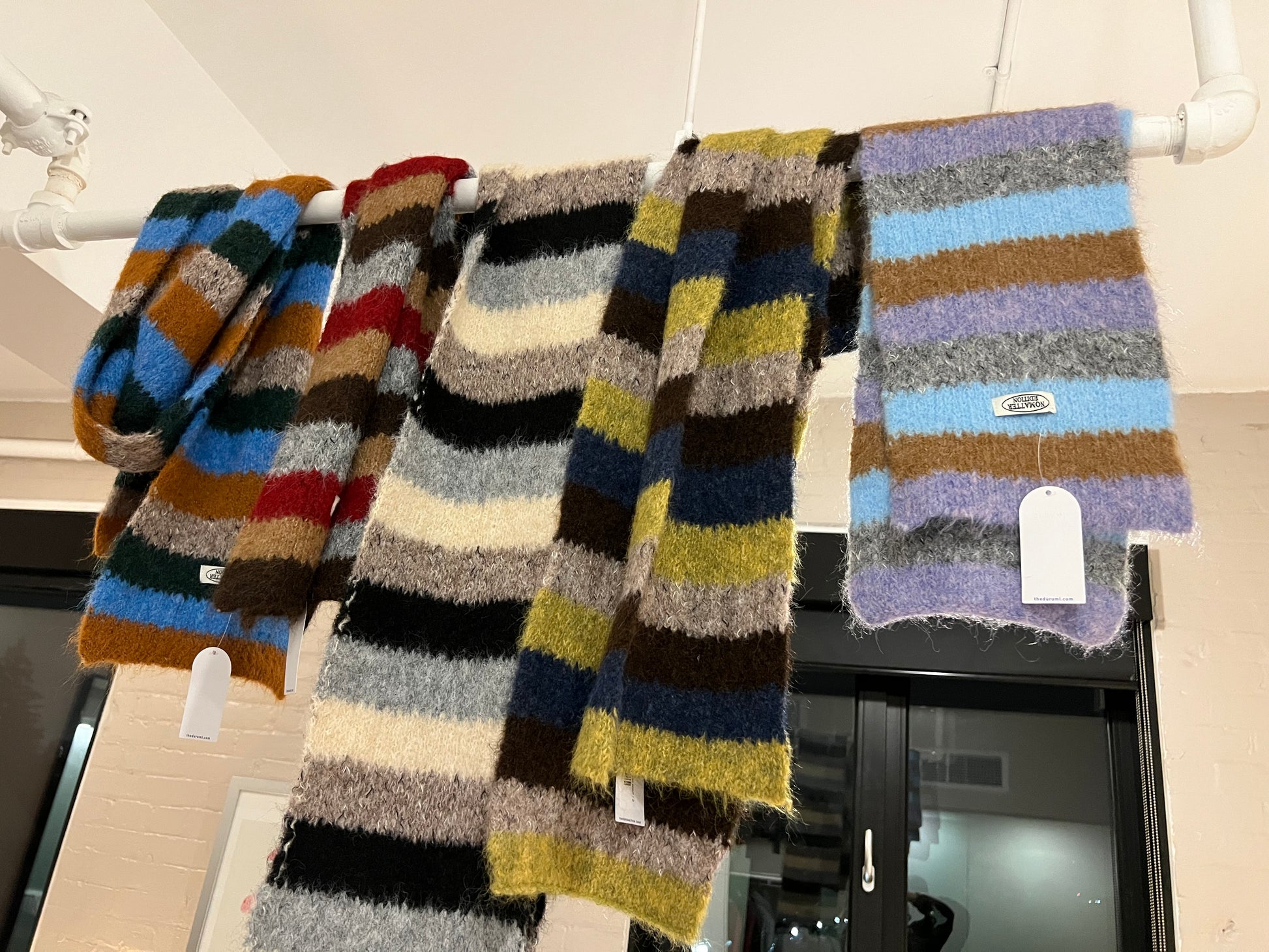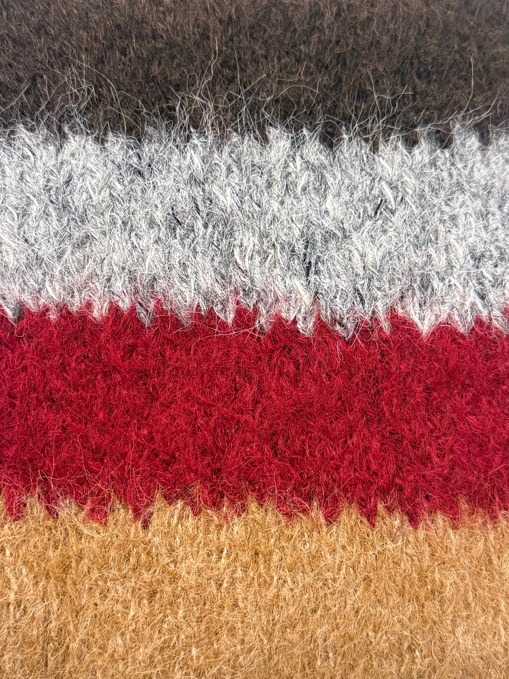 A cozy pop of colour for every winter fit. This fuzzy scarf features wide, multicoloured horizontal stripes in a super-soft wool-blend fabric that feels as warm as it looks. It adds just the right dollop of colour and texture — the effortless statement piece you’ll reach for on repeat.