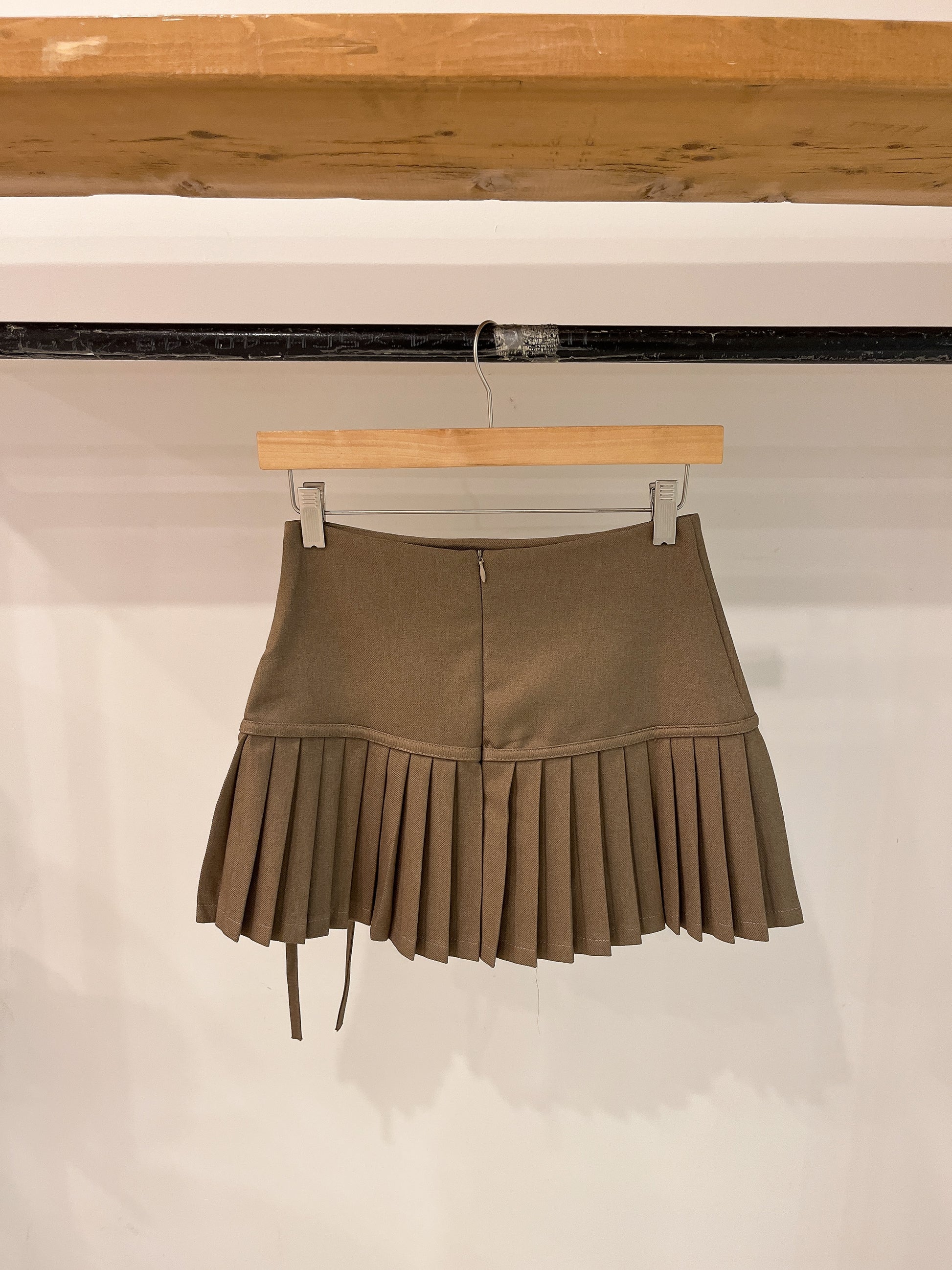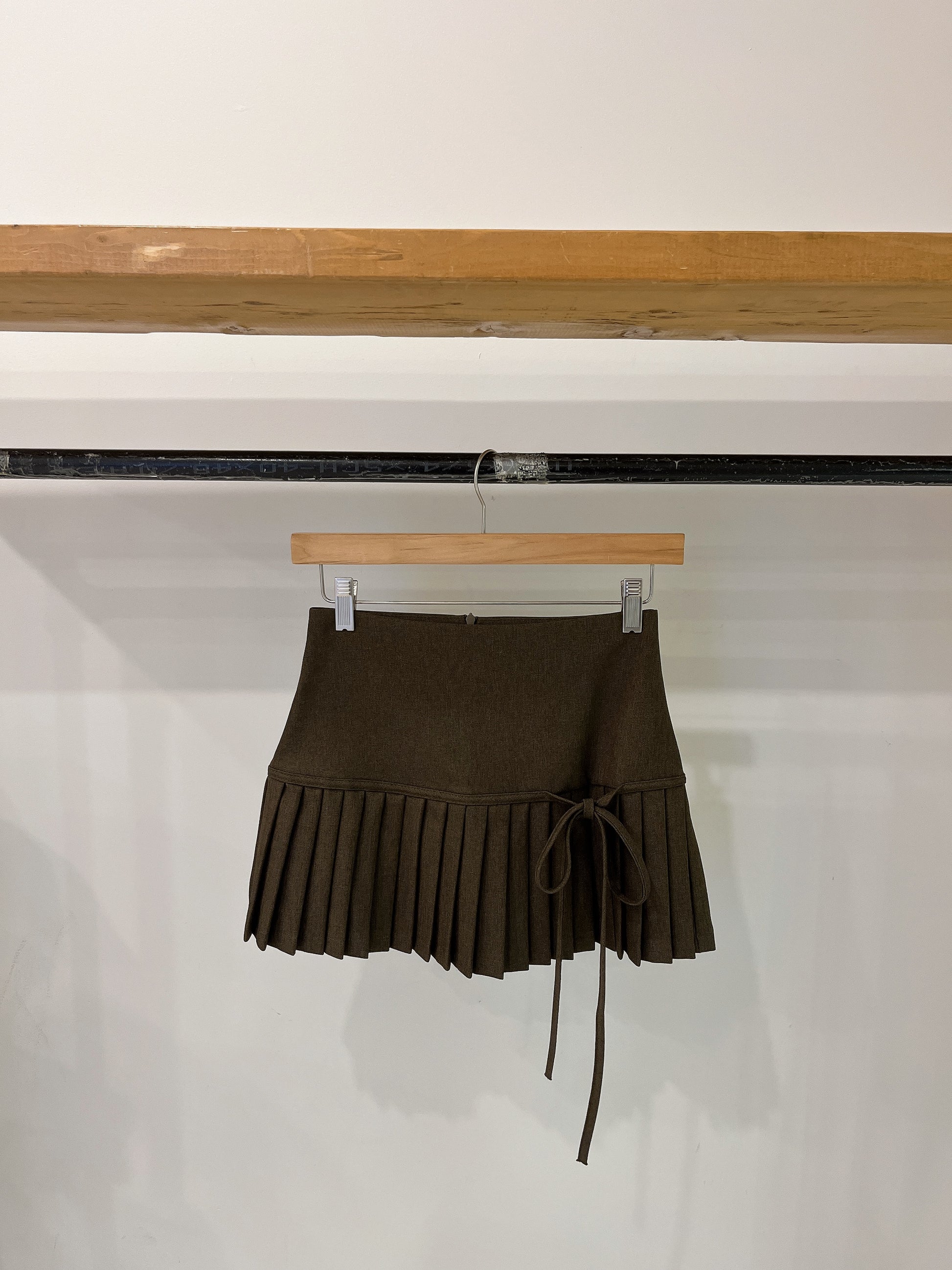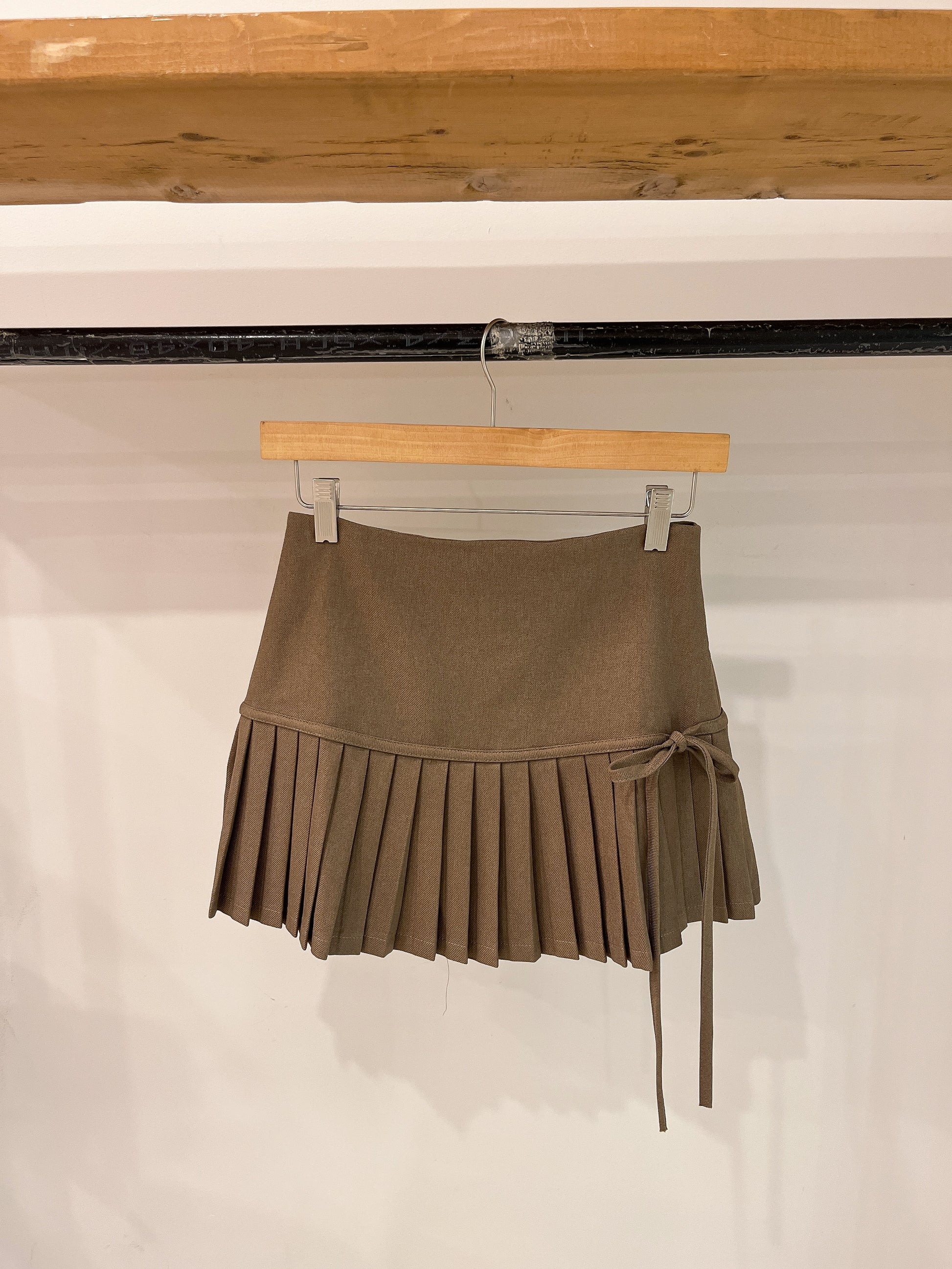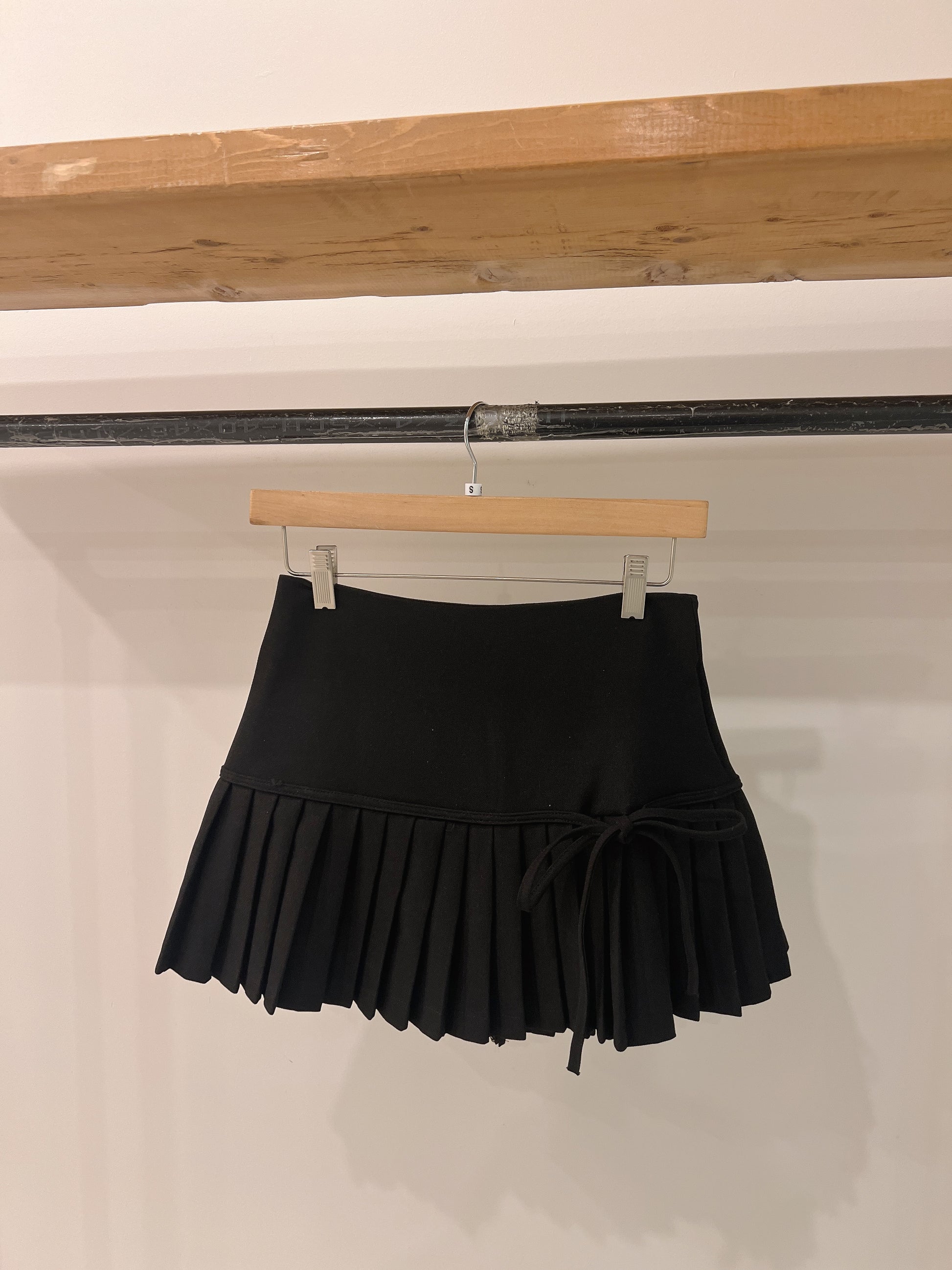 Embrace pleated perfection in our stylish pleated mini skirt with tip-up ribbon detail, a discreet side zipper and fitted feel. Now available in black and grey.