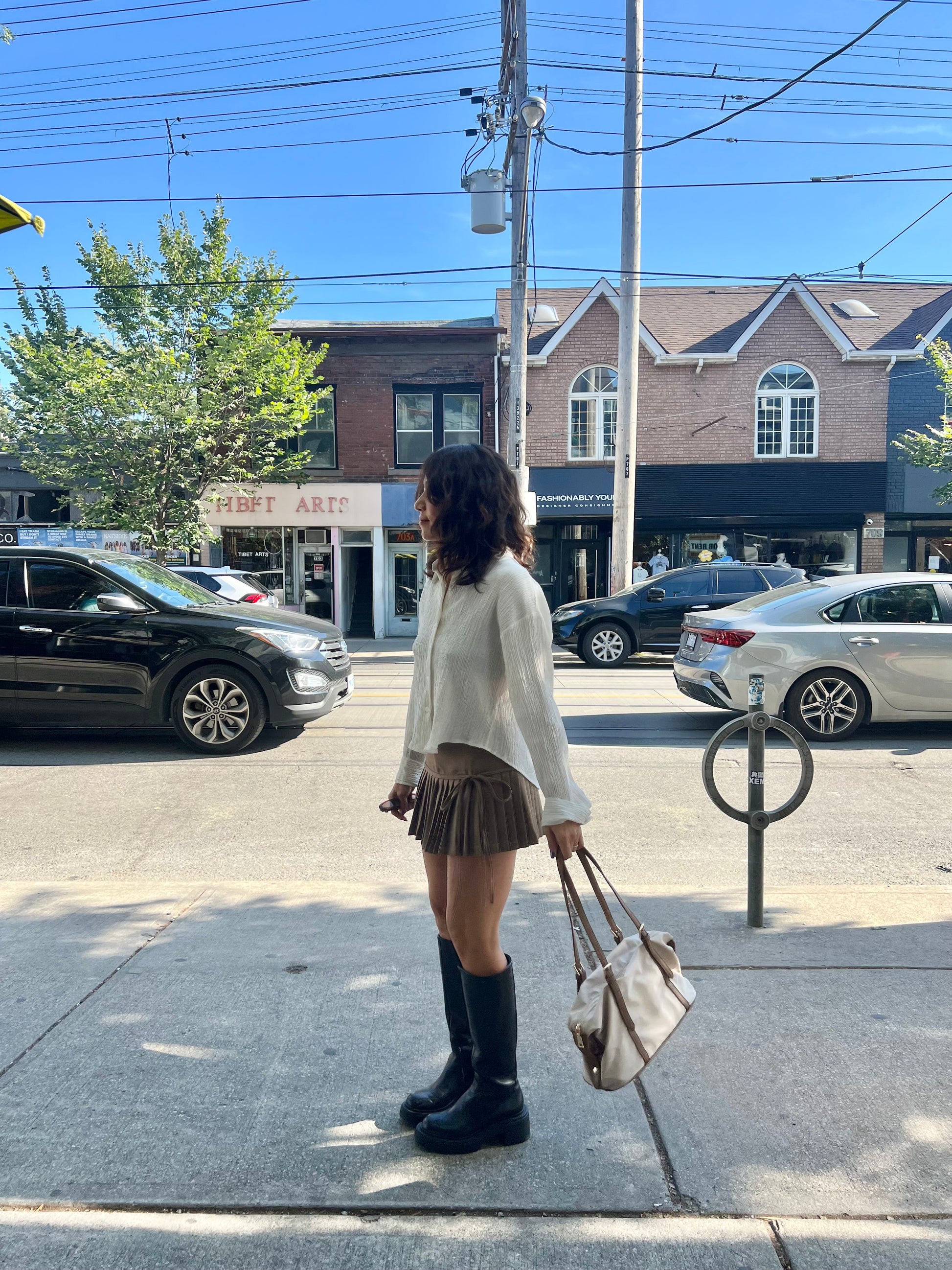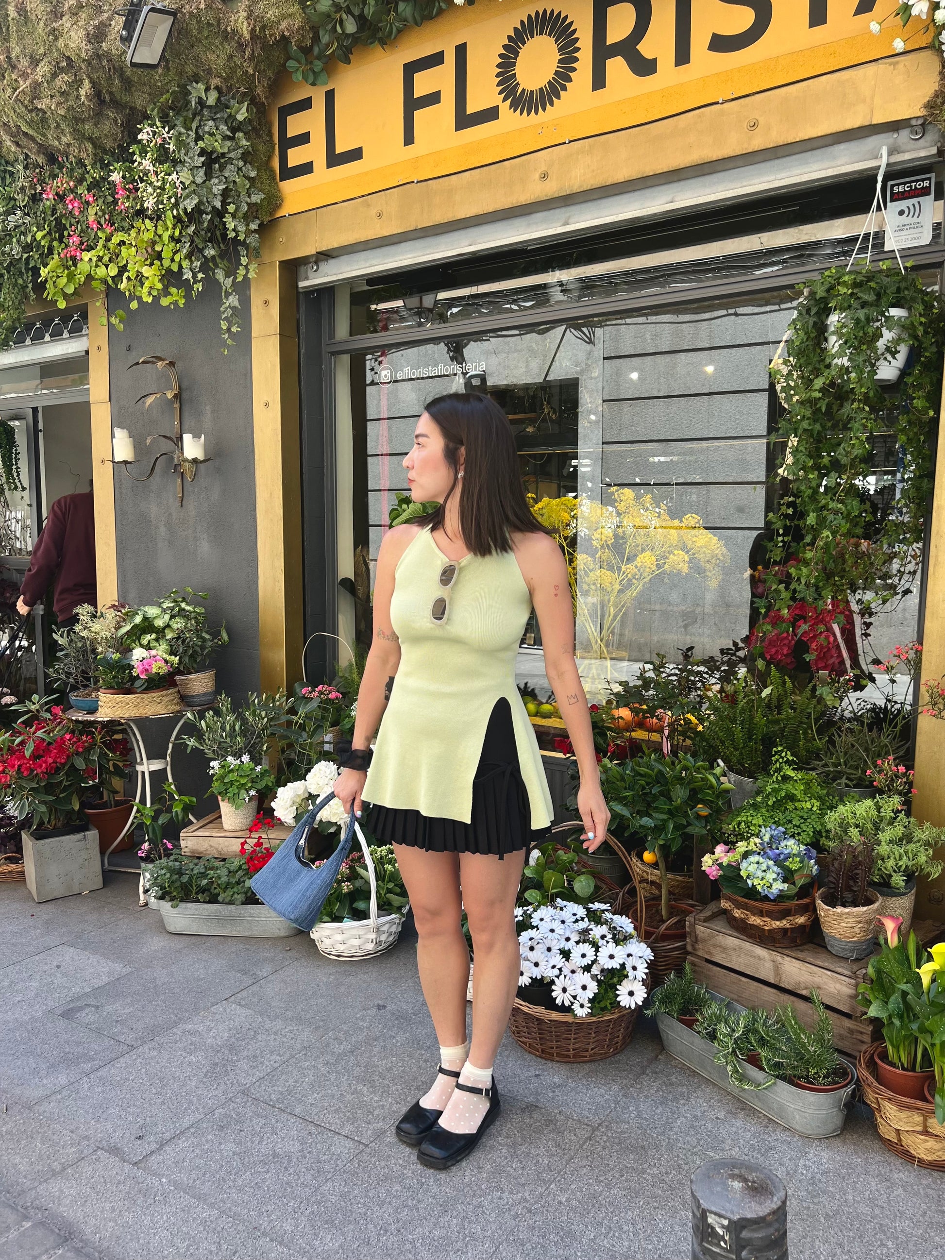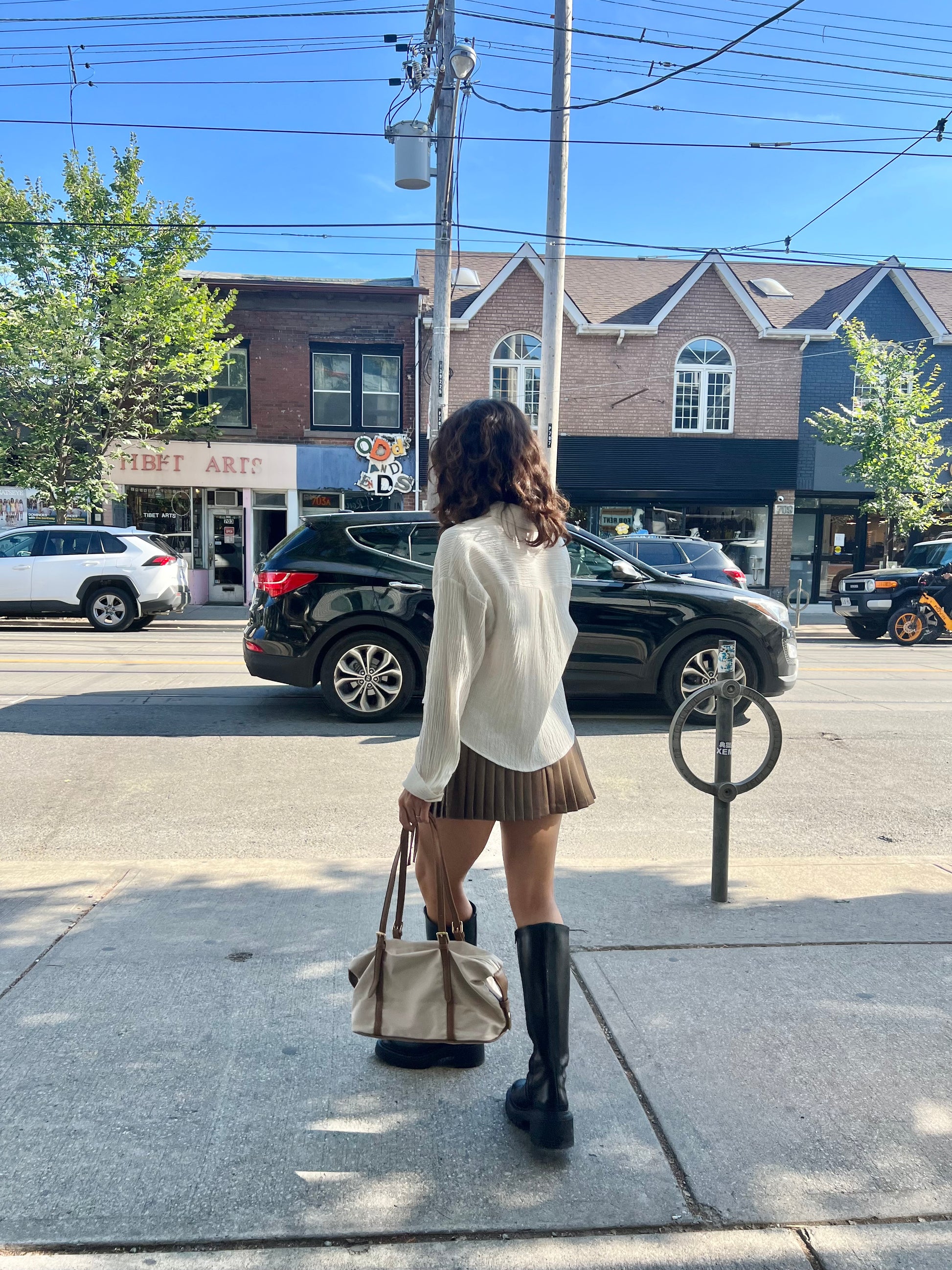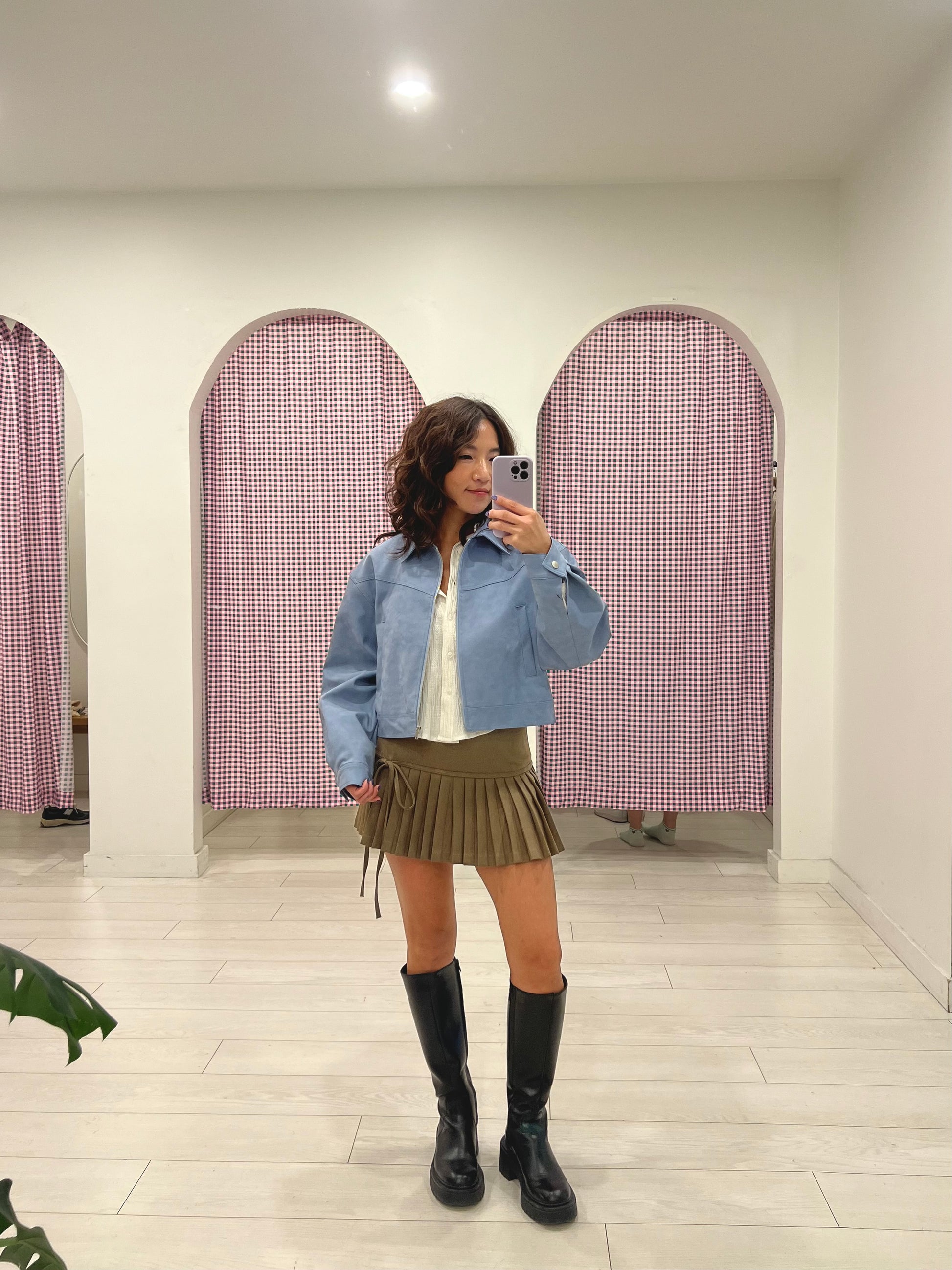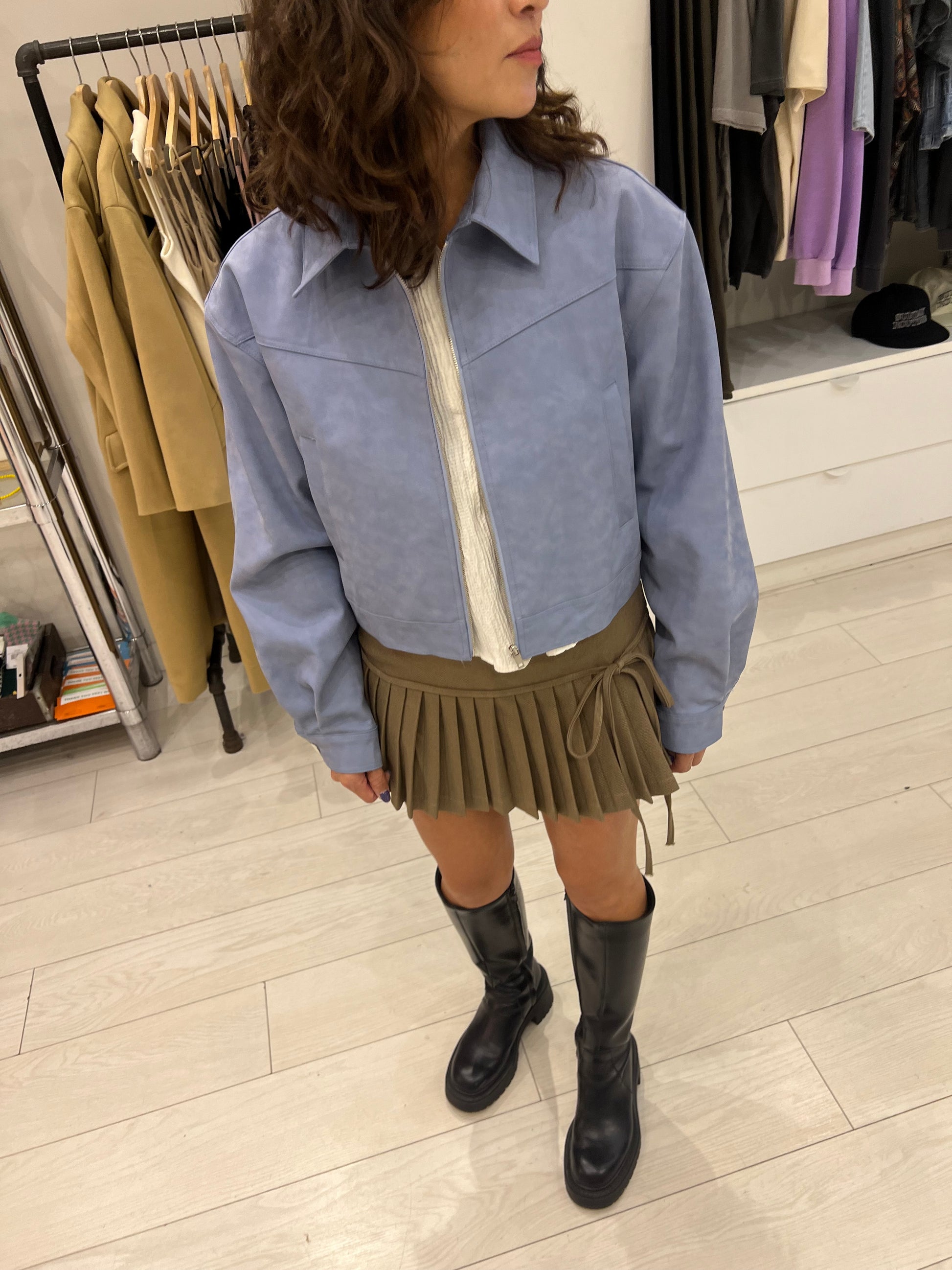 Embrace pleated perfection in our stylish pleated mini skirt with tip-up ribbon detail, a discreet side zipper and fitted feel. Now available in black and grey.