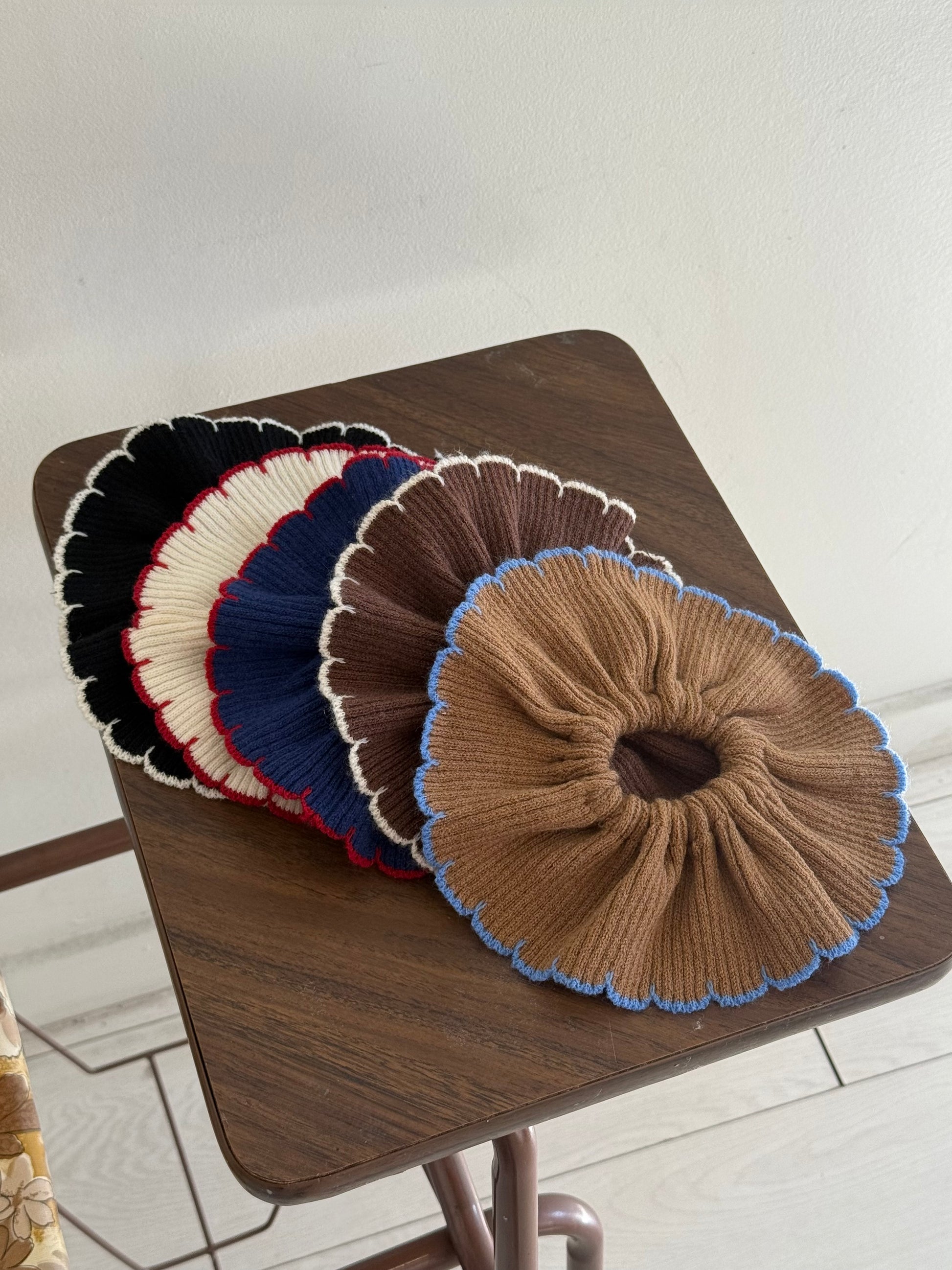 Meet the accessory that pulls double duty. Designed with a structured ribbed knit and a charming contrast trim, the Scalloped Cuff Scrunchie is cute in your hair and even cuter on your wrist.