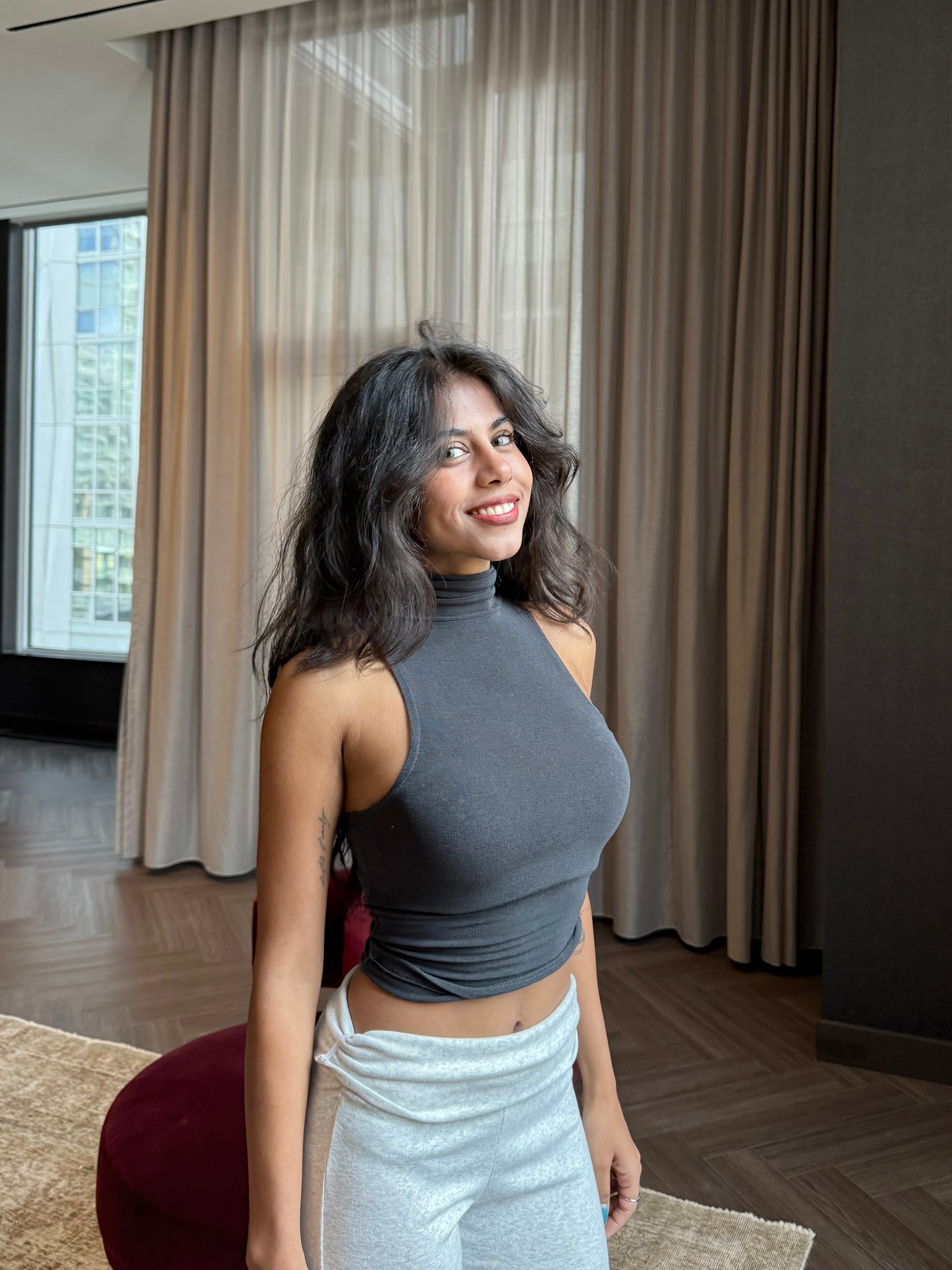 Soft, sleek, and a staple your fall wardrobe will love. This turtleneck tank top features a snug, flattering fit that hugs you like your bestie. Perfect for layering or wearing solo. Available in black, white, brown, and charcoal.