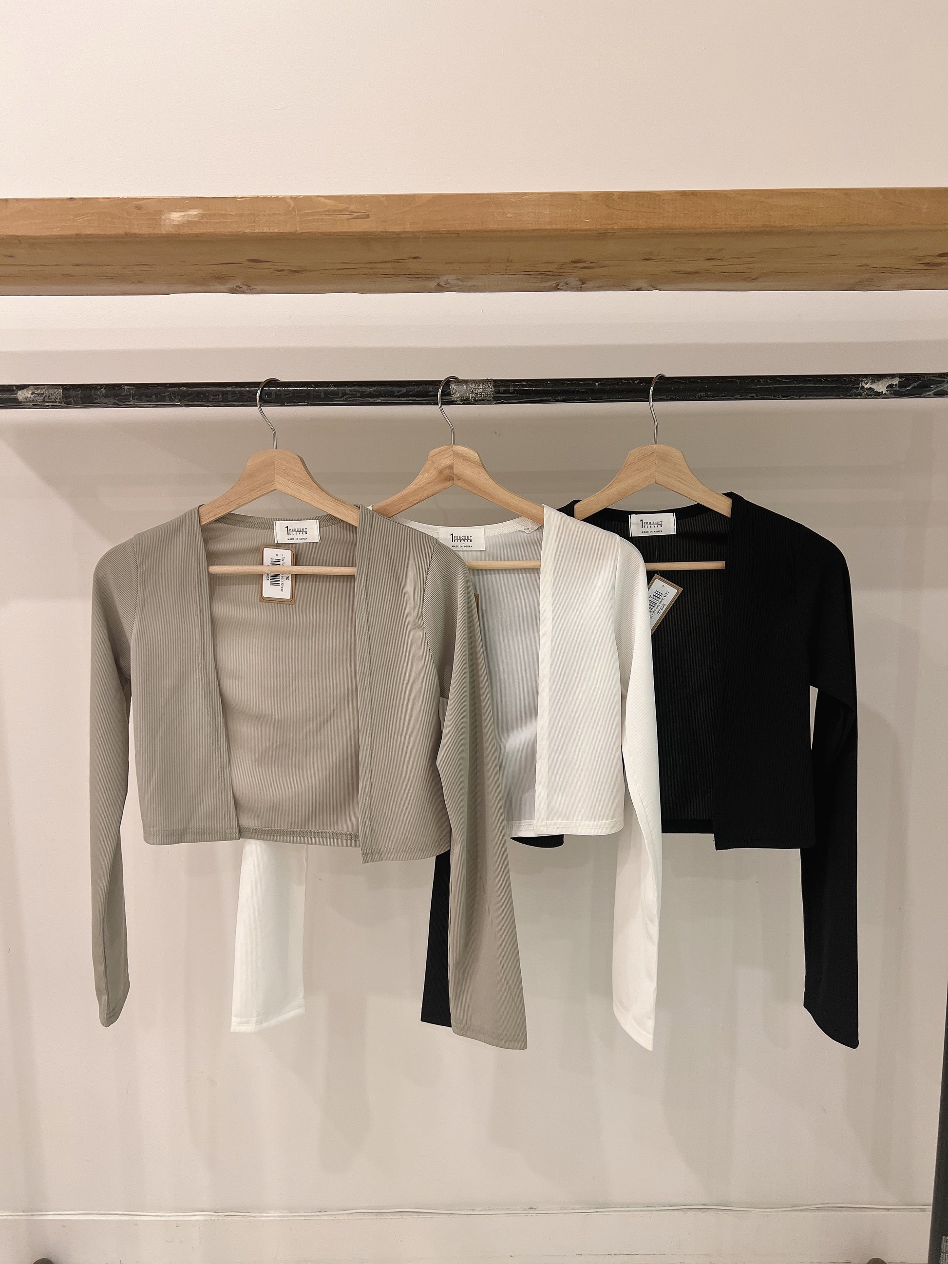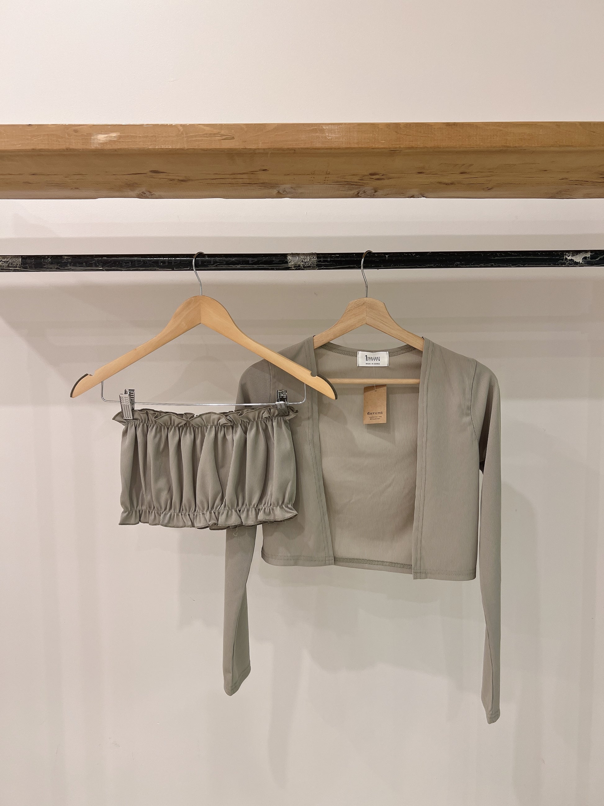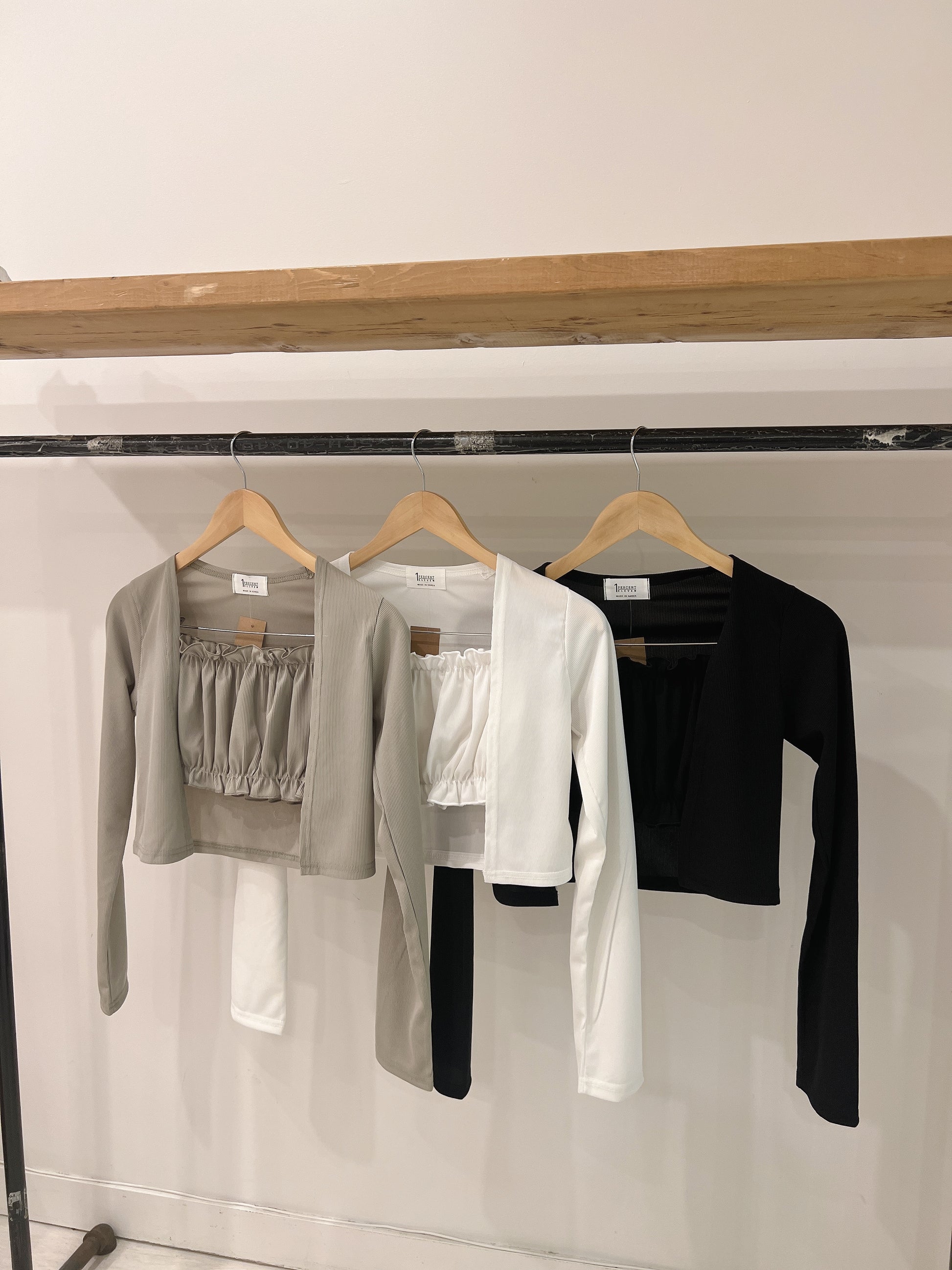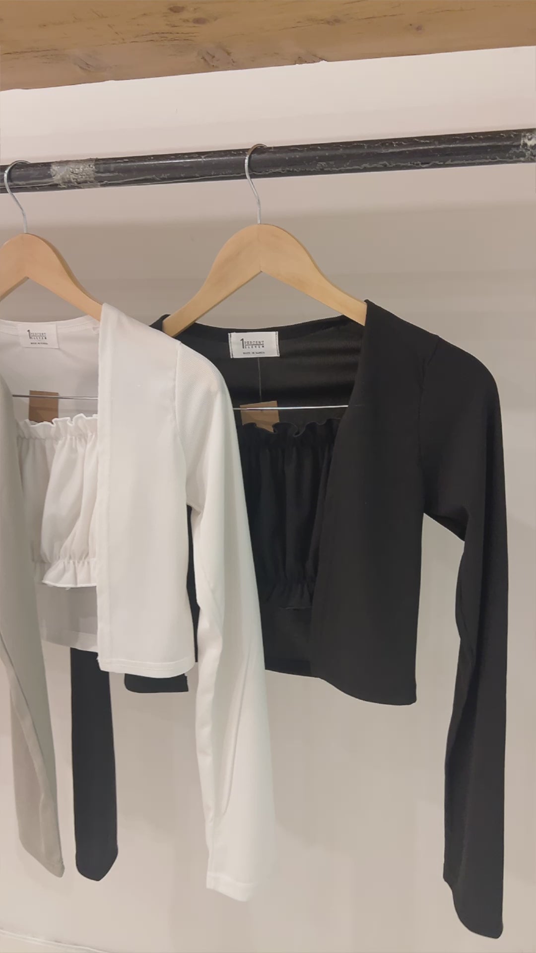 Introducing our adorable matching tube top set featuring a ribbed lettuce trip tube top and a matching fitted, long sleeve shrug. Now available in black, white, green, white.