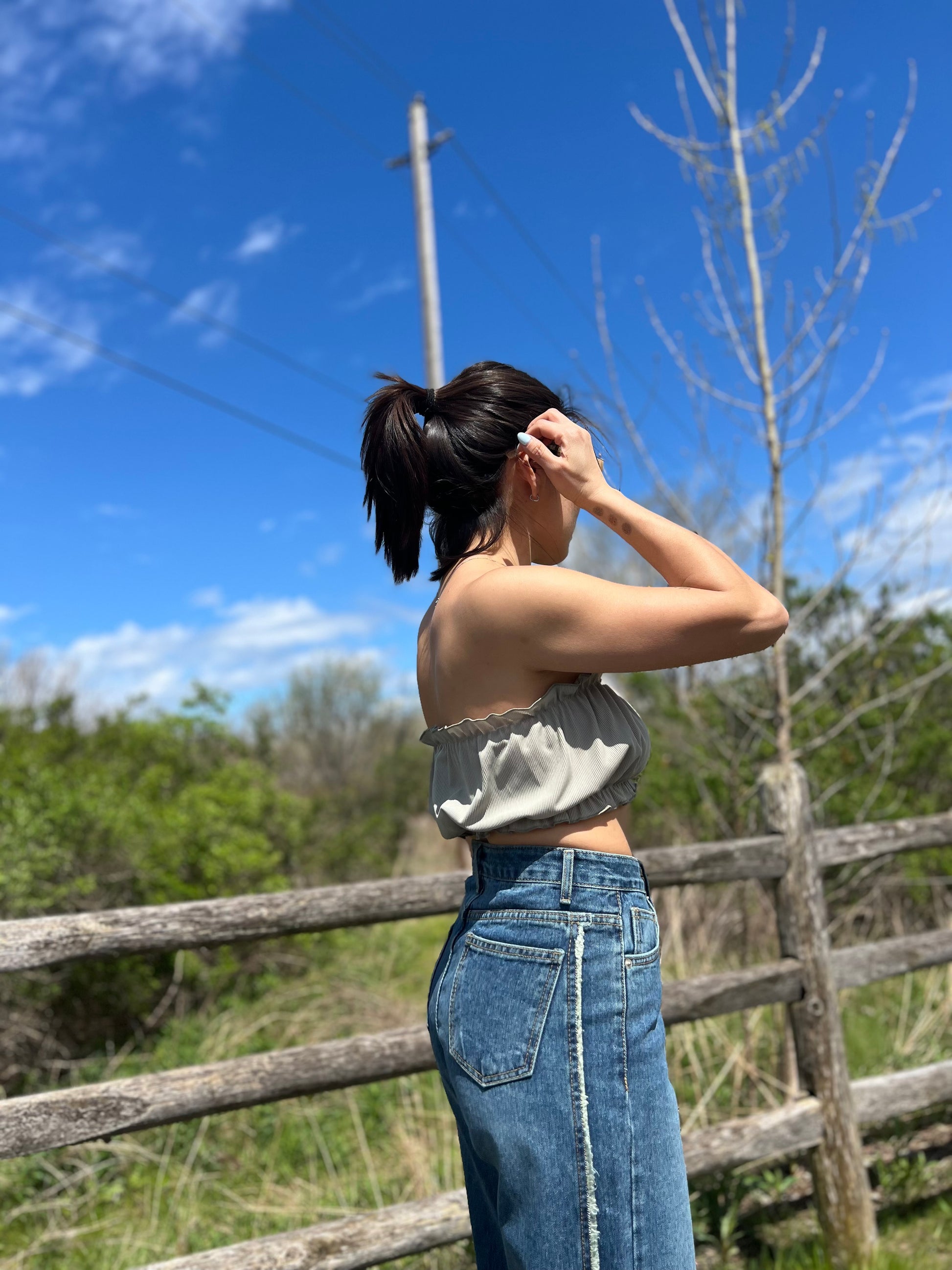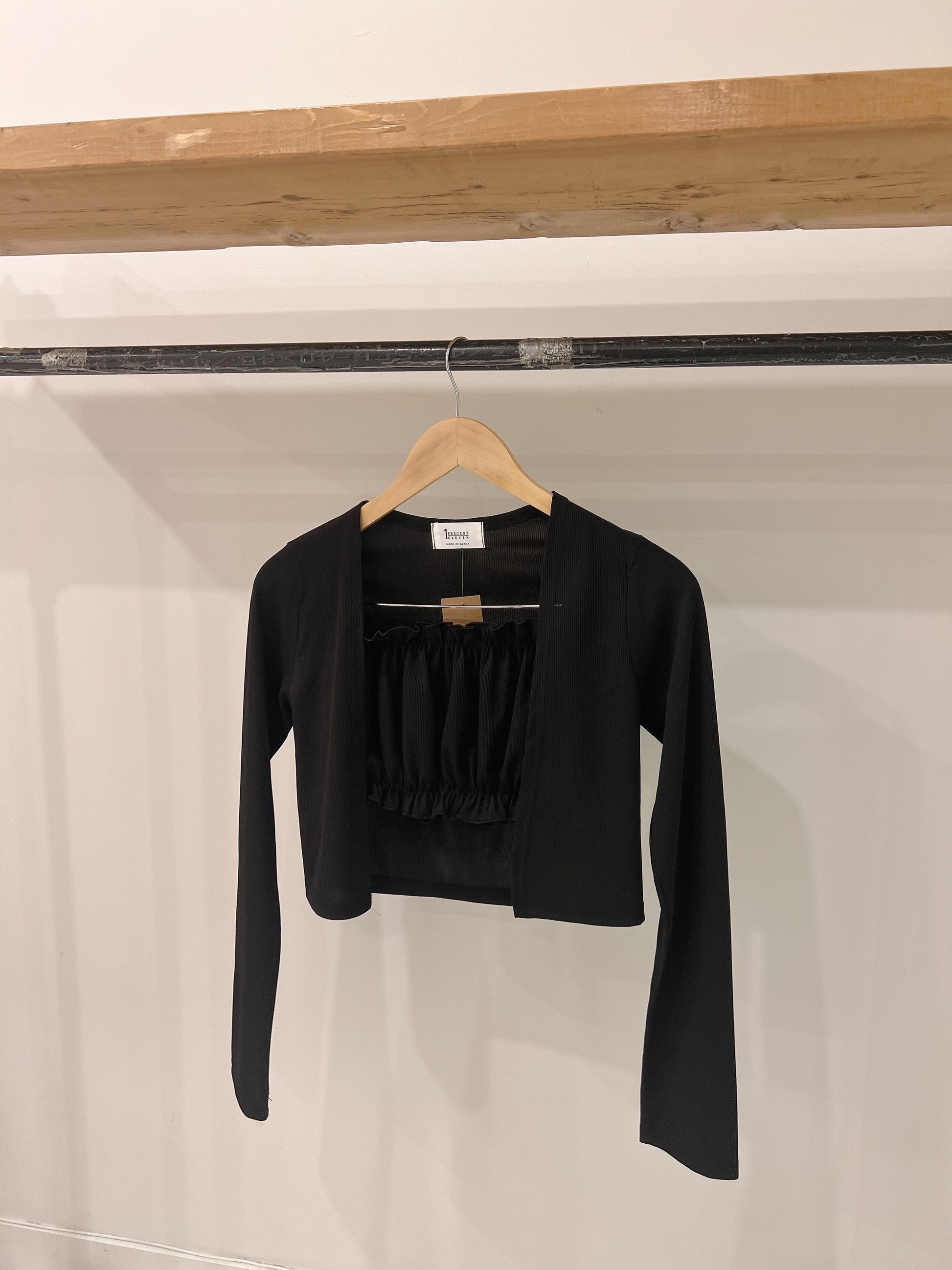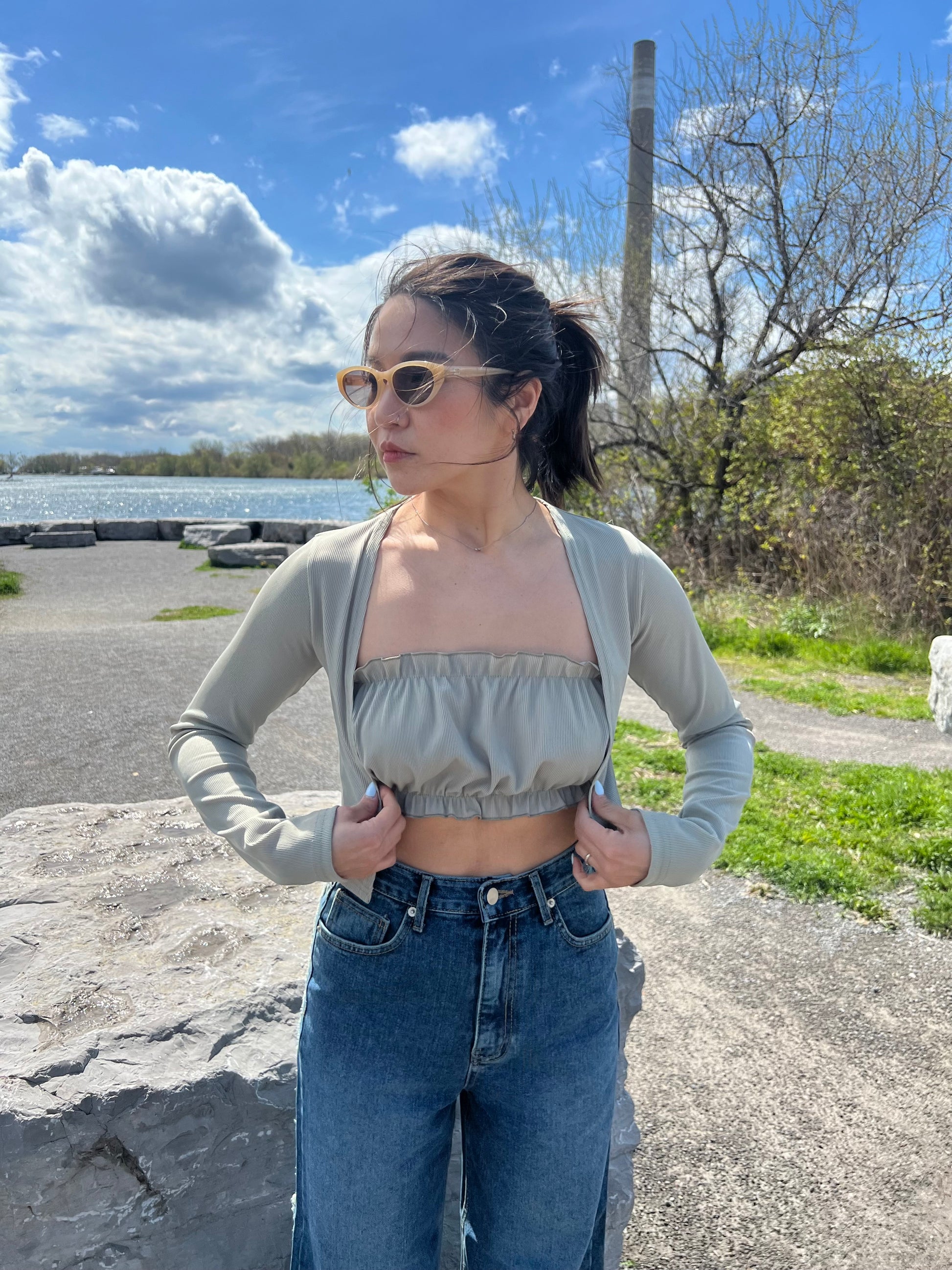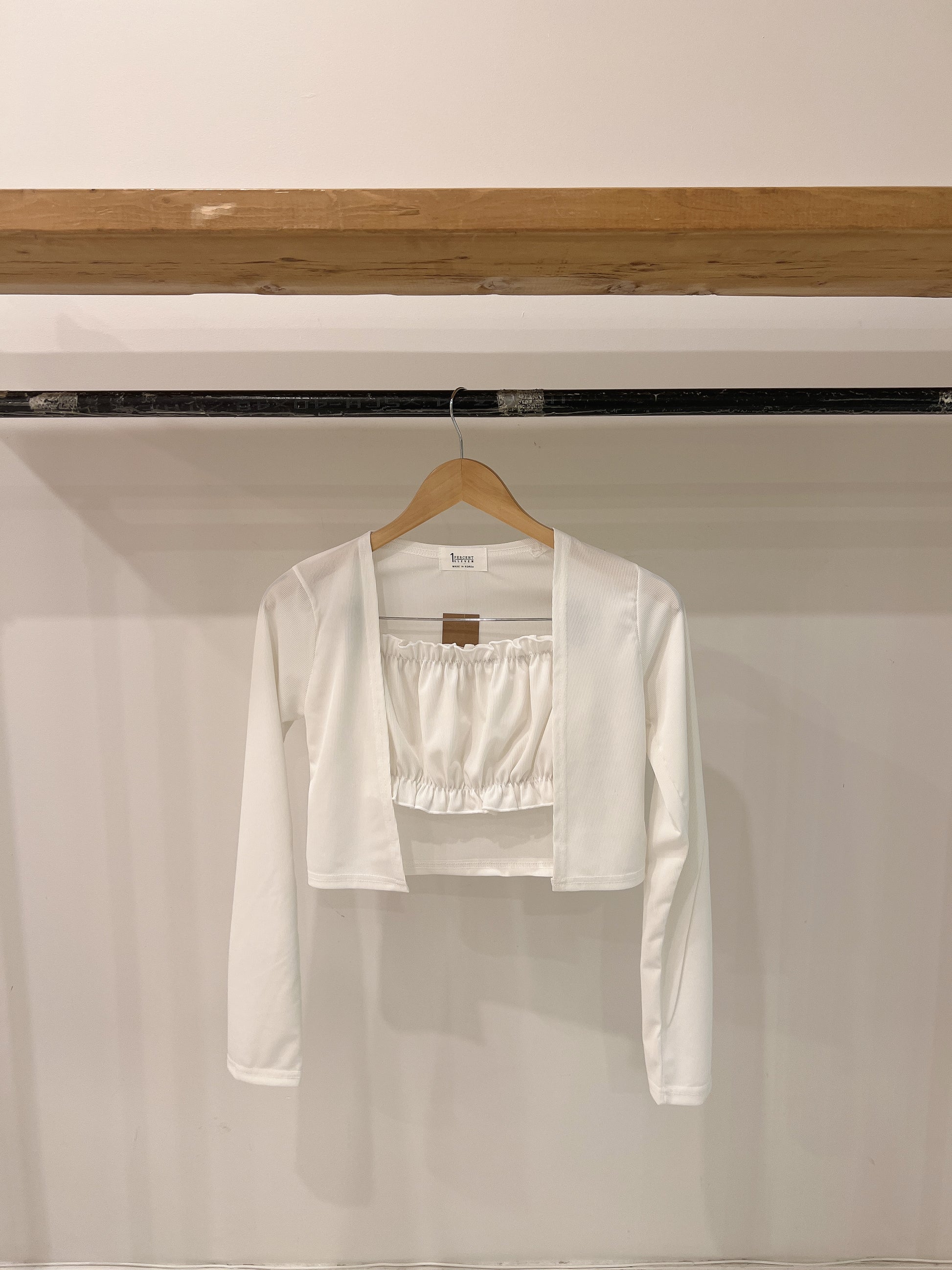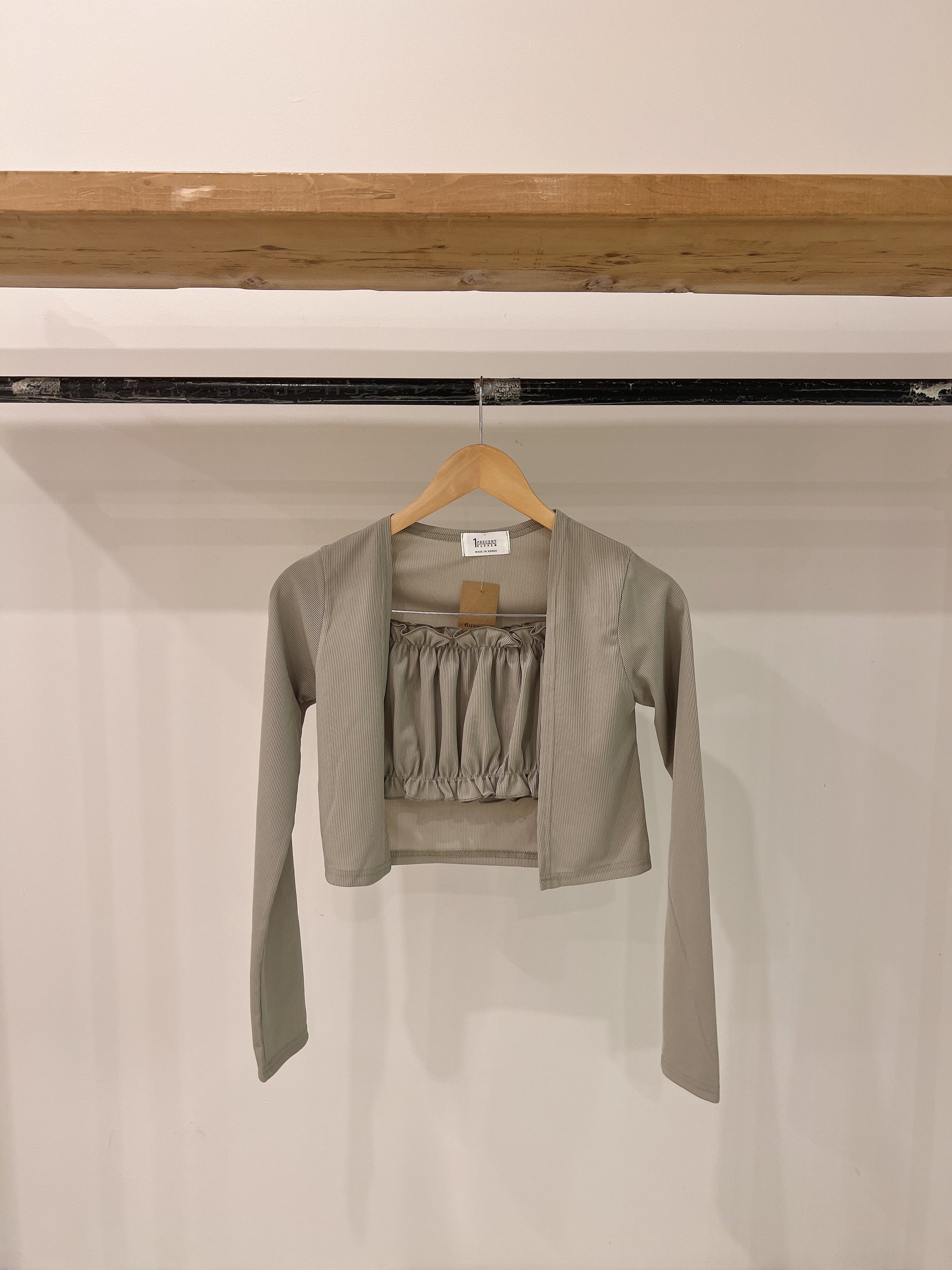 Introducing our adorable matching tube top set featuring a ribbed lettuce trip tube top and a matching fitted, long sleeve shrug. Now available in black, white, green, white.
