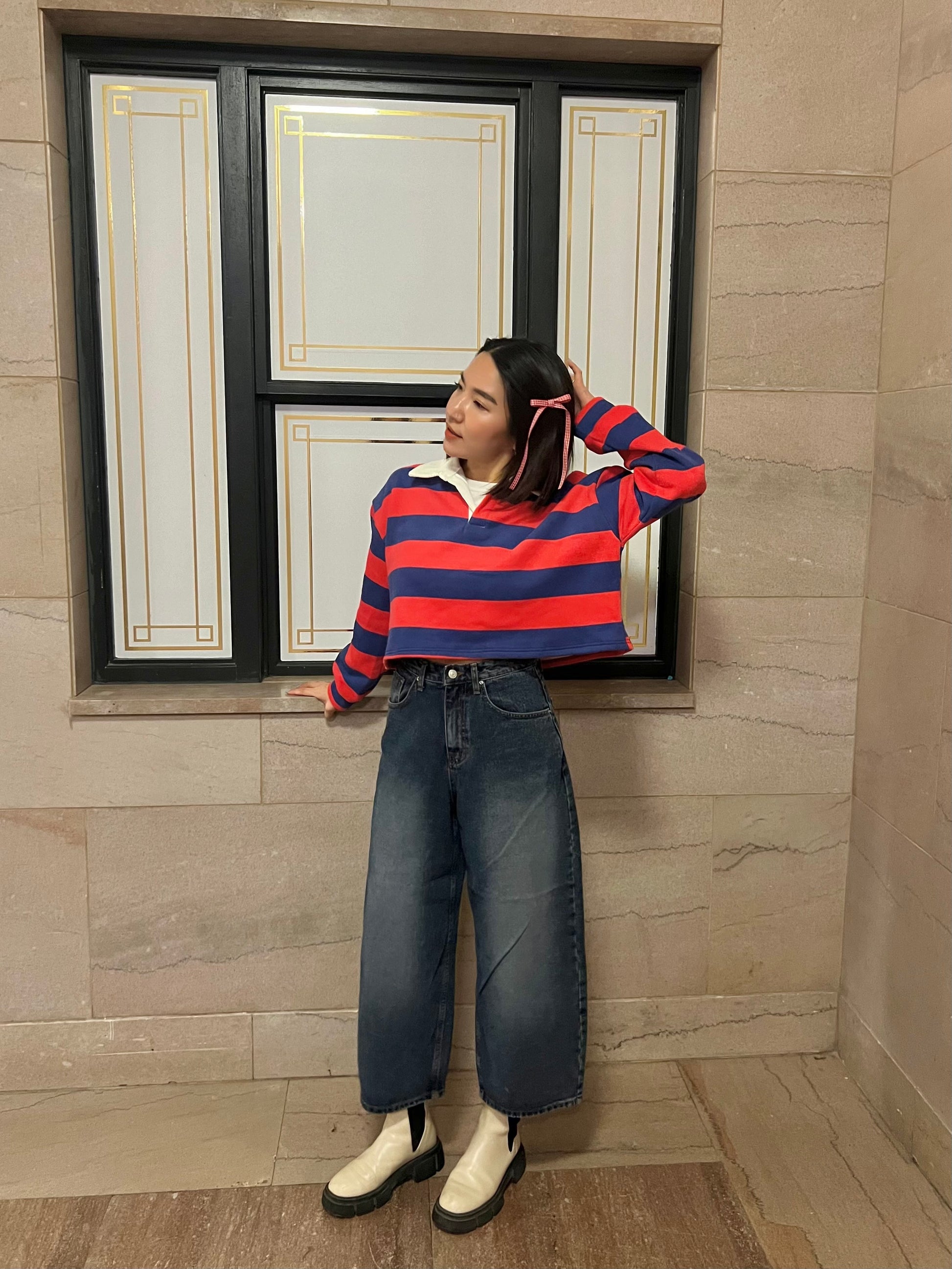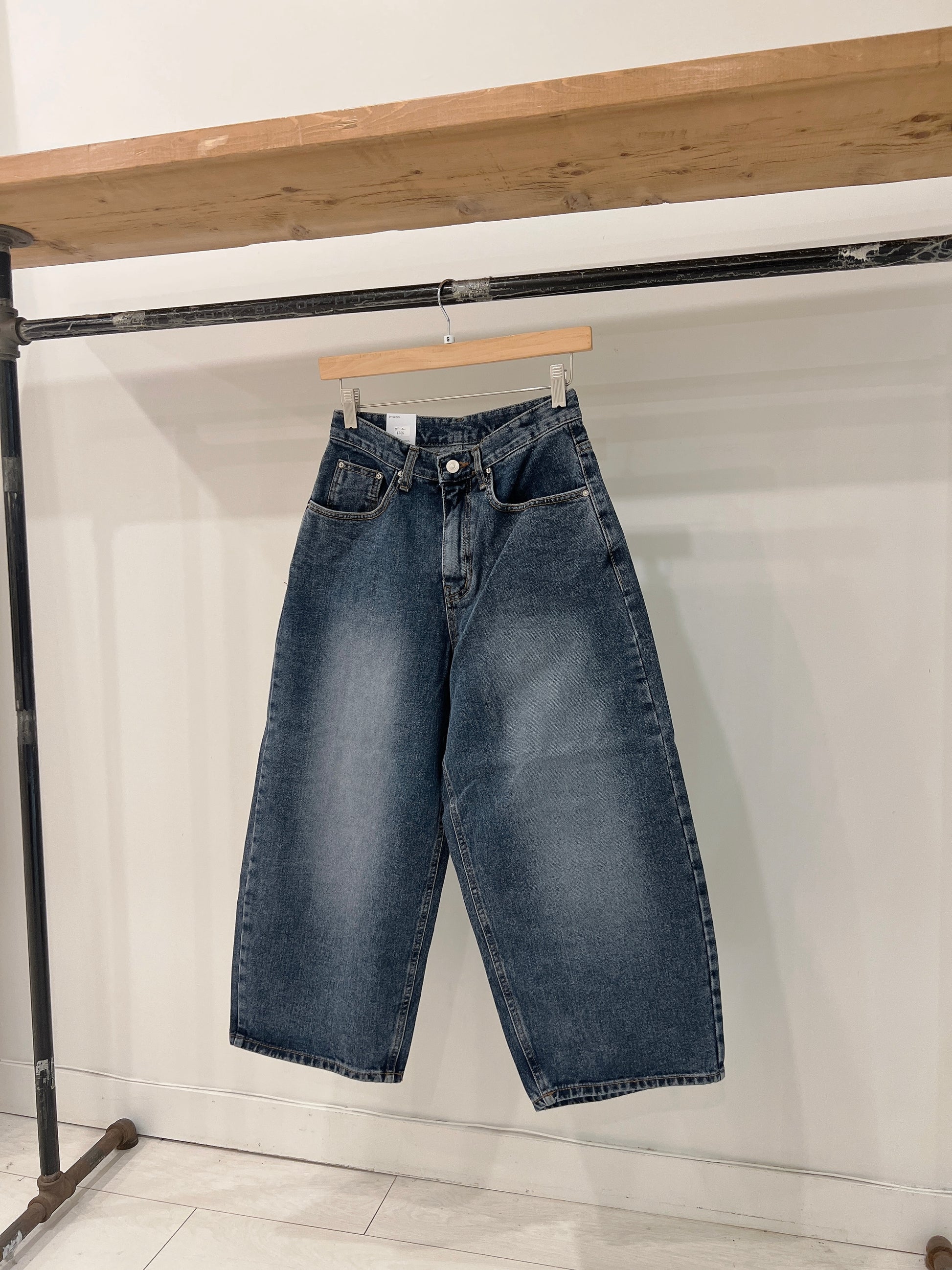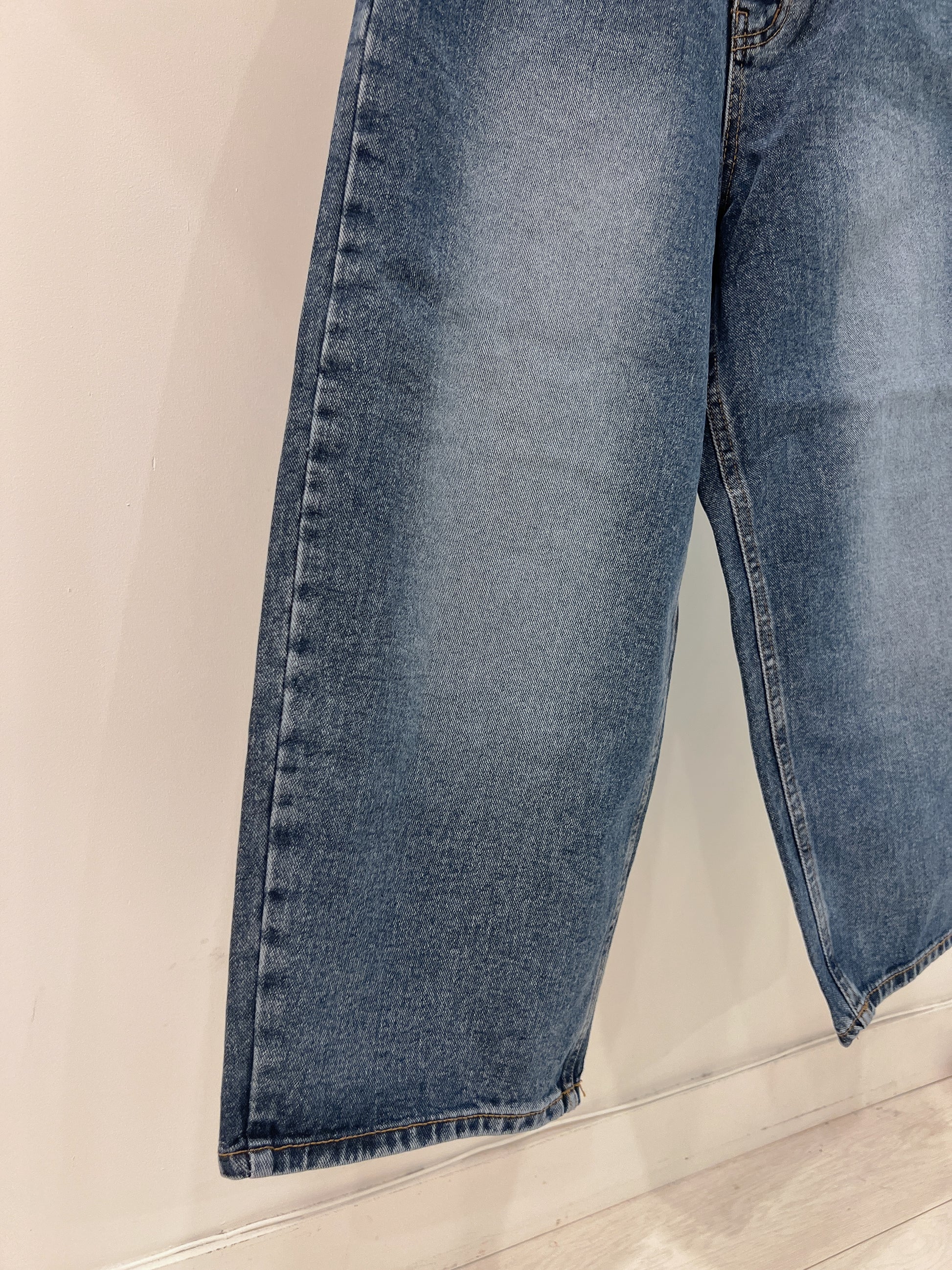 High-waisted wide leg cropped jeans in a classic medium wash, a perfect blend of comfort and style. Crafted from quality denim, these jeans offer a flattering silhouette and on-trend wide leg design. The high-waisted cut adds a touch of retro flair while providing a comfortable.