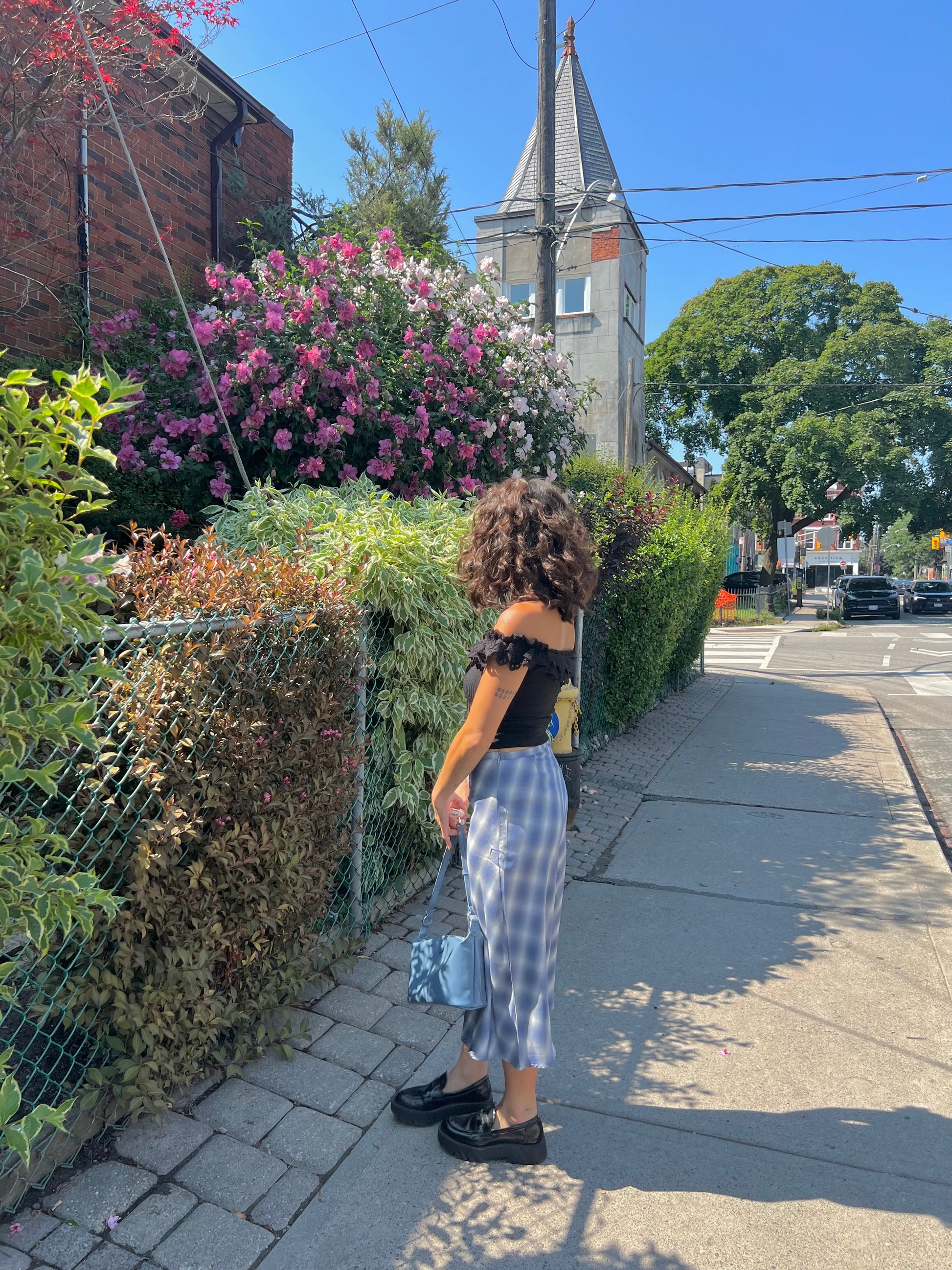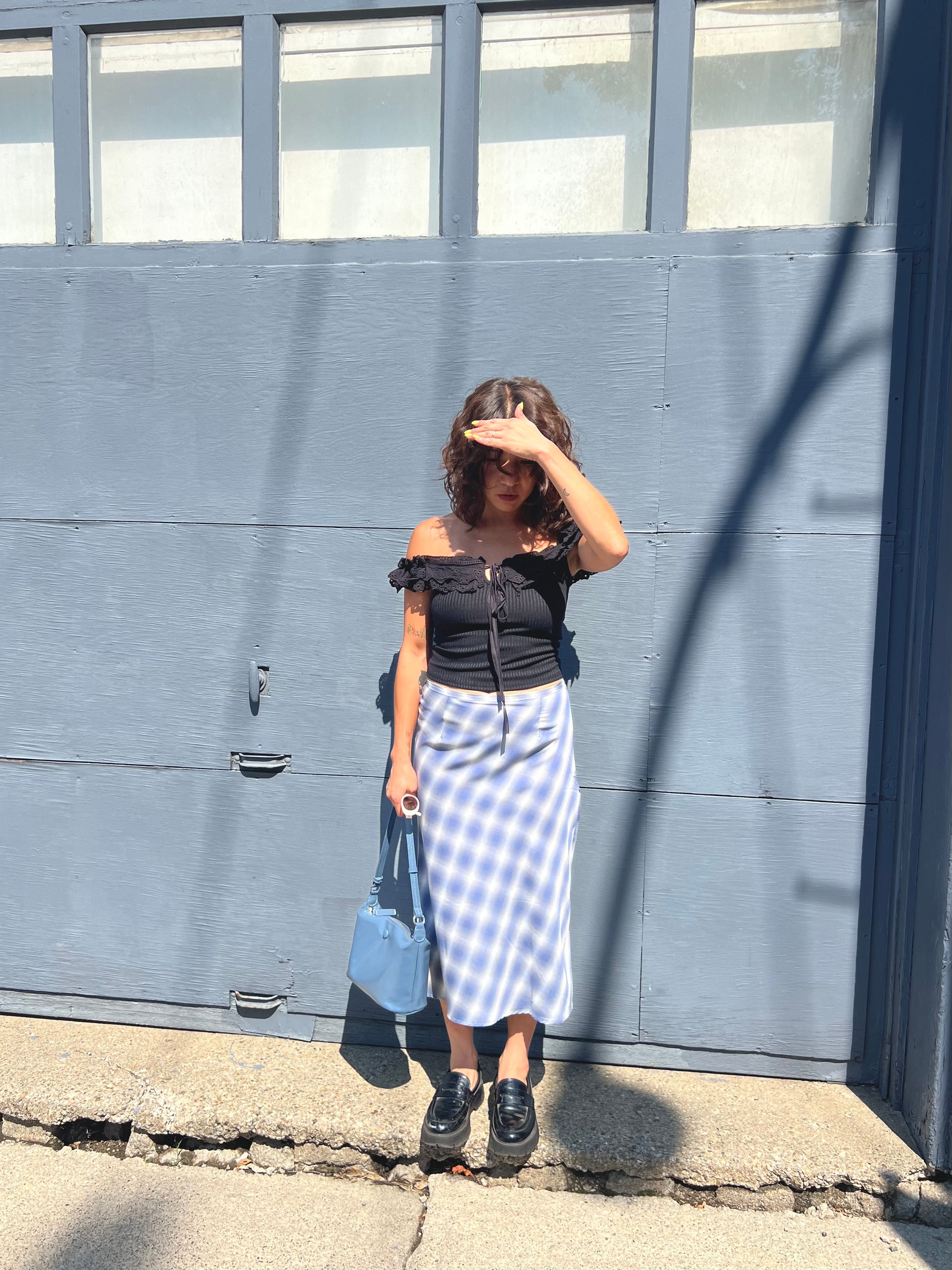 Our super cute and lightweight low-rise A-line midi skirt, with a fun plaid print and a discreet side zipper, is perfect for those sunny summer days when you want to feel extra girly and carefree!