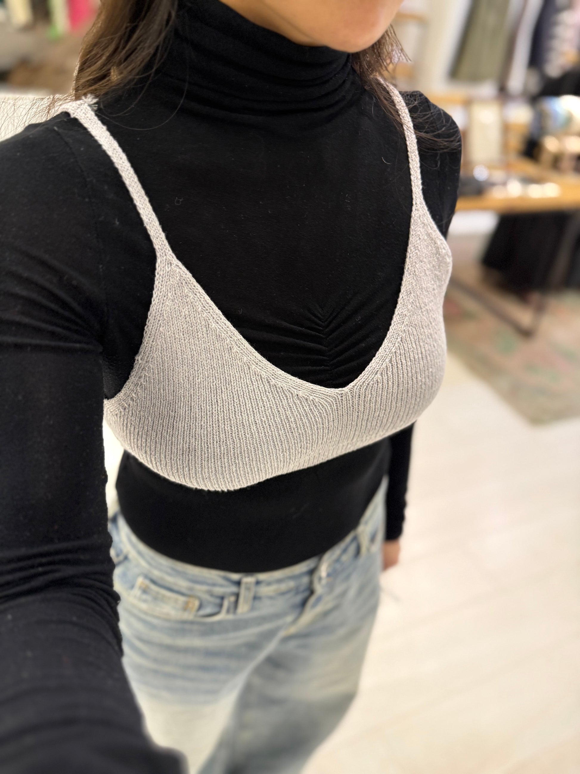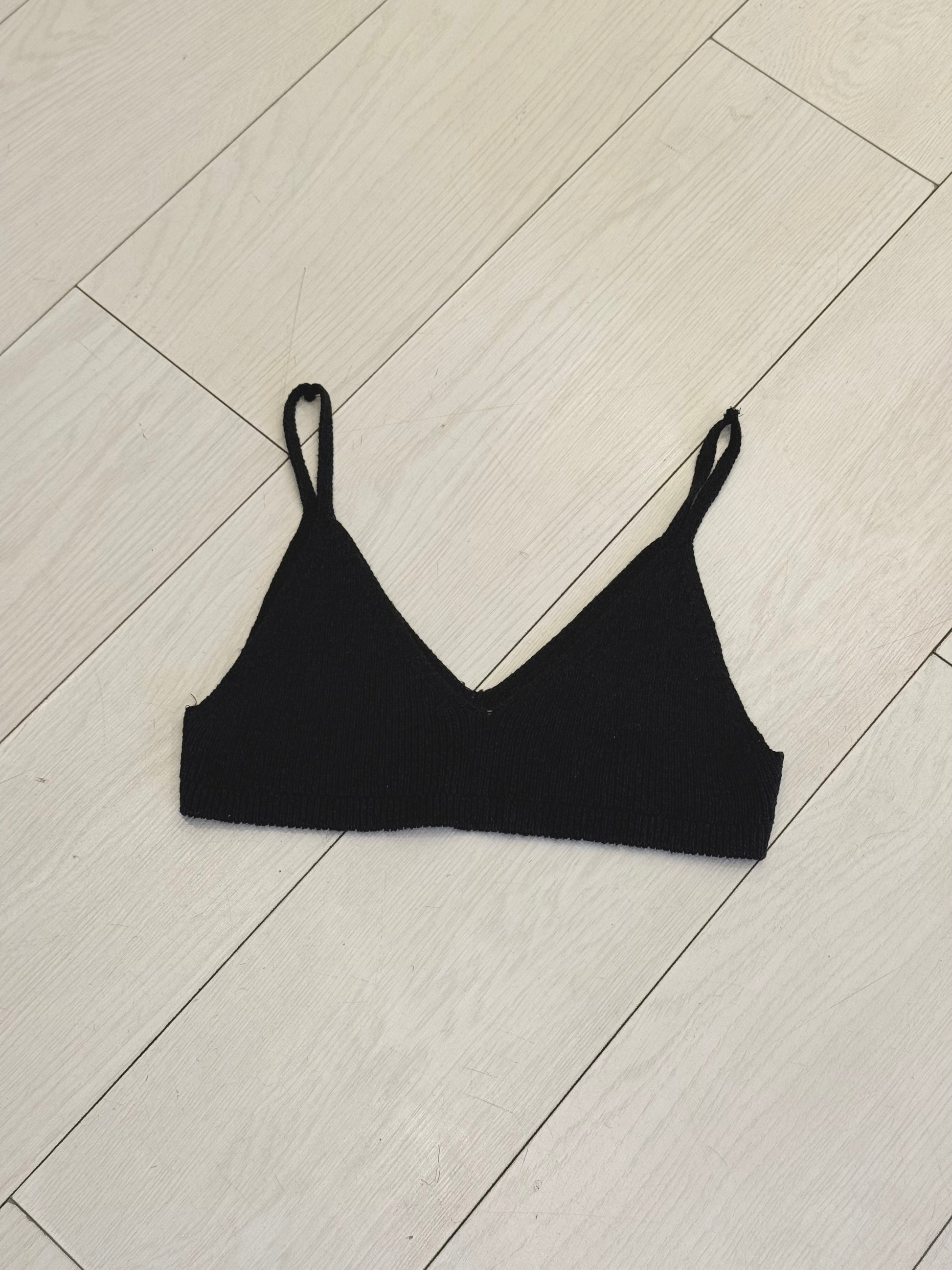 This one’s a layering essential you’ll keep reaching for. A knit bra top featuring an all-over knit, a flattering V-neckline, and thin knitted noodle straps, finished with a soft, easy fit.