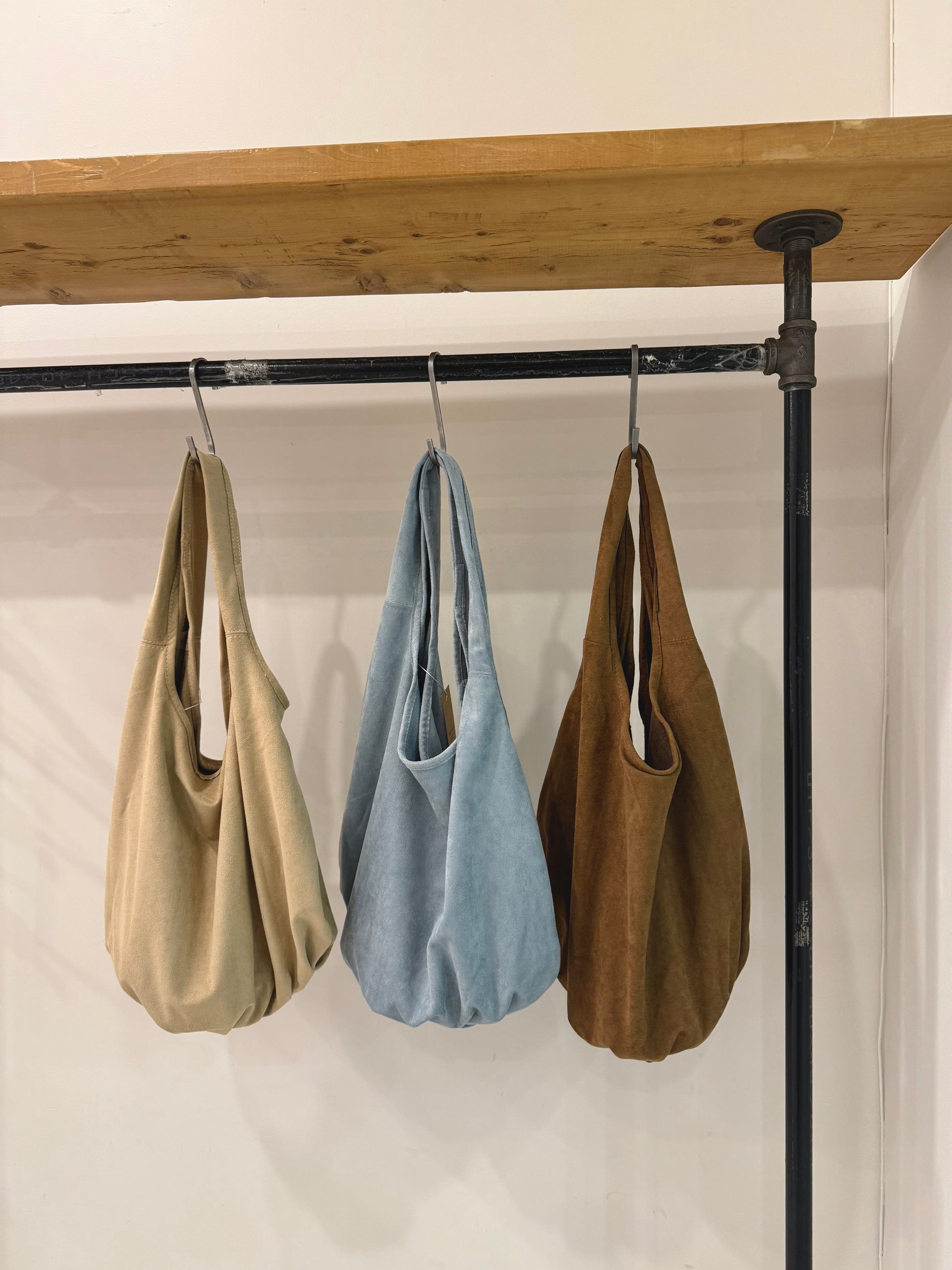 Soft, slouchy, and effortlessly chic — this faux suede tote is the definition of easy style. Designed with a ruched bottom stitch and thick, sturdy straps, it offers plenty of room for all your daily essentials. Available in blue, brown, and beige to match any mood or outfit.