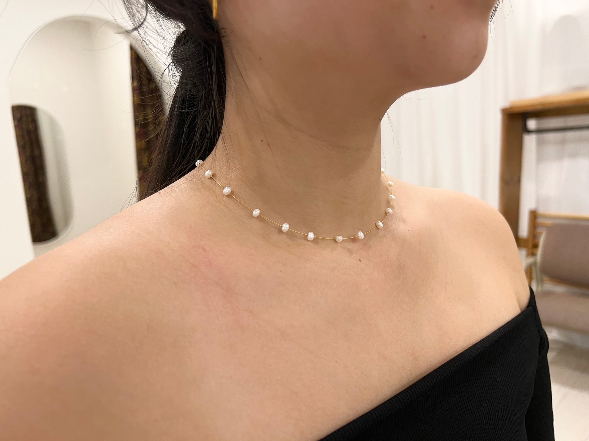 Dainty faux pearl necklace