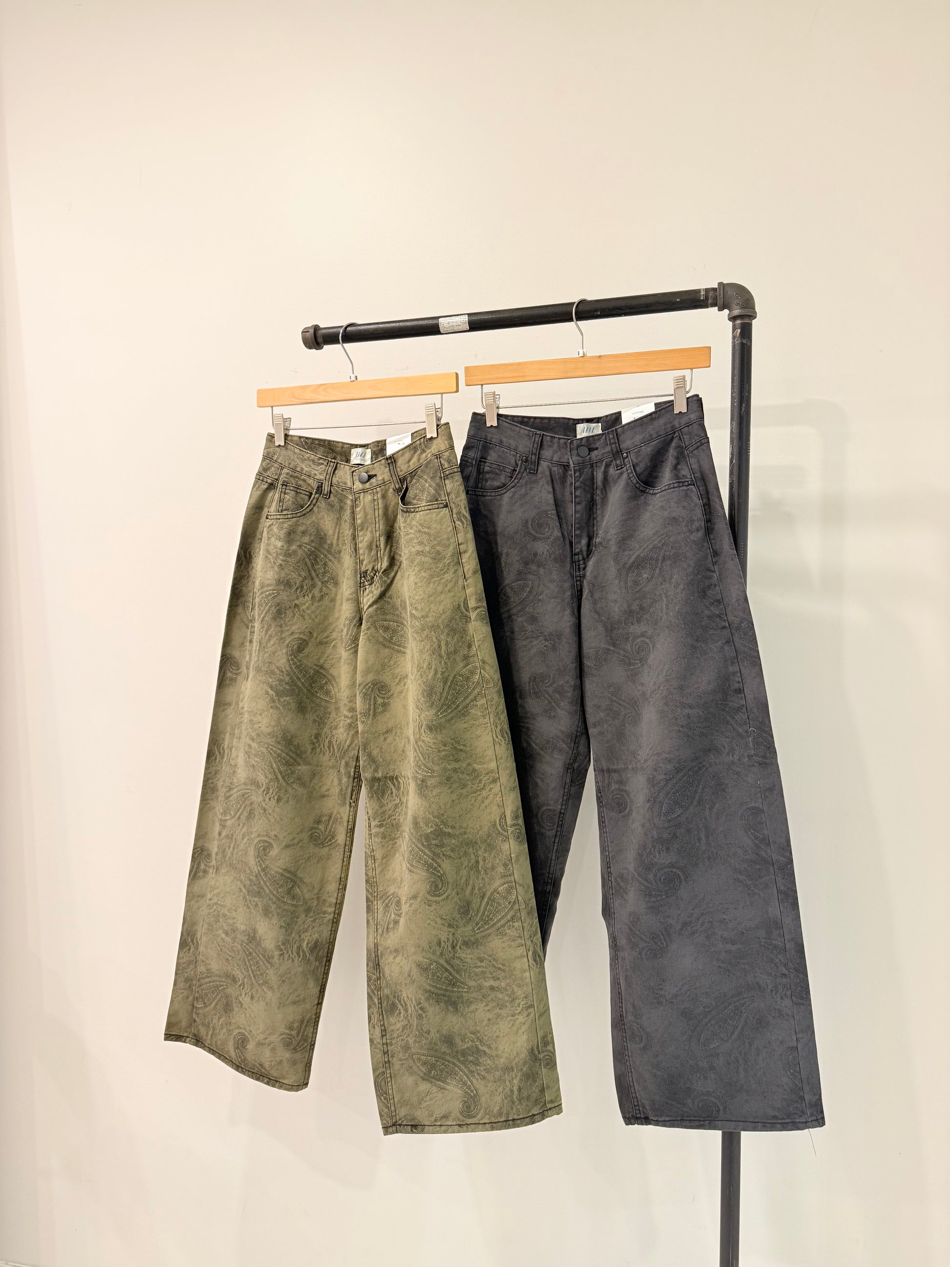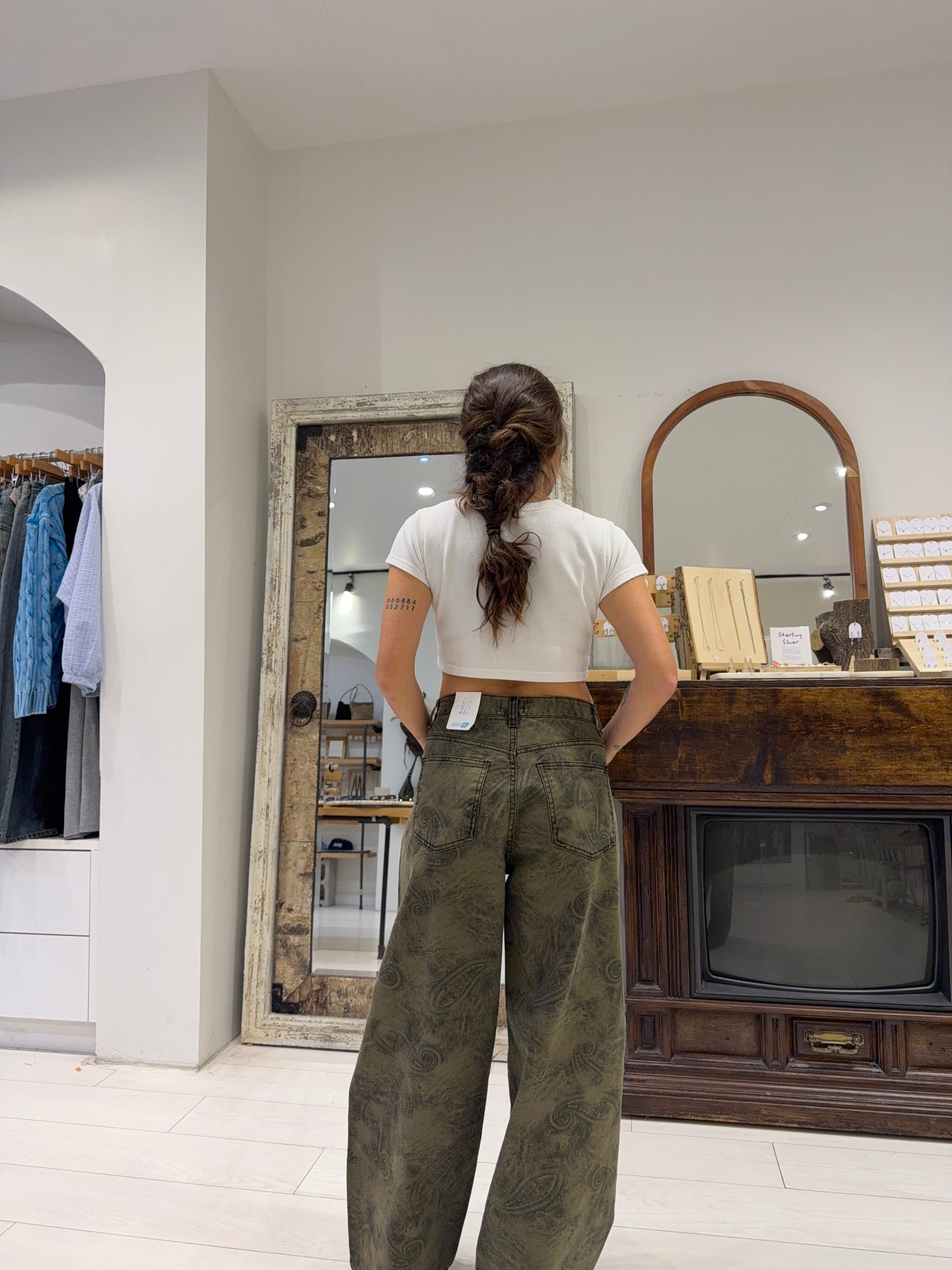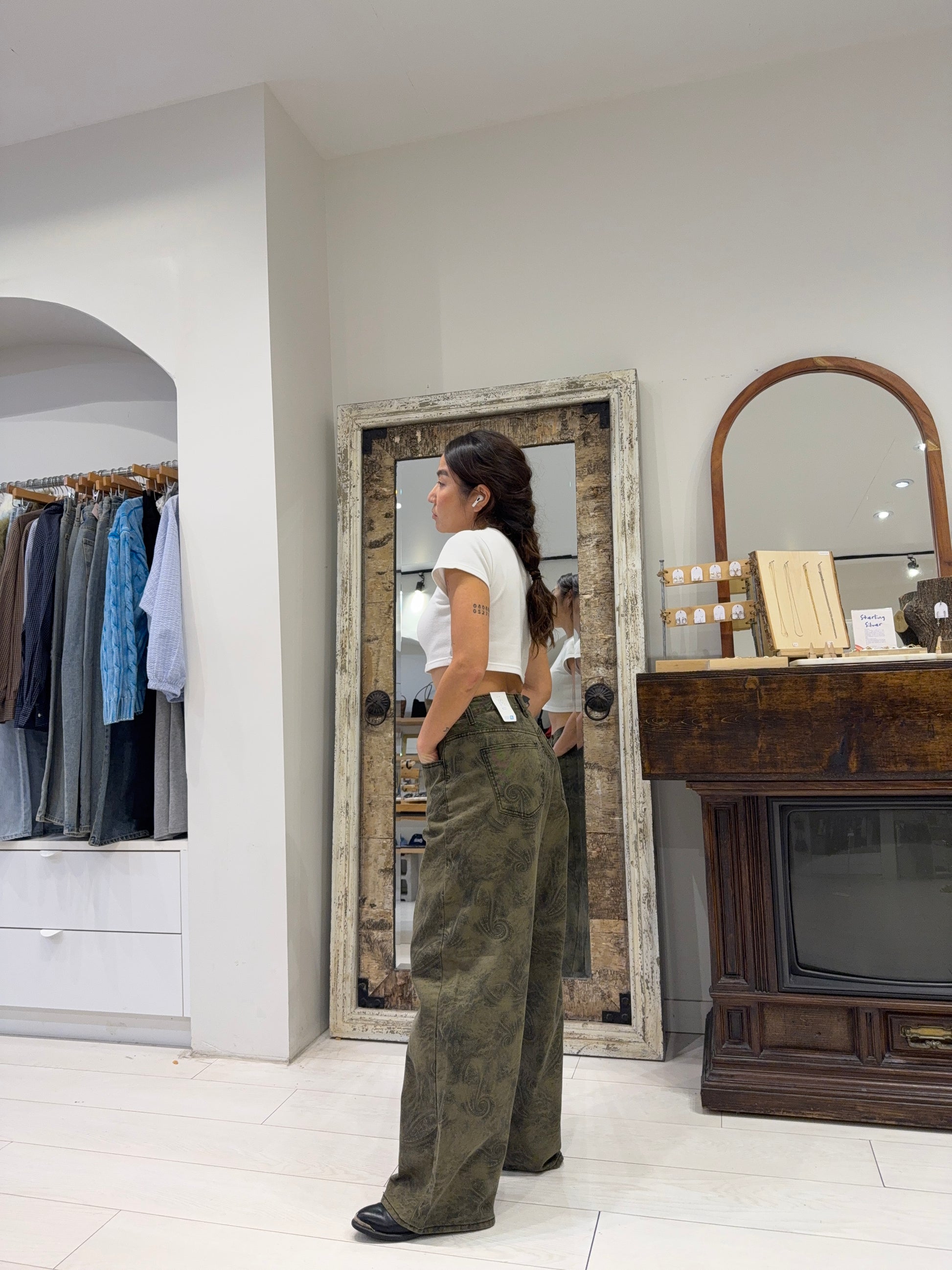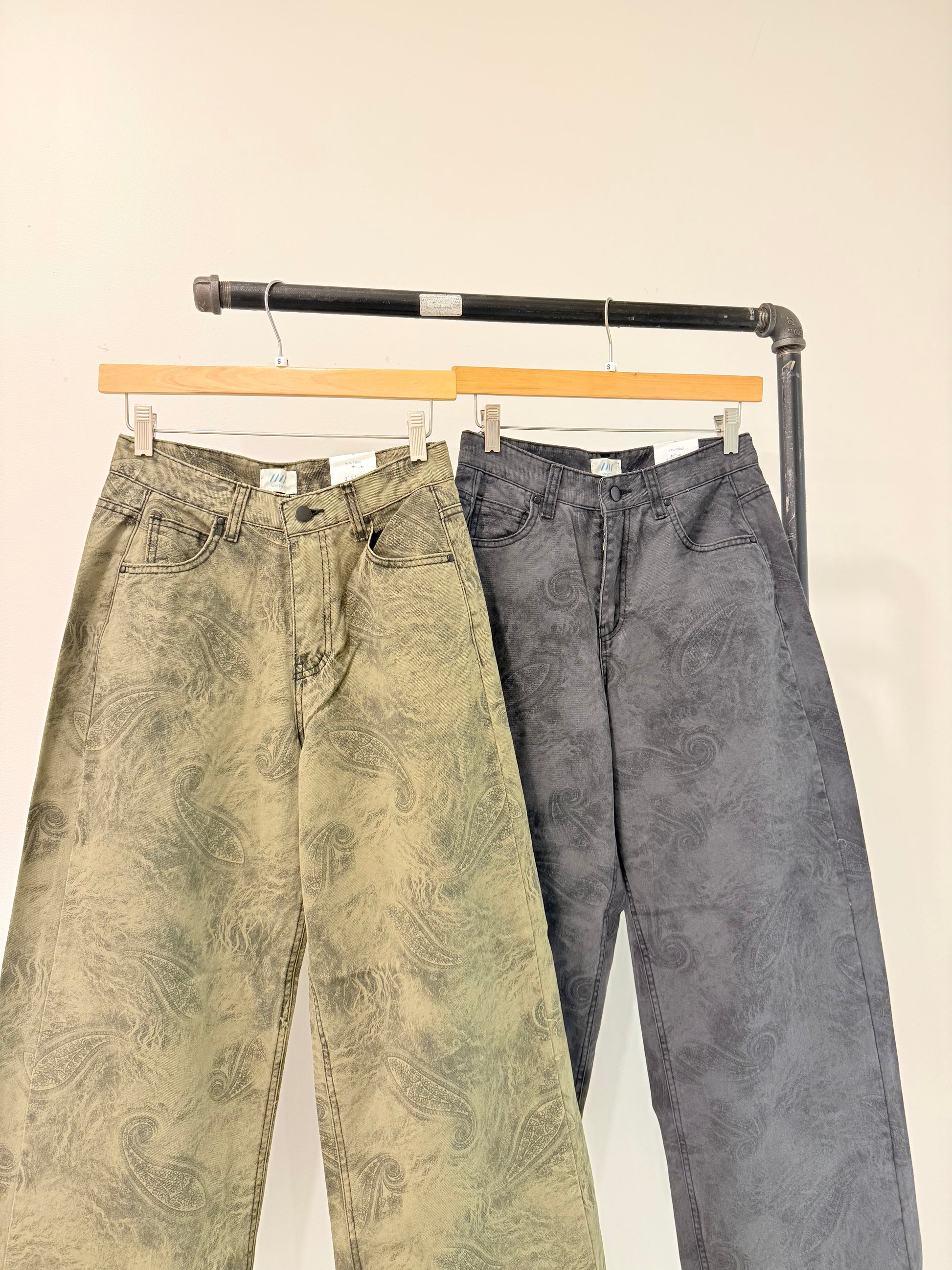 Prints to add the full fall feeling? Say less. Our Paisley-print jeans comes with a diagonal seam detail and a faded, rugged finish that gives them a worn-in charm. Designed in a gorgeous earthy green wash, they feature a mid-rise waist and a relaxed, baggy fit for that effortless vintage-inspired edge.