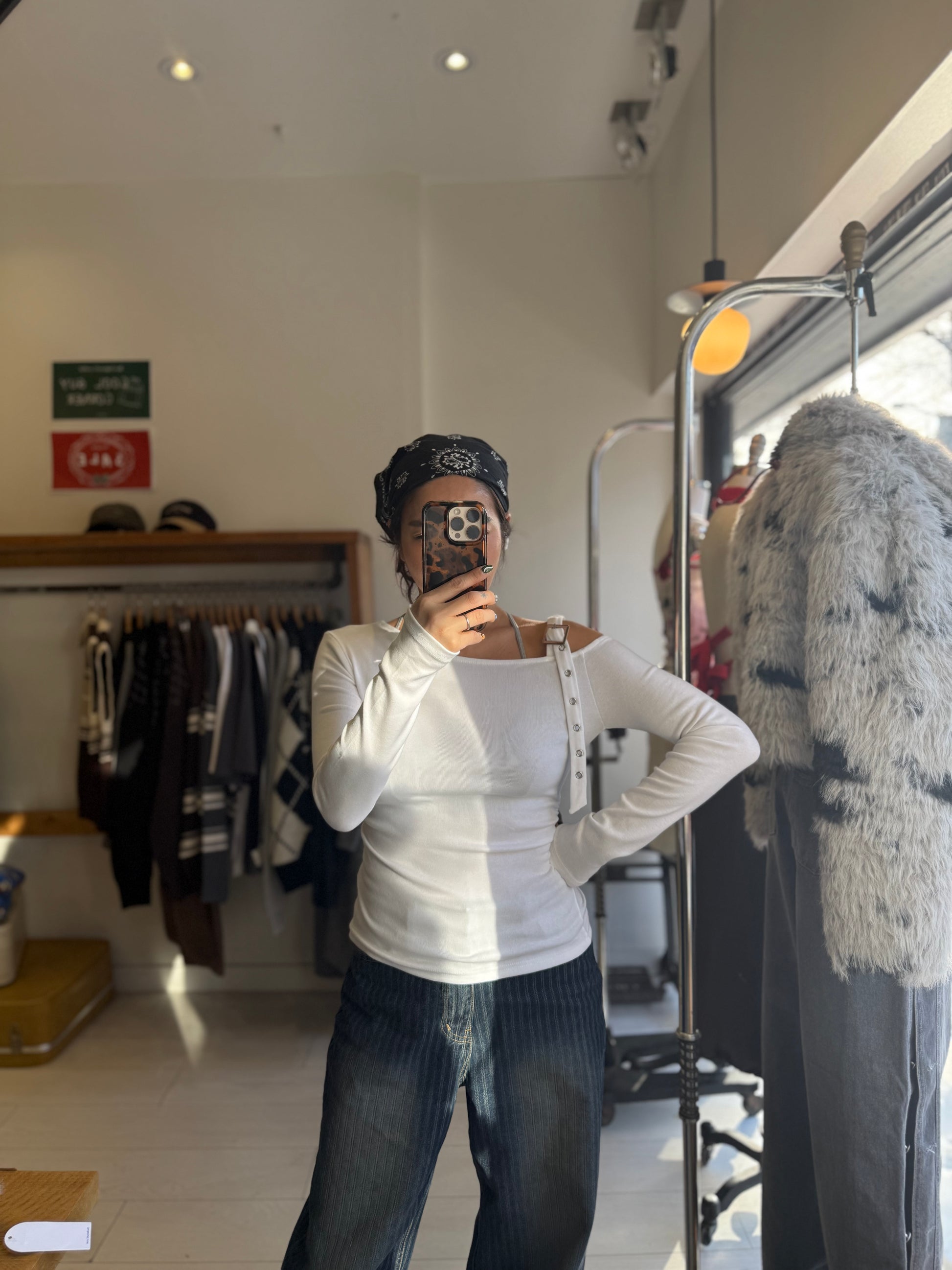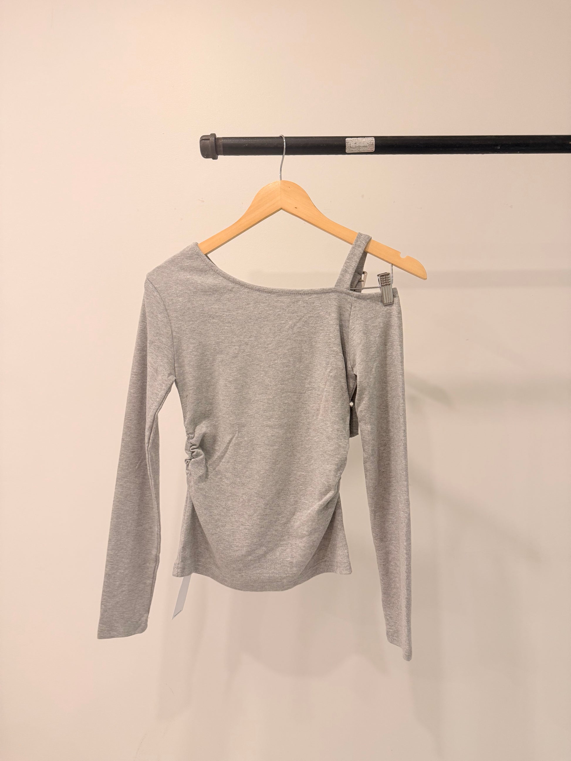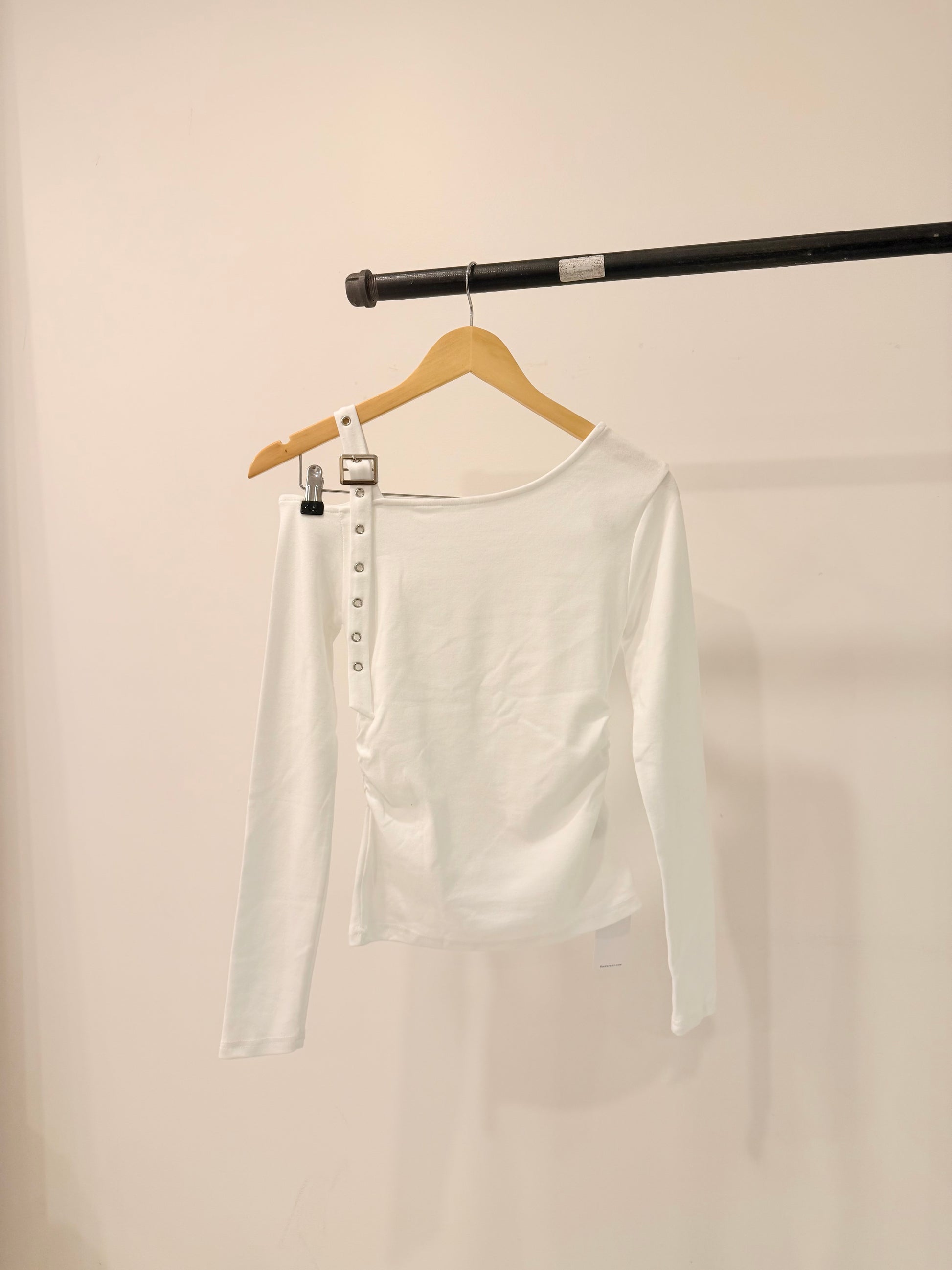 We love an intentional asymmetry moment and a plunging off-the-shoulder neckline! The belted strap detail is just the cherry on top. Introducing our ultimate cool-girl top—so alt and undeniably cute.