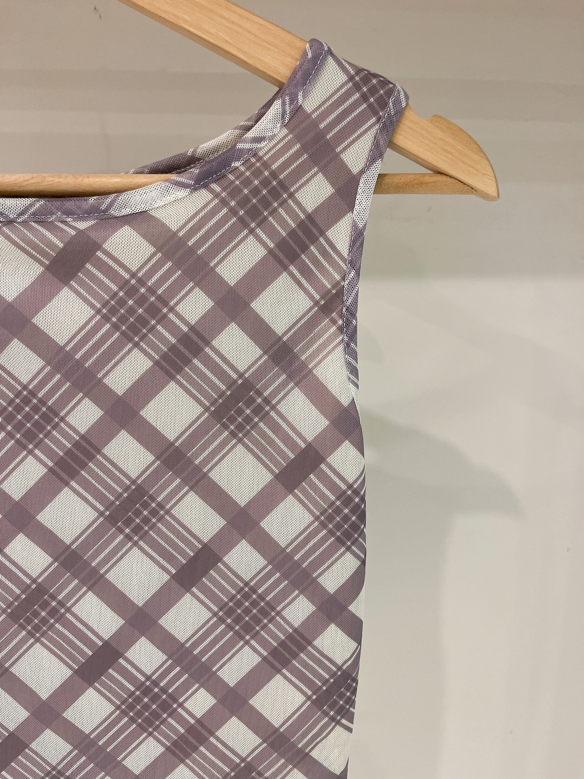 RAUL Plaid printed mesh top
