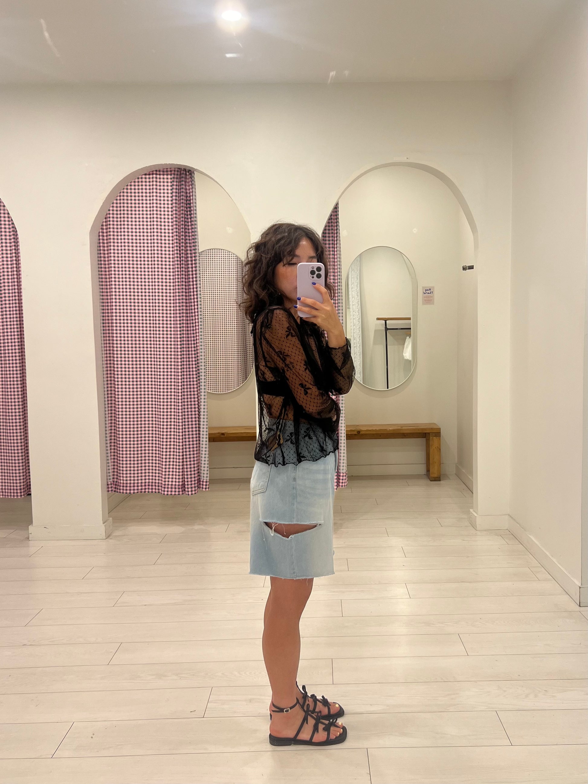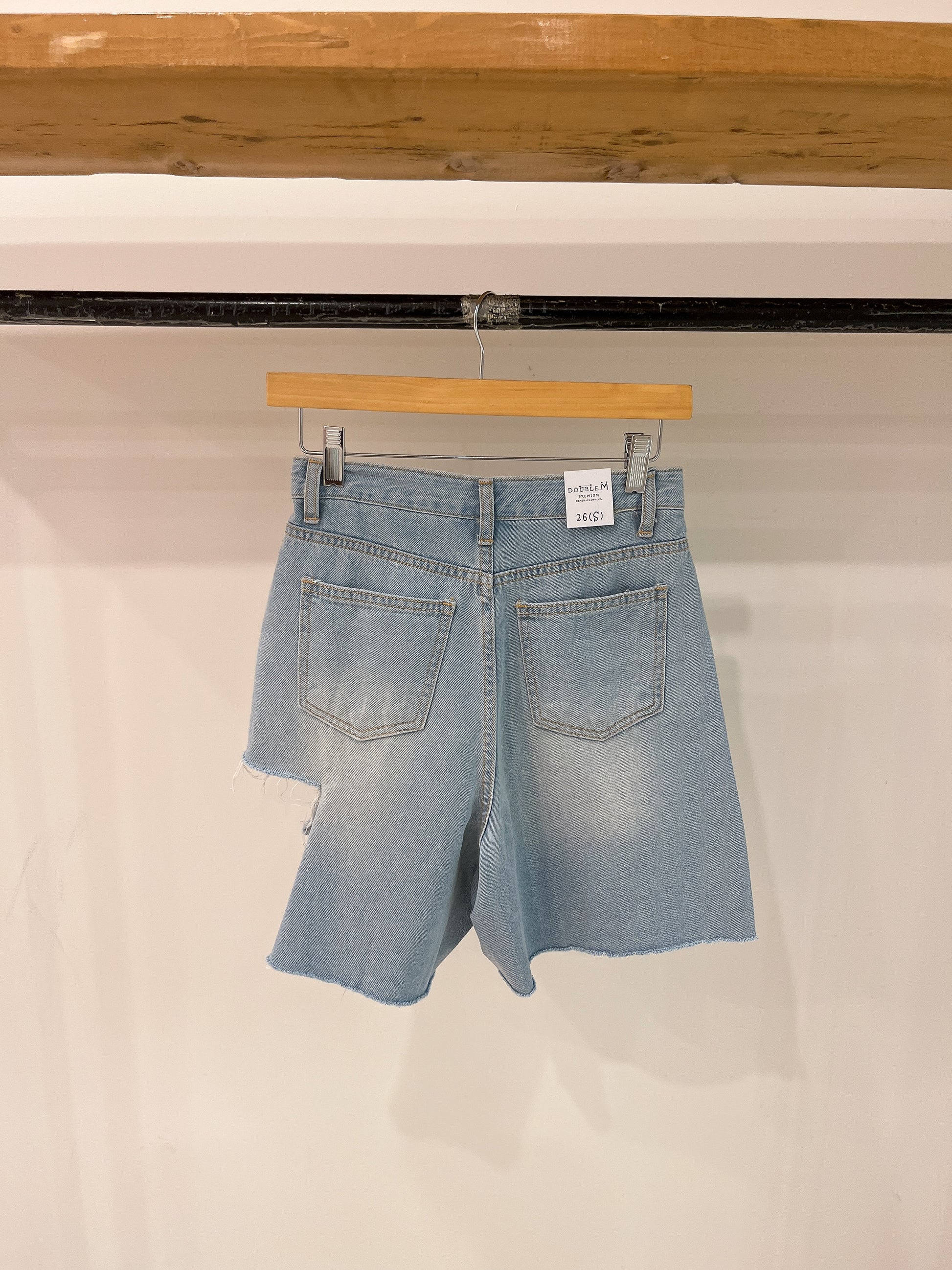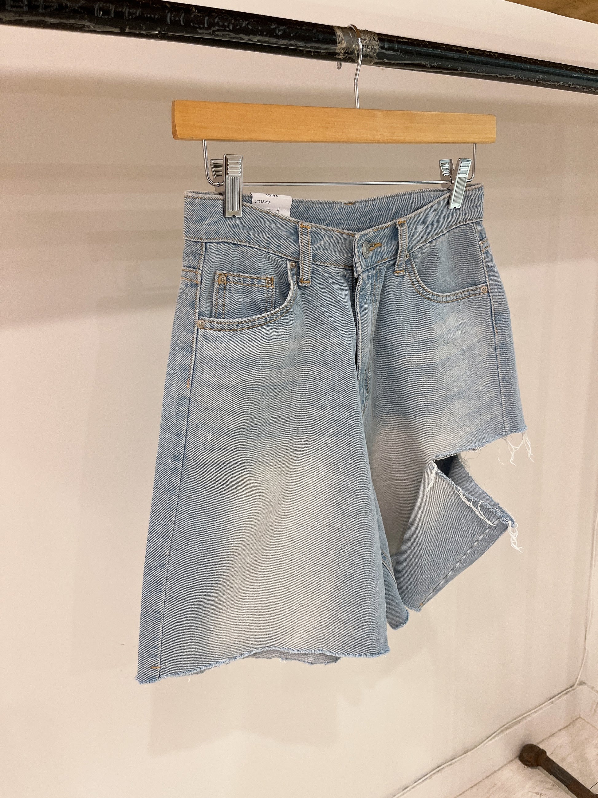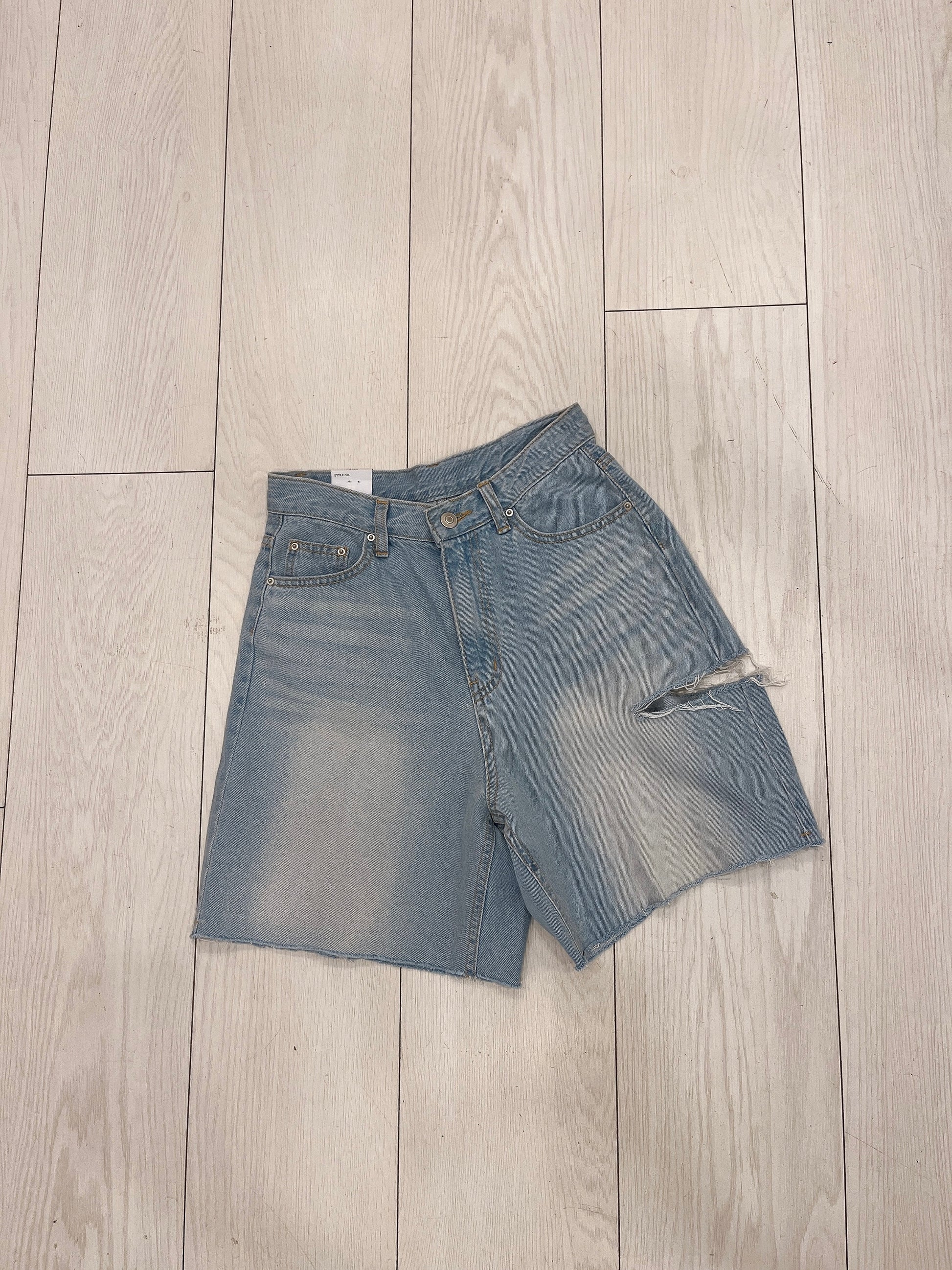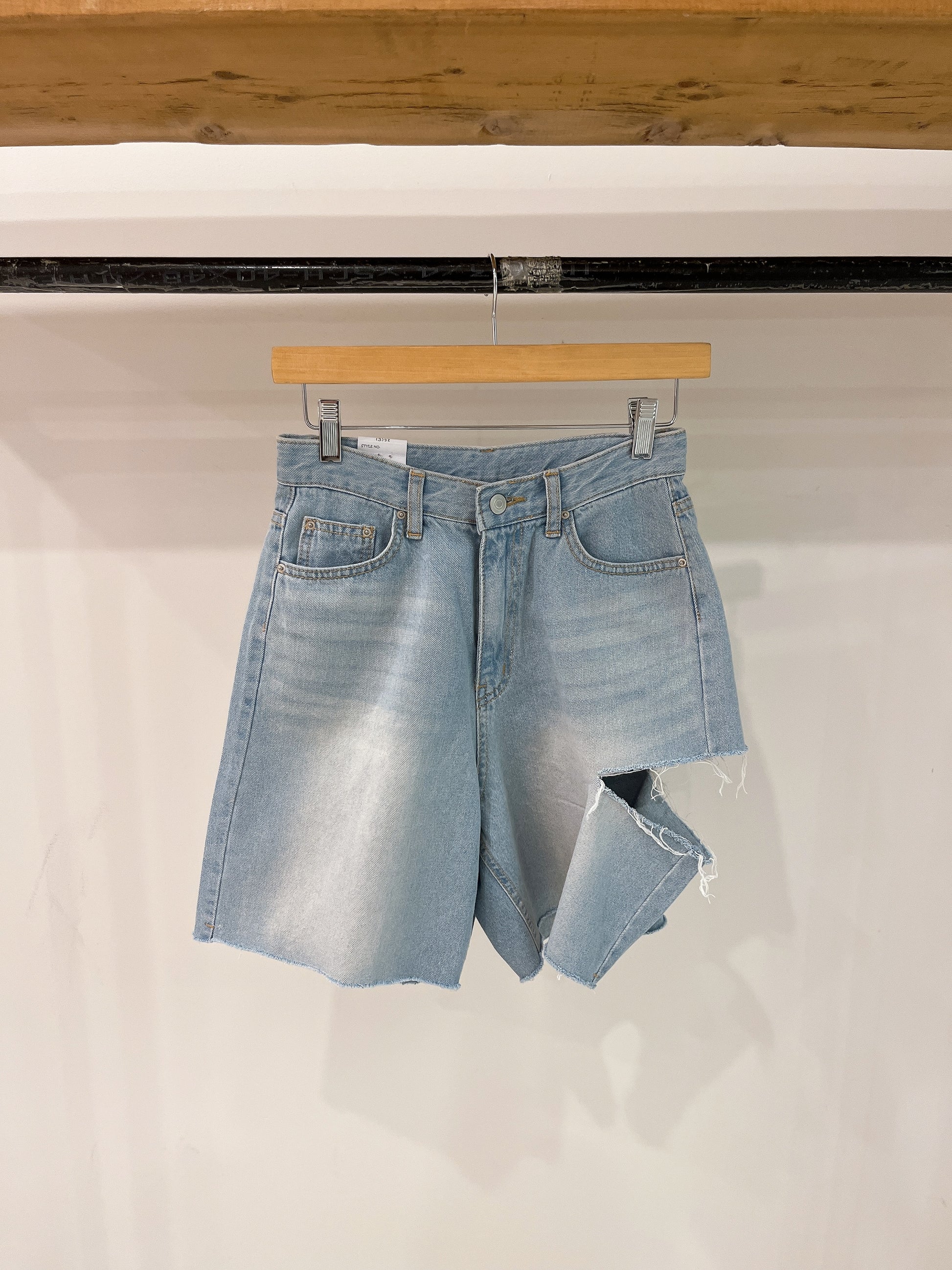 Take on the summer heat in our super comfy, yet chic light wash, high-waisted denim shorts featuring a side slit for a ripped look and a frayed hem.