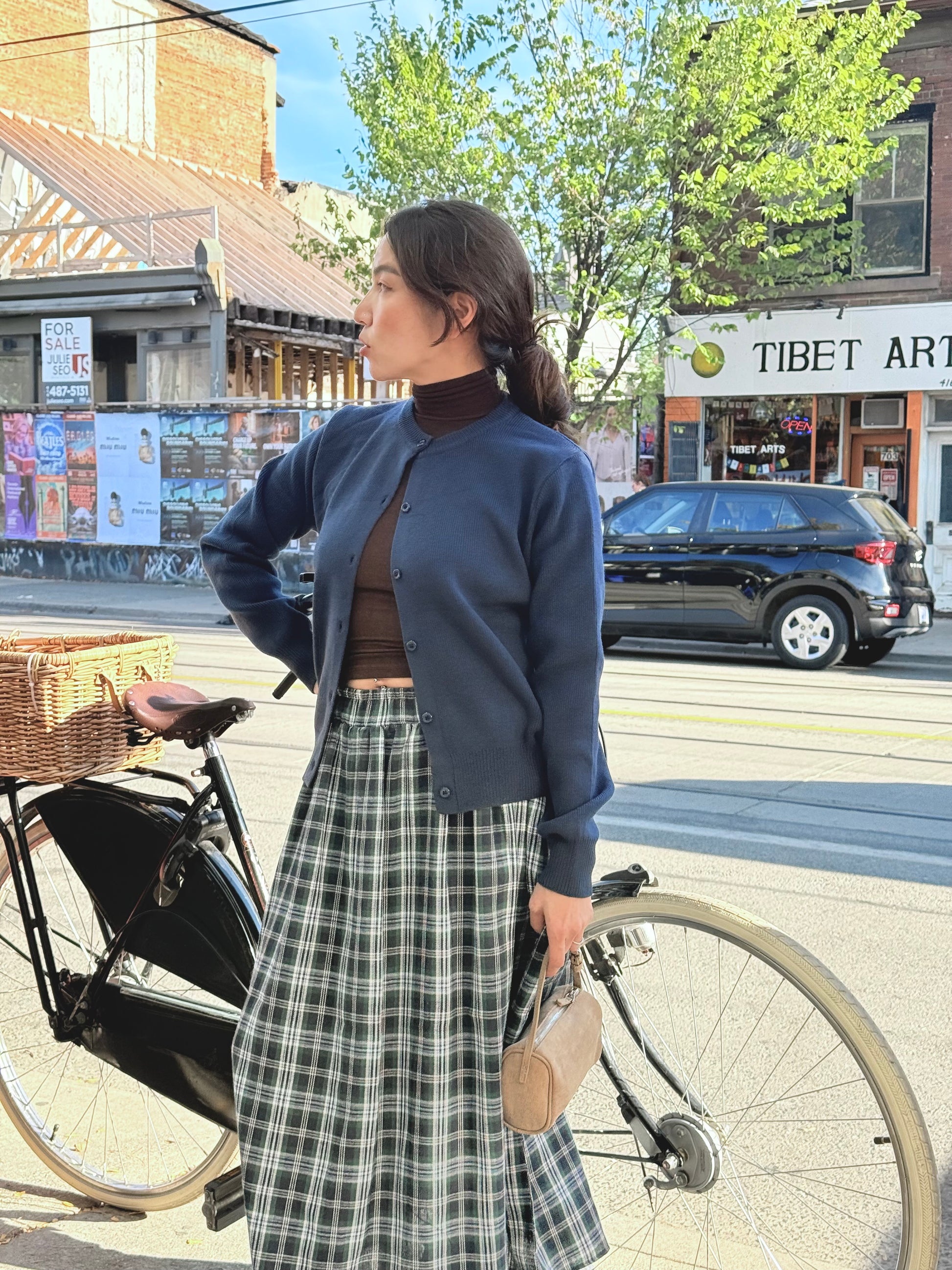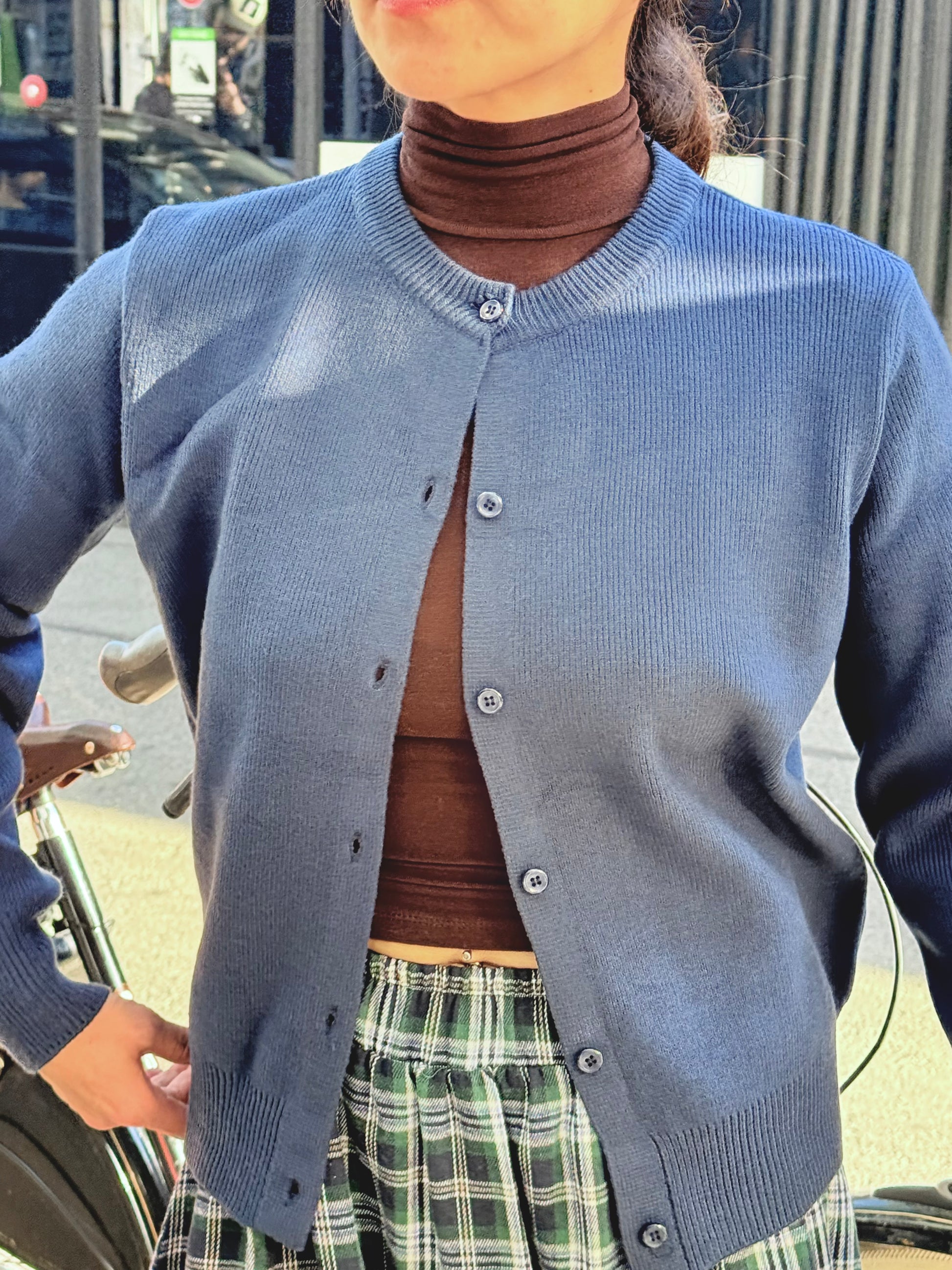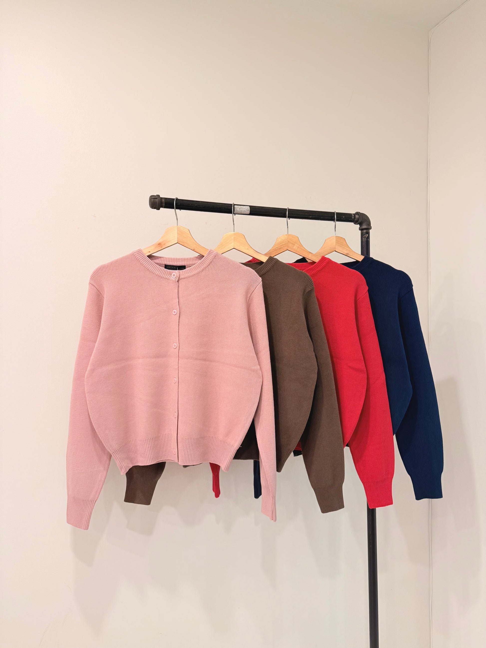 Cozy and lightweight, this knit cardigan features a classic round neckline, button-up front, and ribbed detailing at the neckline, hem, and cuffs. A polished, simple-yet-sweet wardrobe staple that’s perfect for layering or wearing on its own.