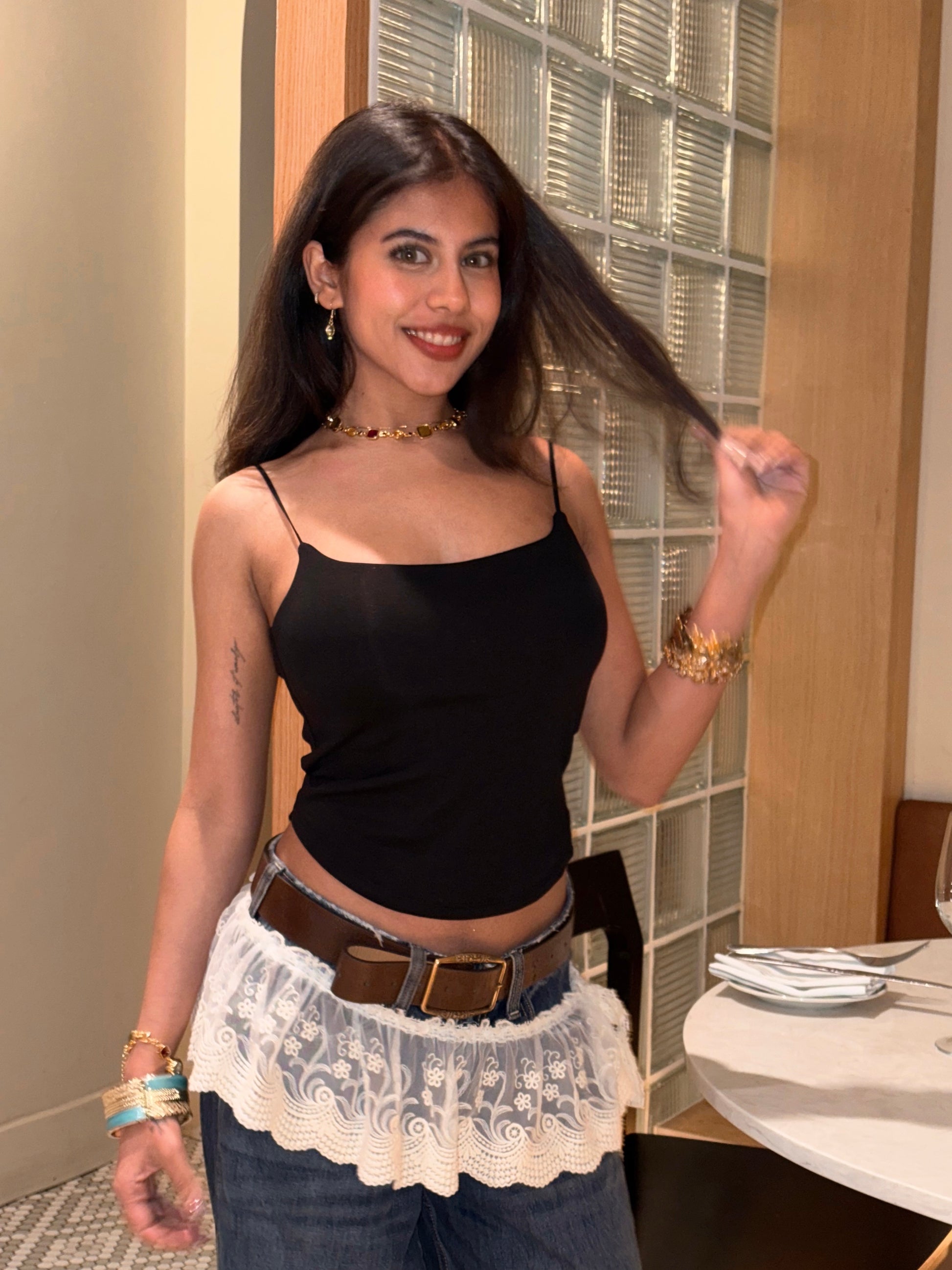 The regular-length body provides full coverage through the torso, while the rounded hemline adds a feminine, rhythmic flow to your daily fits! Now available in pink, black, white and grey.