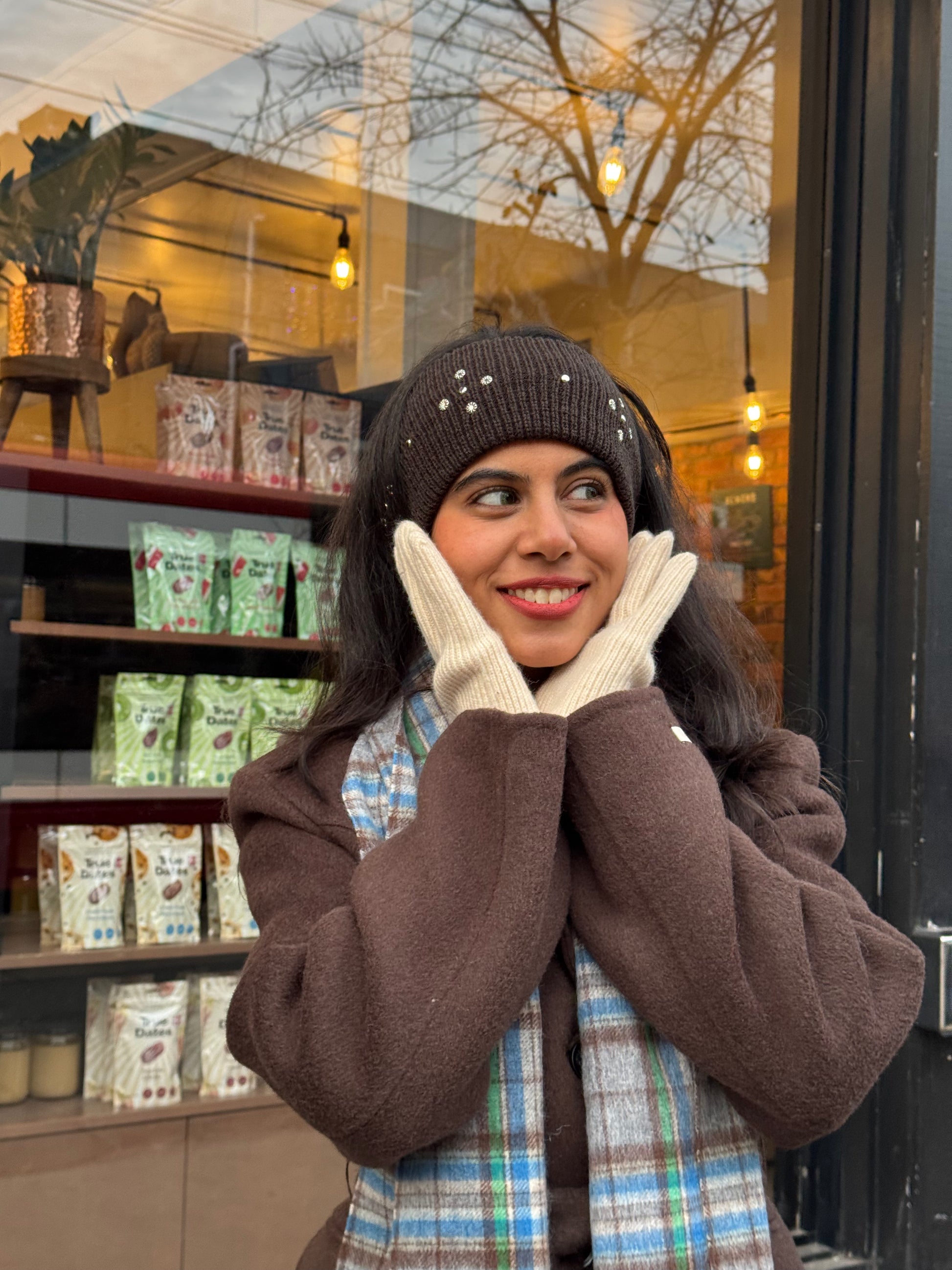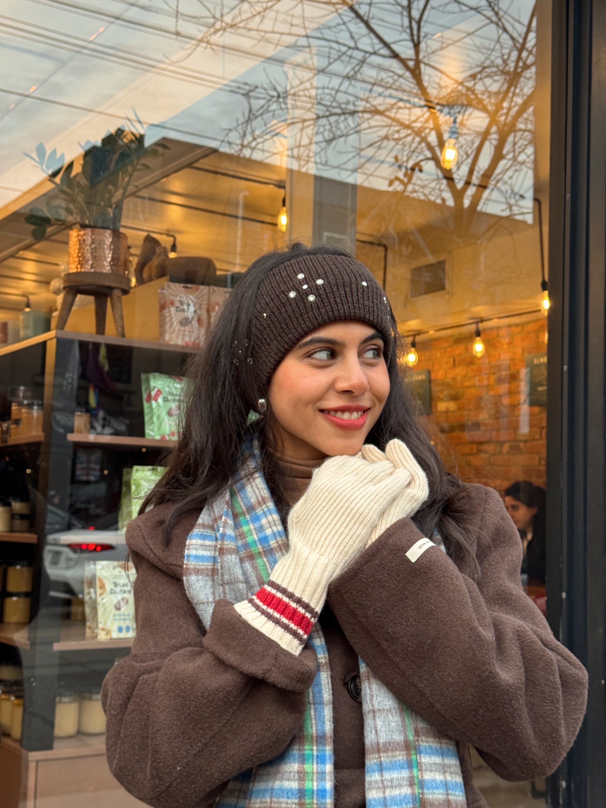These wool gloves with a striped lining combine warmth and style seamlessly! Crafted from soft, insulating wool, they feature a chic striped cuff lining for a subtle pop of detail.