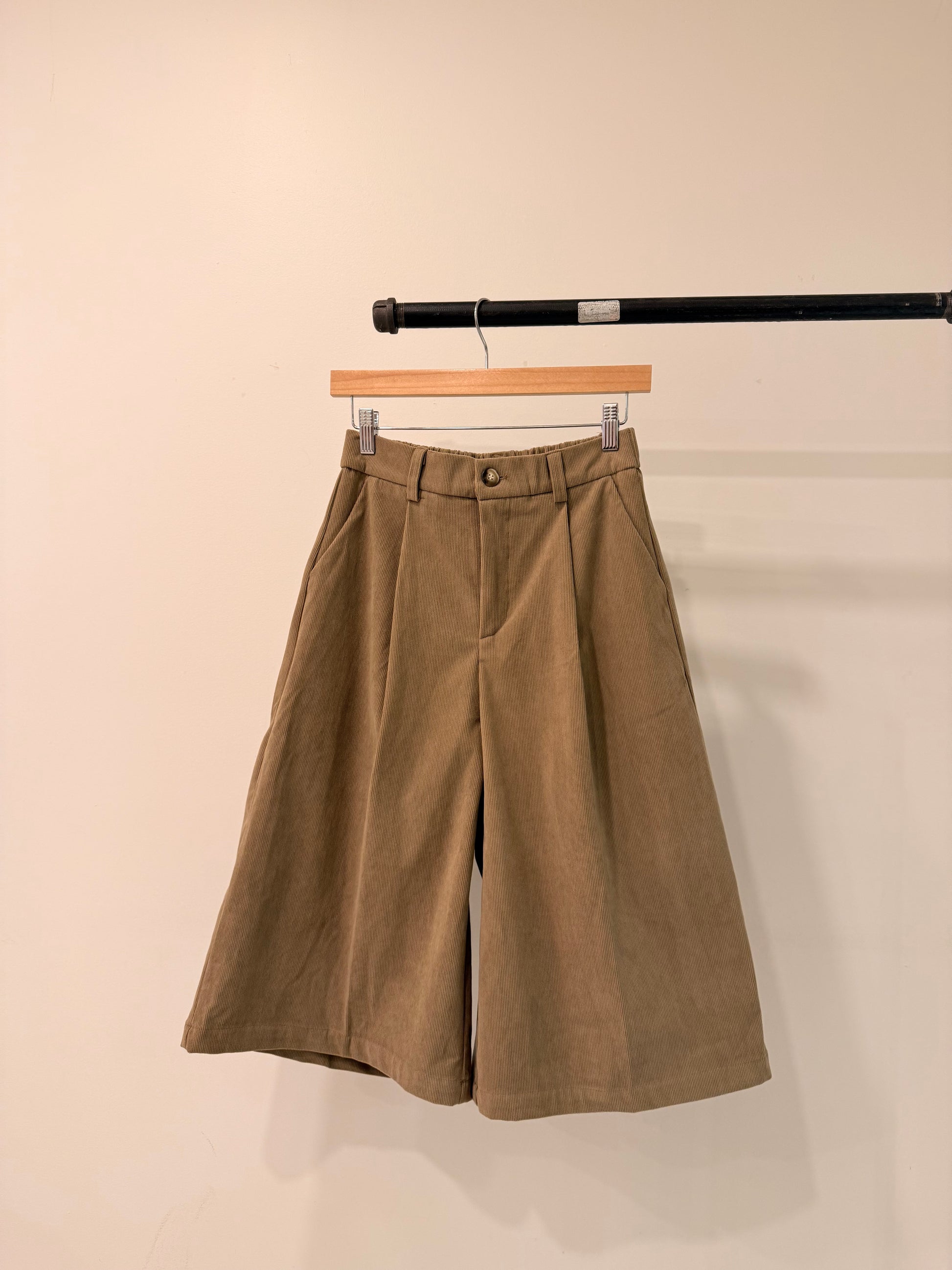 Tailored with an effortless cool-girl ease, these corduroy Bermuda shorts bring structure and softness into one sleek silhouette. Designed with belt loops, side-slash pockets, a discreet front zipper, and a secure button closure, and a wide-legged fit, they balance clean lines with everyday practicality. The high-rise fit and lightly elasticated waistband add comfort without losing shape. A refined take on a casual staple. Available in Charcoal, Tan and Dark Brown