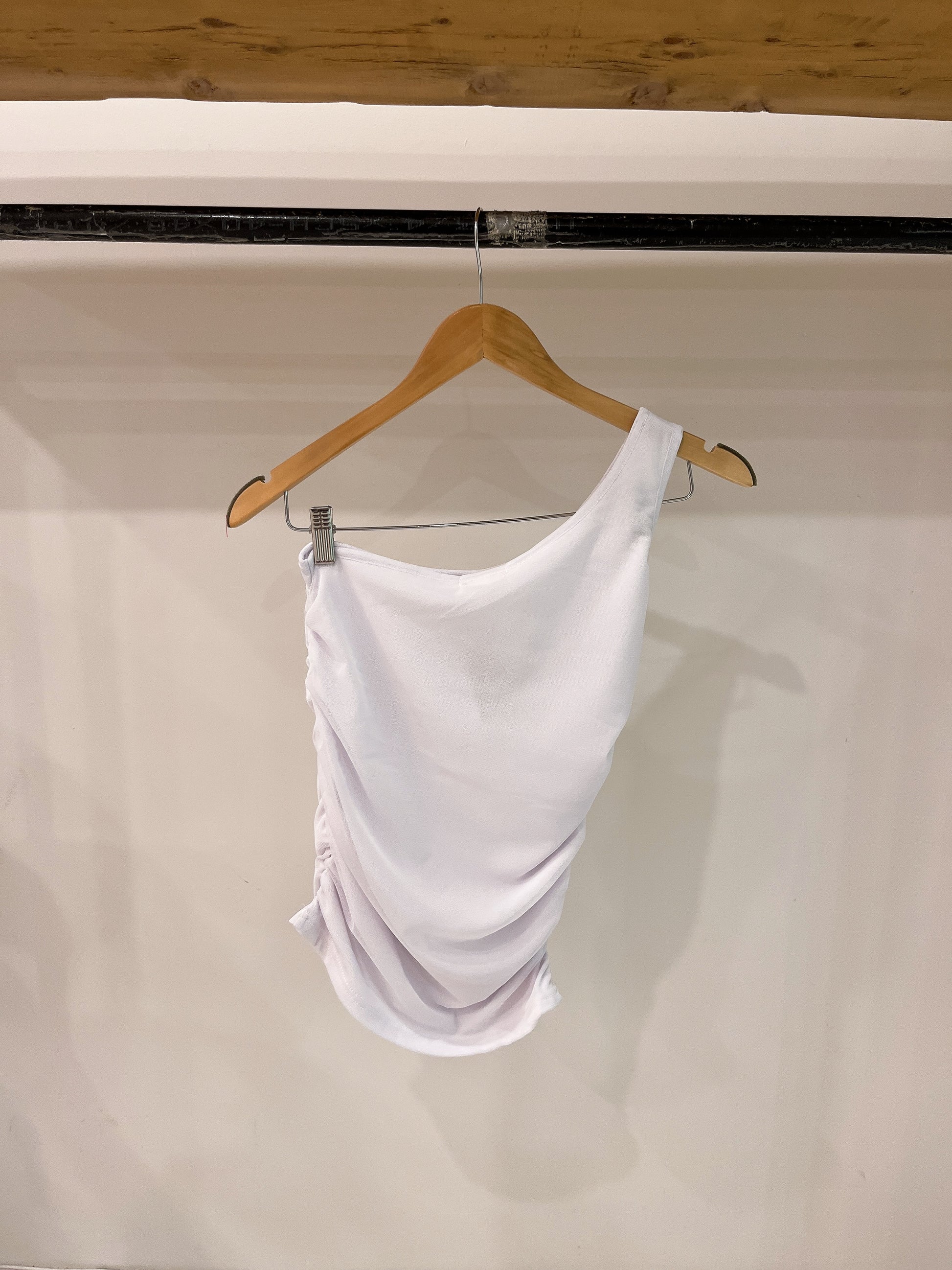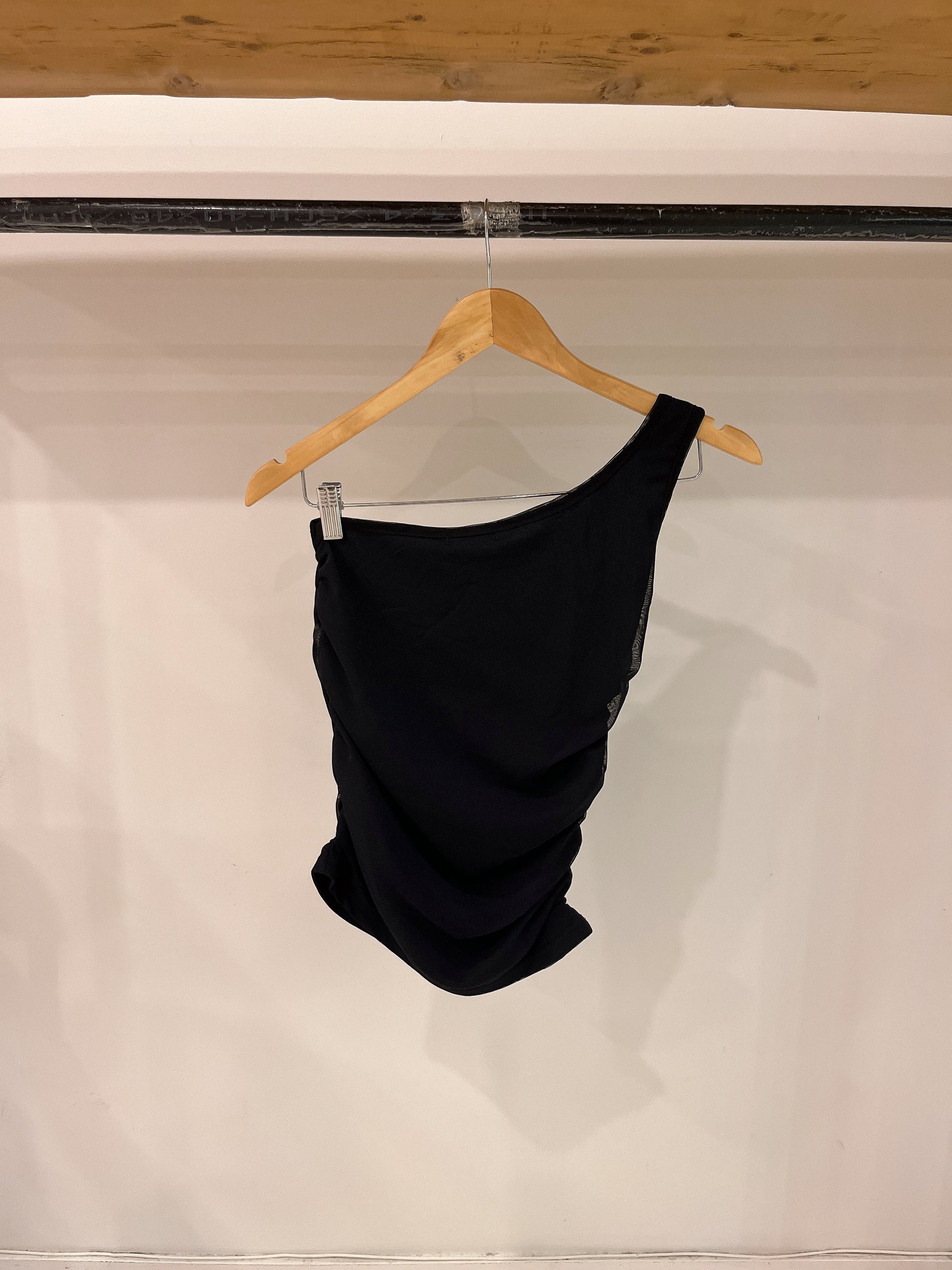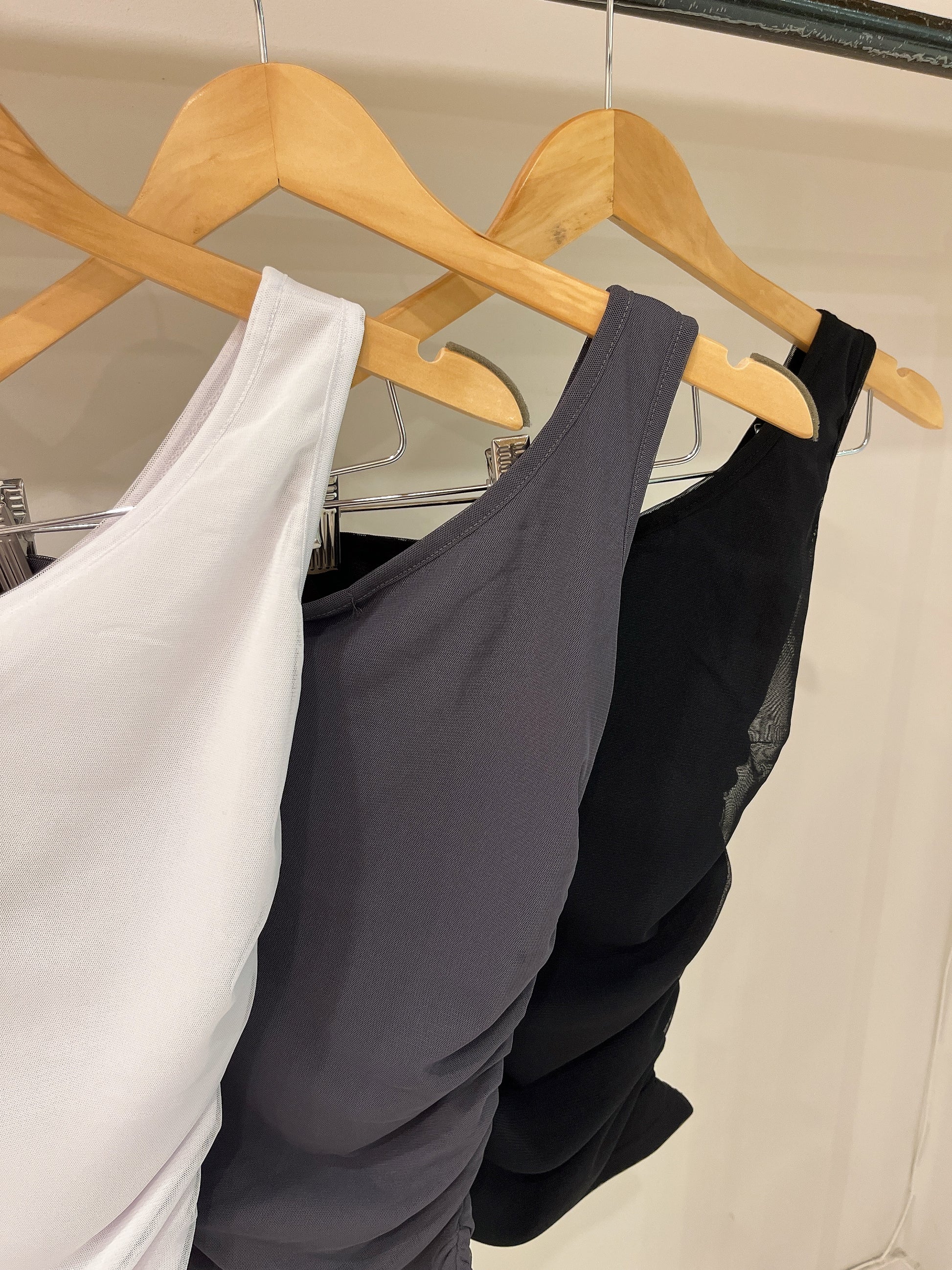 Perfectly fitted, this gorgeous one-shoulder mesh top with ruched sides comes with a multi-purpose matching ribbon for versatile styling options! Grab this going-out number in black, gray or white!