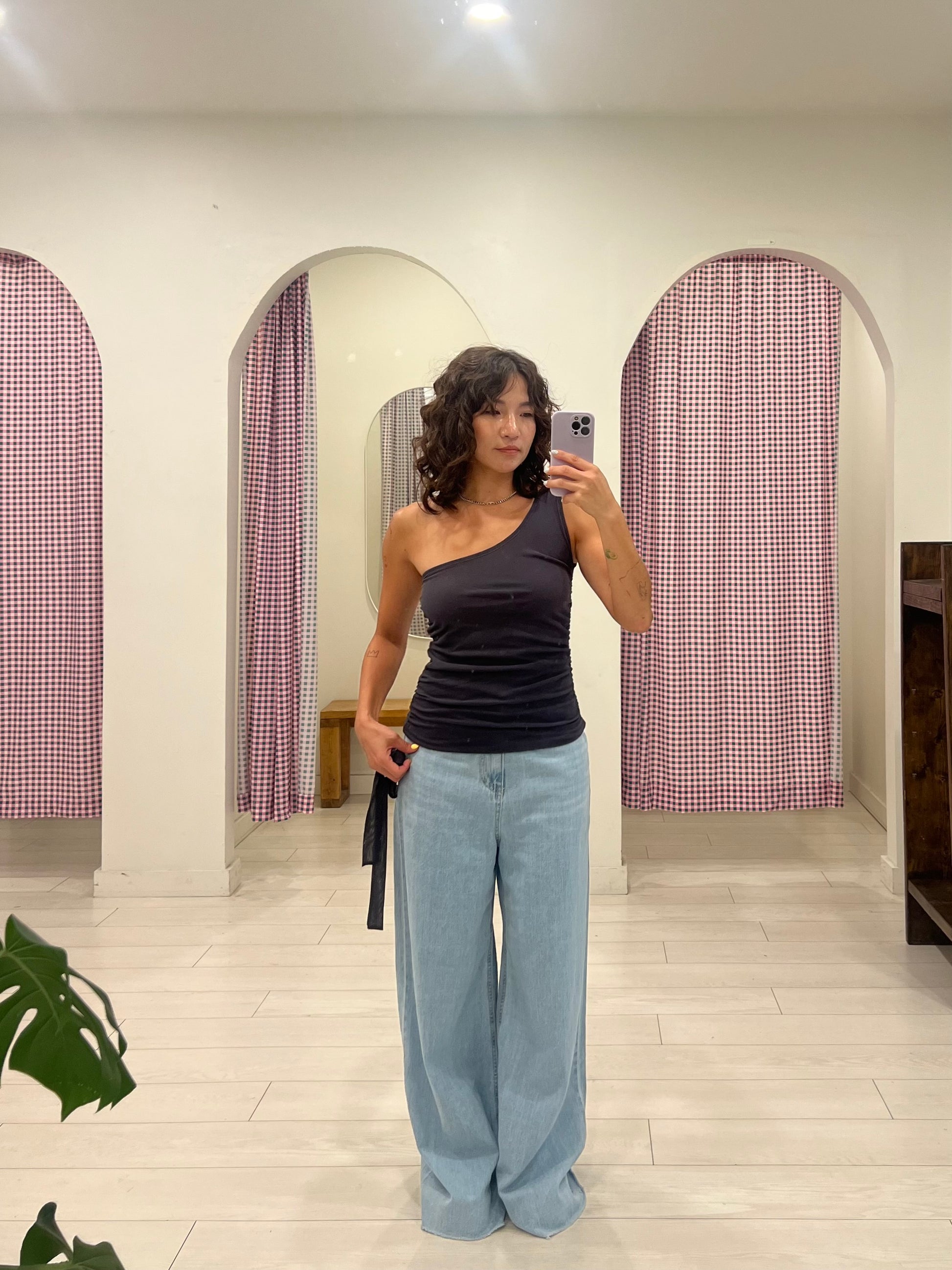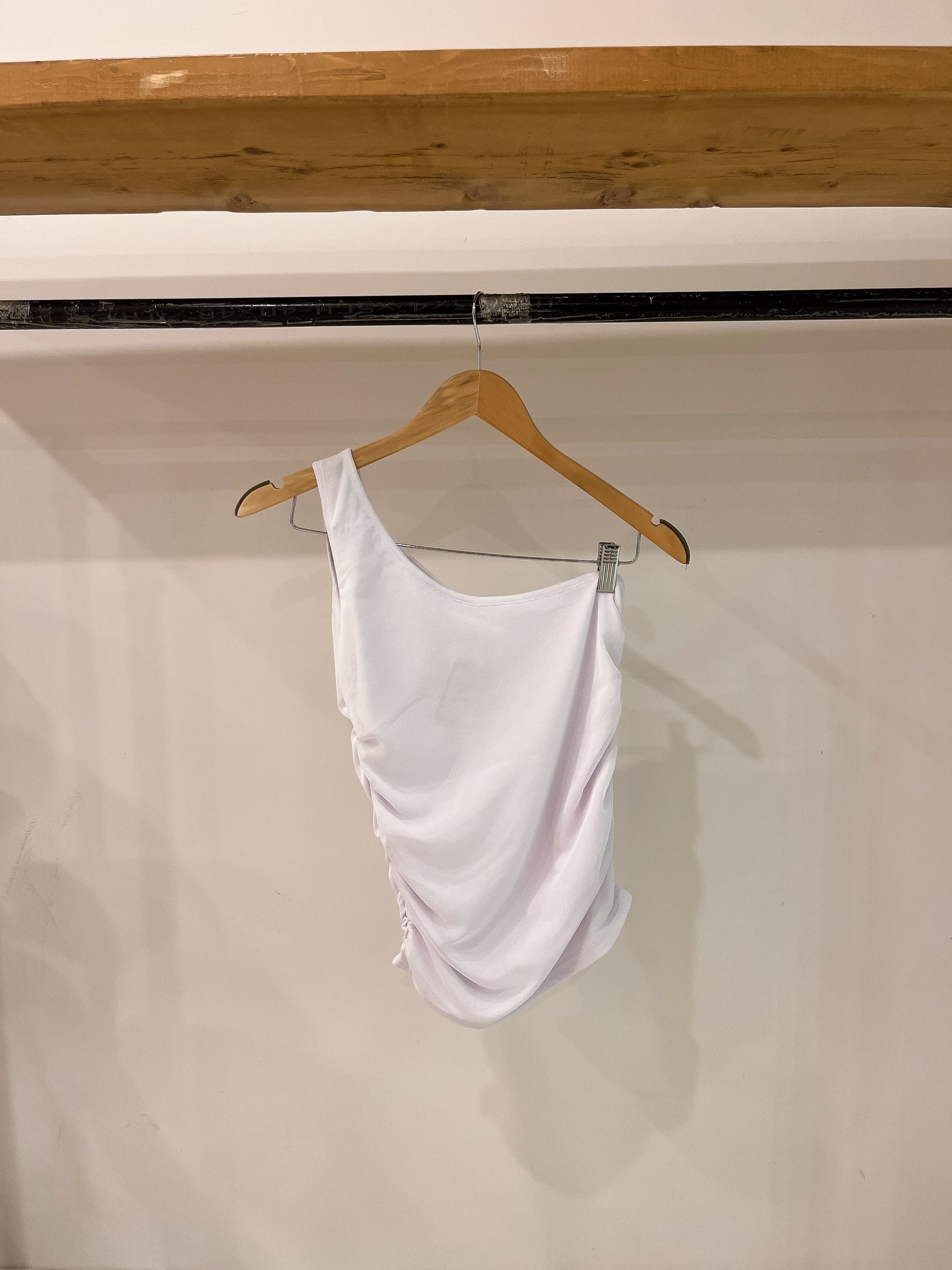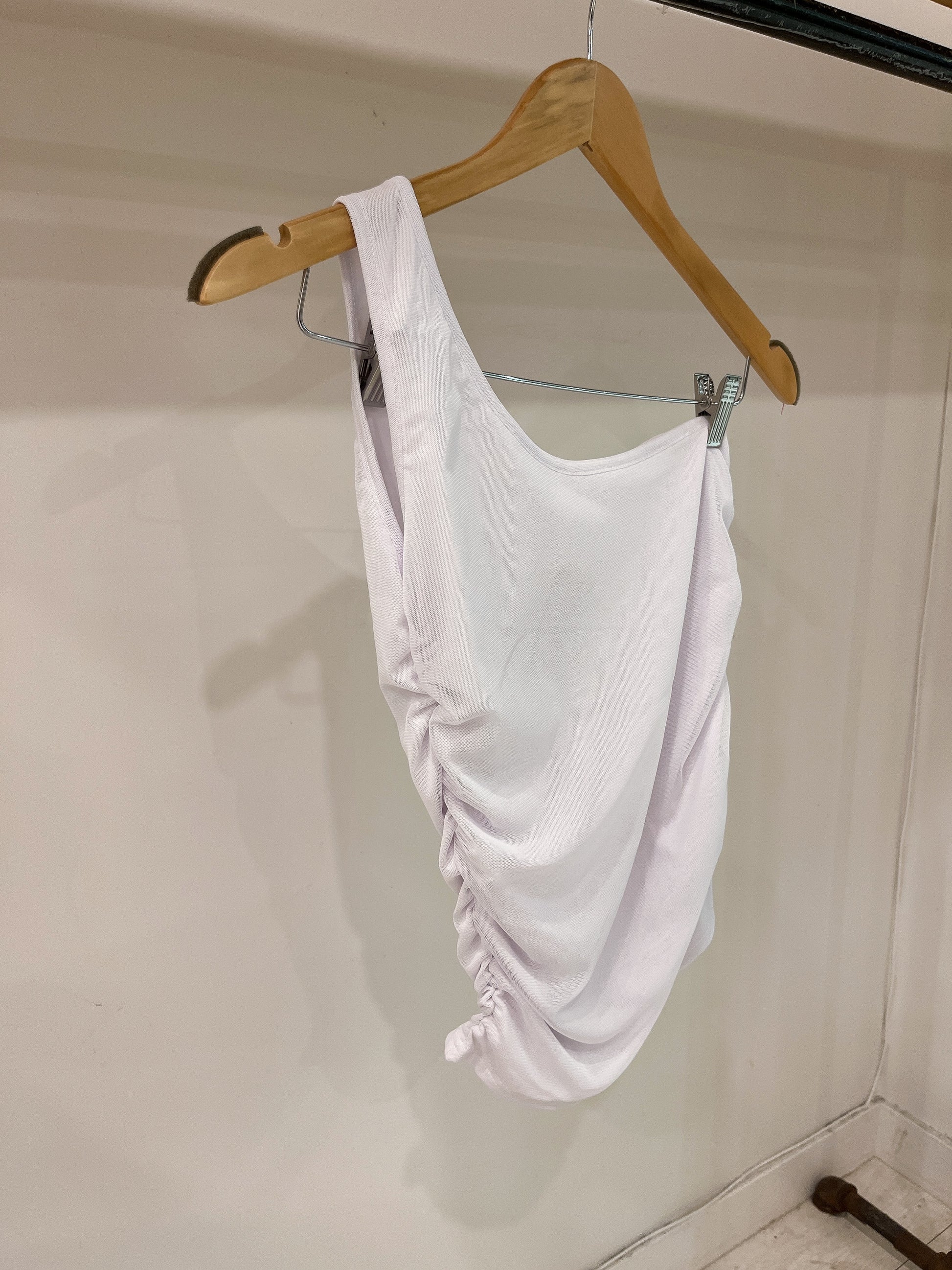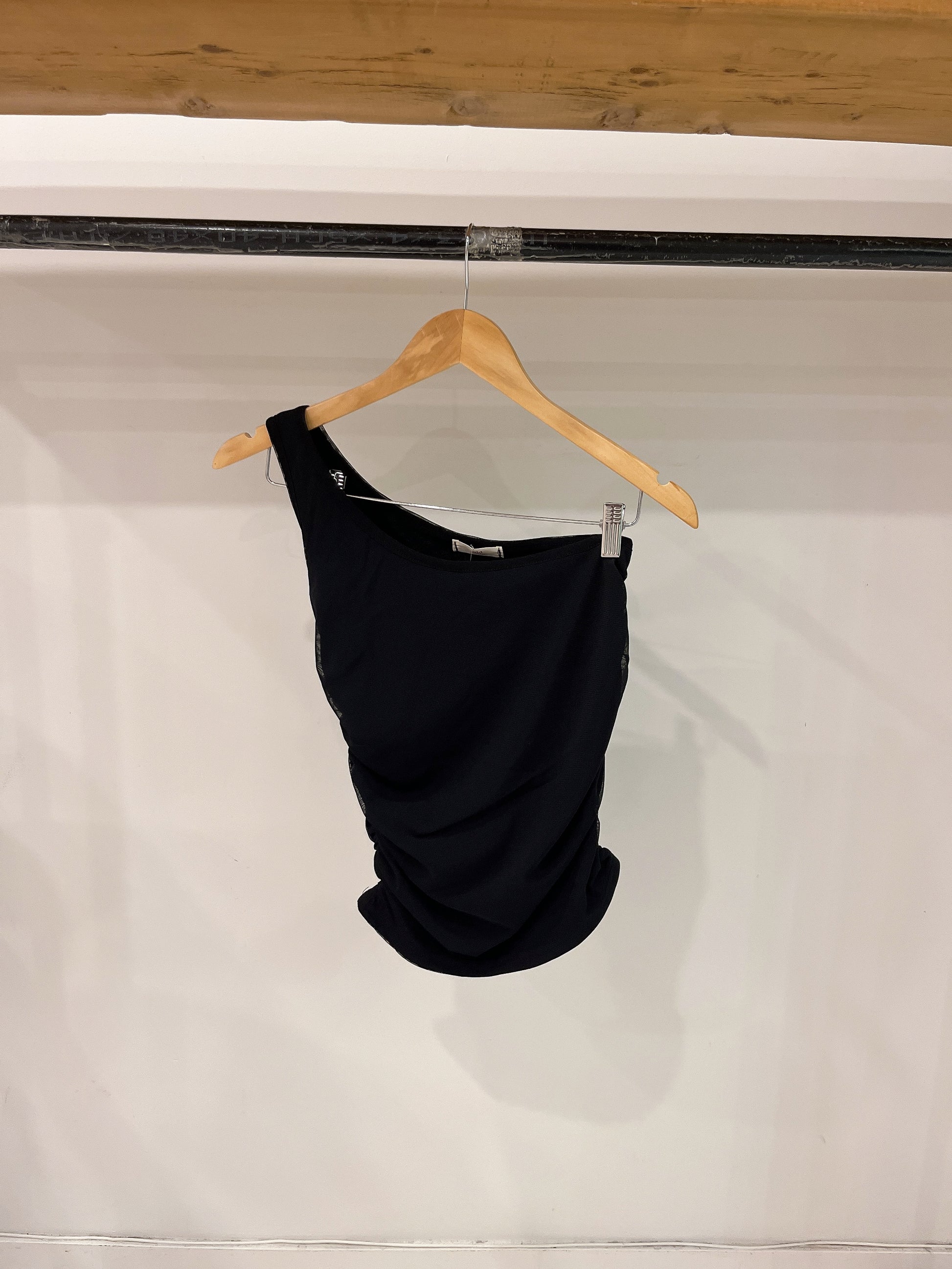 Perfectly fitted, this gorgeous one-shoulder mesh top with ruched sides comes with a multi-purpose matching ribbon for versatile styling options! Grab this going-out number in black, gray or white!